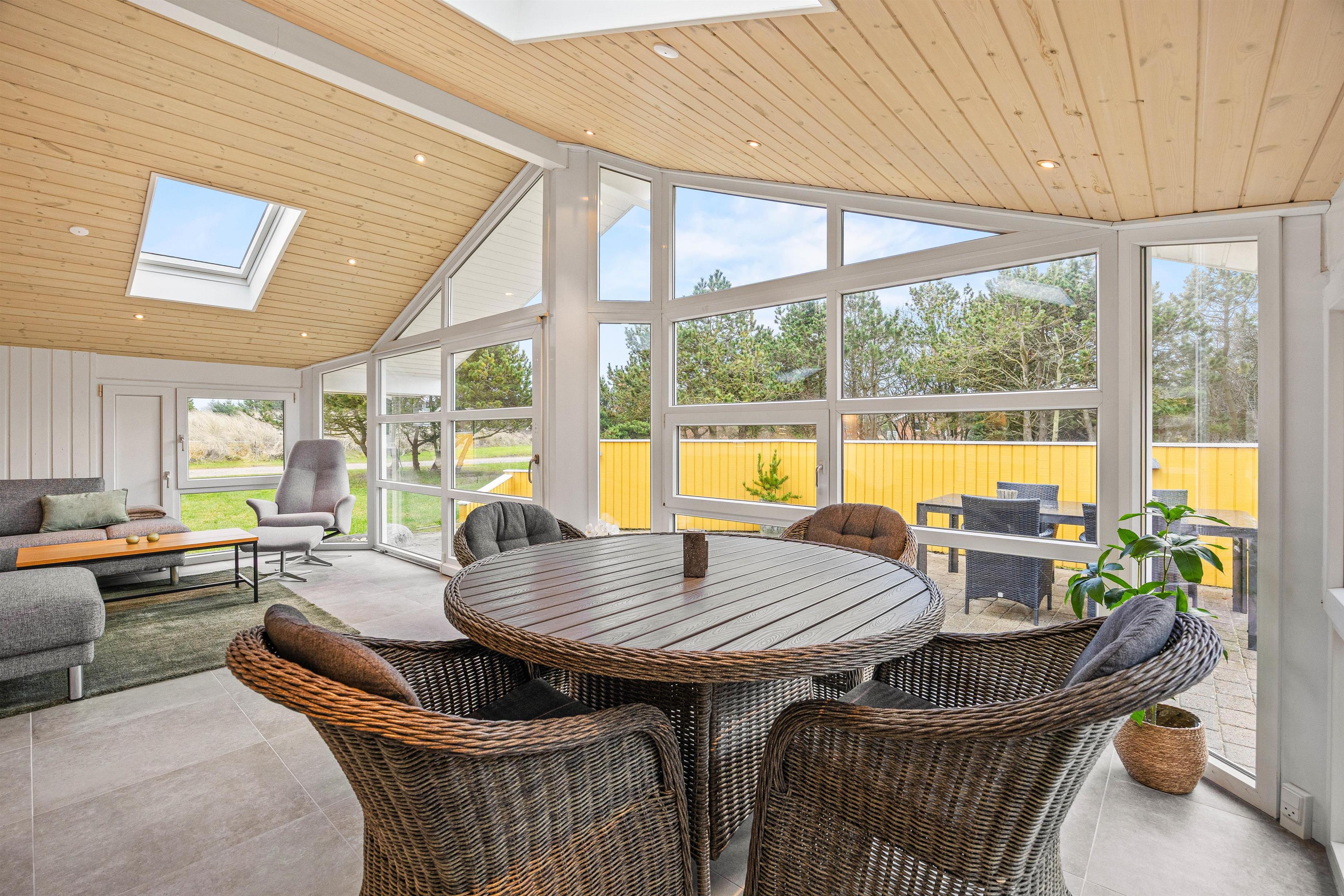 Som et ekstra plus er der en fin udestue i sommerhuset, der er det perfekte sted at slappe af året rundt uanset vejret. Hvil jer i sofagruppen og nyd livet.