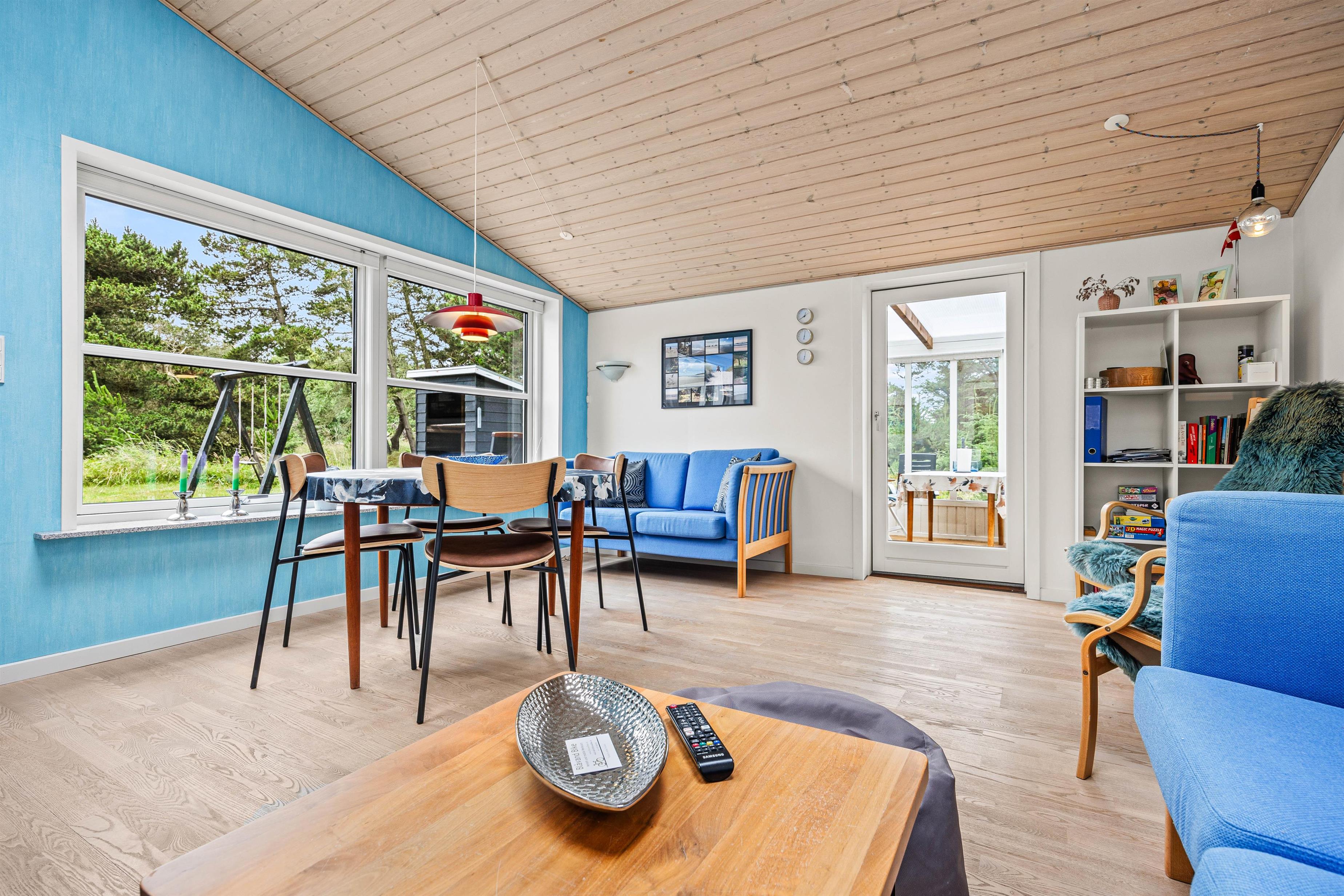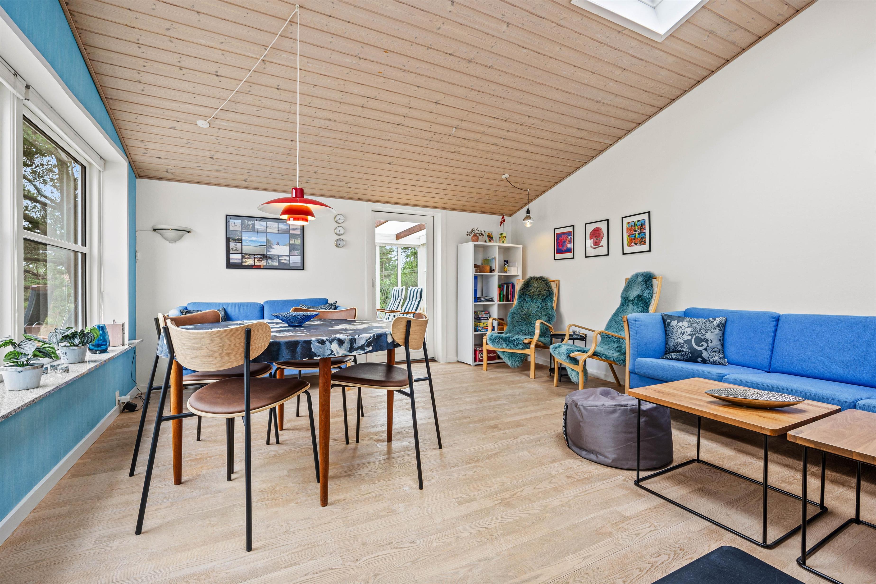 Stuen, som er indrettet i skandinavisk stil, ligger i forbindelse med udestuen. Især i foråret er udestuen et hit - her kan I fange de første solstråler i en behagelig temperatur med kortspil, eftermiddagskaffe og gode grin.