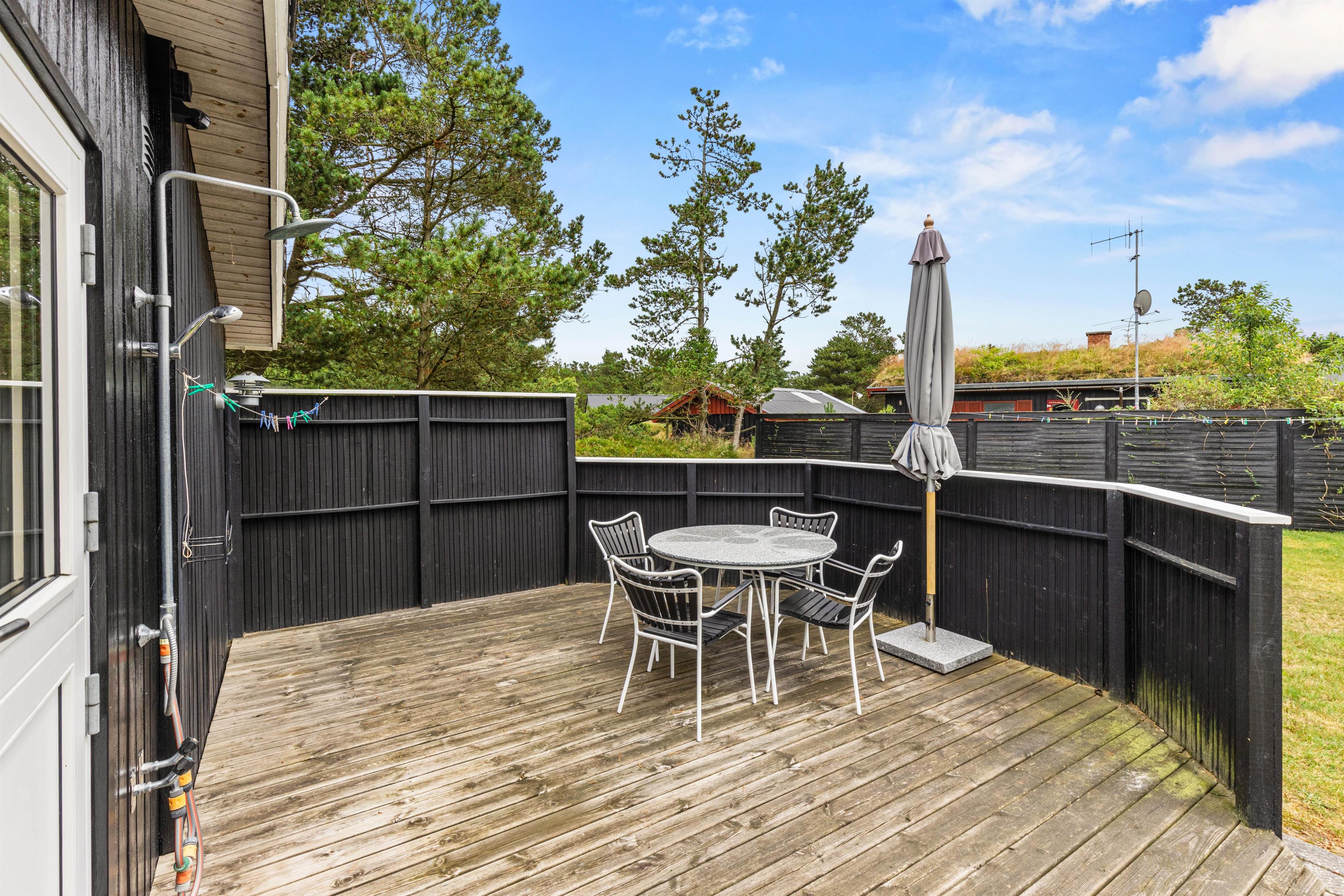Fra køkkenet kommer I også direkte ud på den afskærmede terrasse med en hyggelig siddekrog, som er helt perfekt til lækre grillaftener. Her er der altid god læ, så I kan nyde den friske luft og de grønne omgivelser.