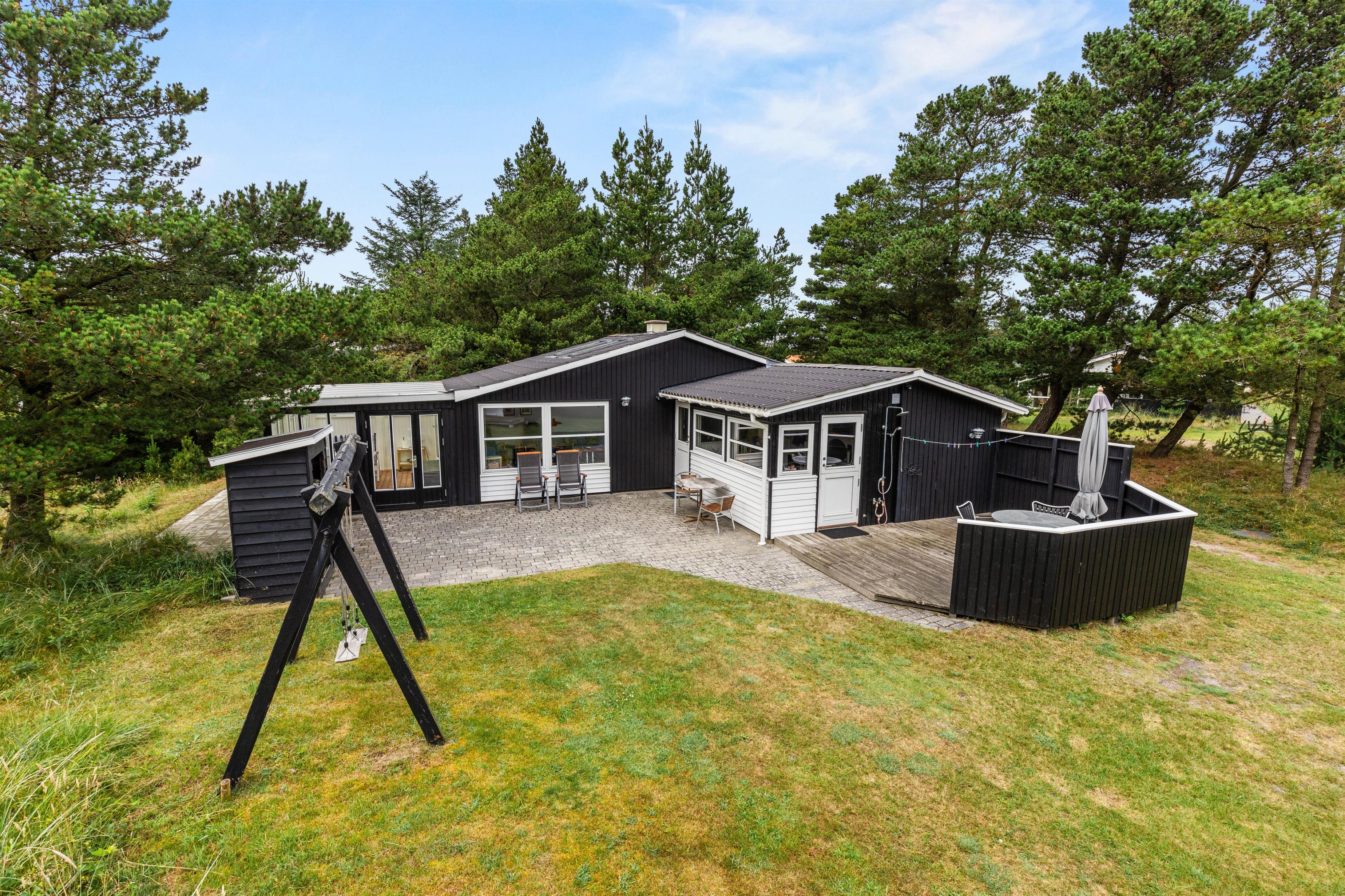 På den store og godt afskærmede grund står et gyngestativ til glæde for de yngste feriegæster. Den brede sandstrand 800 meter fra huset bliver helt sikkert et hit blandt både store og små.