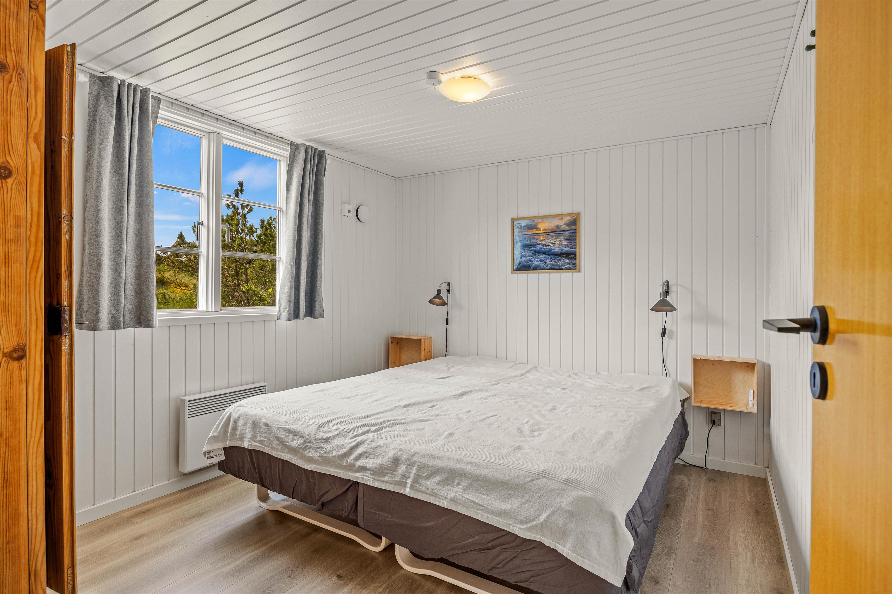 Feriehuset har 3 soveværelser, hvoraf det ene er indrettet med en dobbeltseng. På et andet værelse er der 2 enkeltsenge, mens det sidste værelse er indrettet med en enkeltseng.