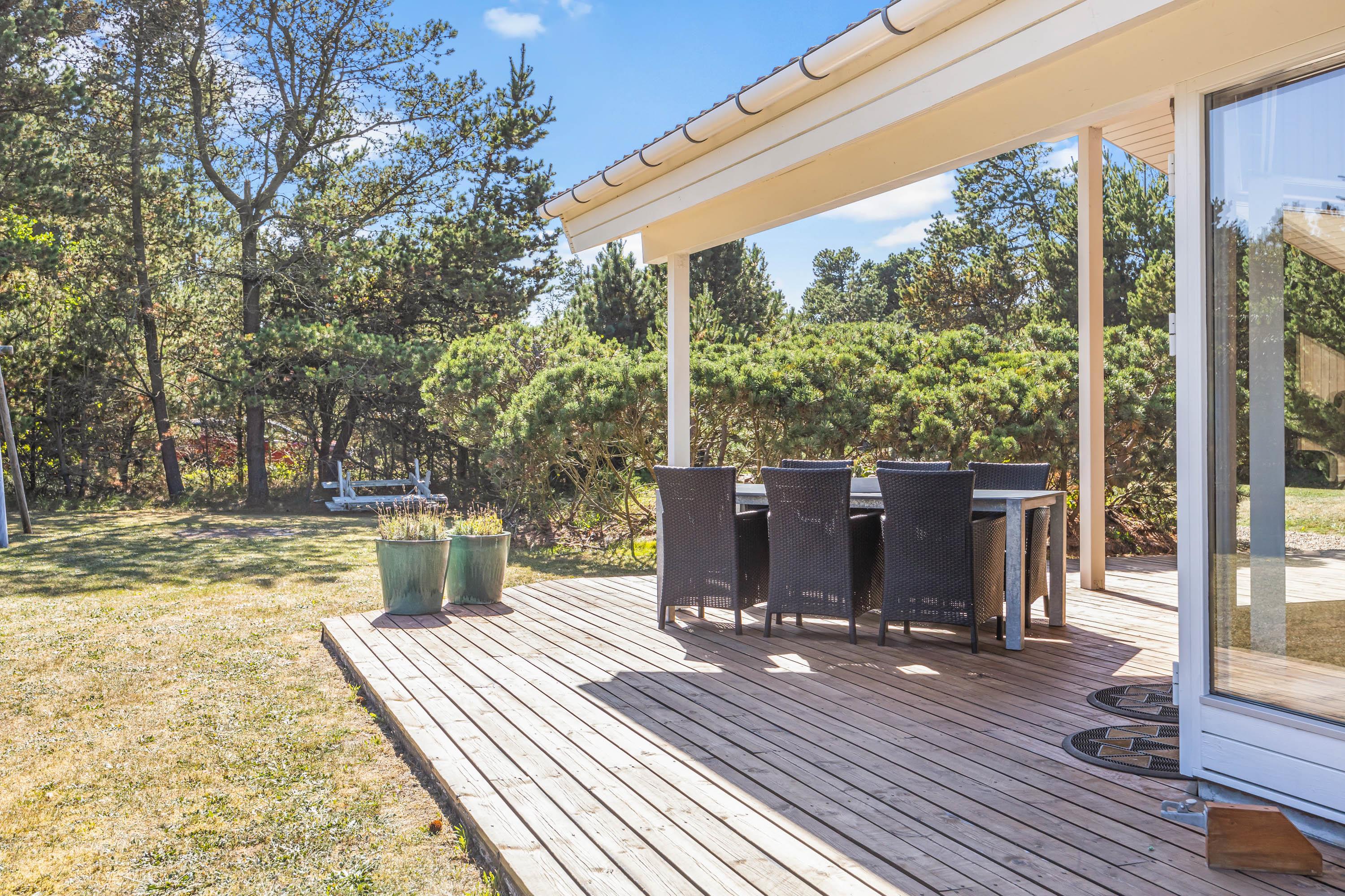En stor del af terrassen er overdækket, og derfor står der intet i vejen for, at I kan nyde den smukke udsigt - heller ikke når det regner og blæser.