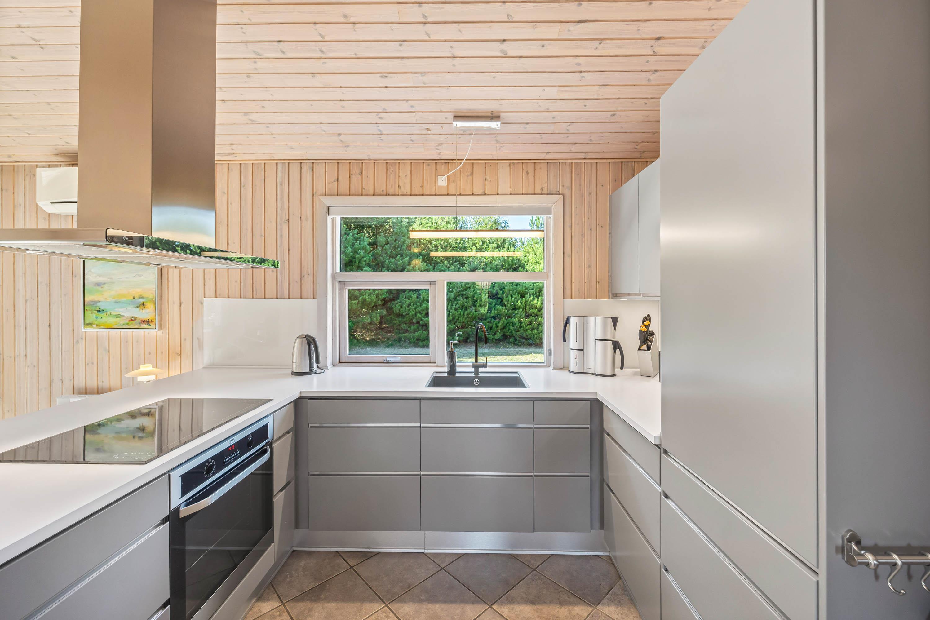Huset på Gøgevej 14 udstråler udvendigt helt klassisk sommerhusferie med sin træfacade og sin beliggenhed midt i det grønne. Indvendigt byder huset på en moderne og tidssvarende indretning, og det er nemt at se, at der er blevet foretaget en renovering så sent som i 2015. Der er mørklægningsgardiner i soverummene.