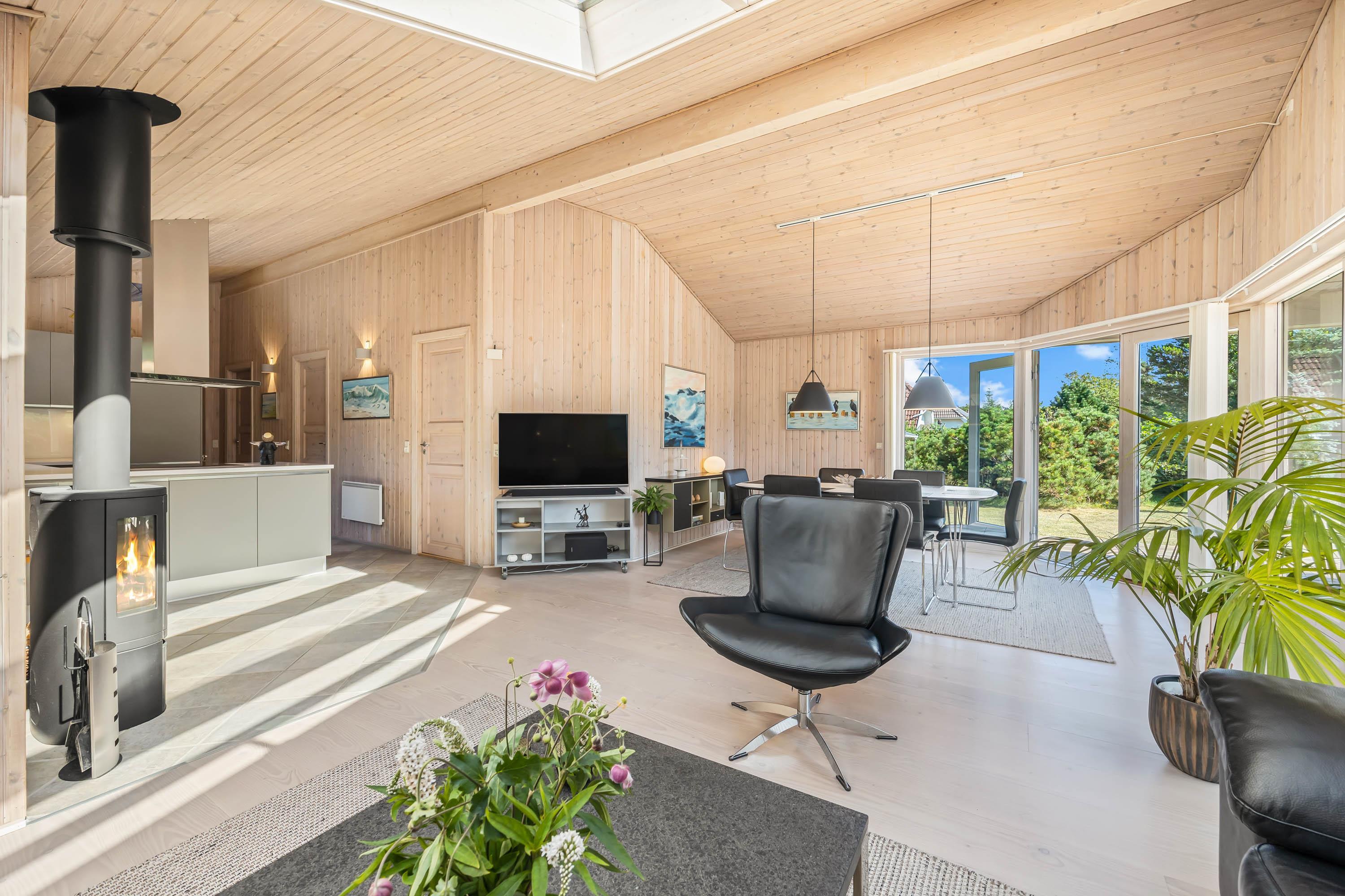 Omgivelserne fremstår lyse og venlige og har samtidig et touch af den klassiske sommerhuscharme. Til at stå for den har I den obligatoriske brændeovn, som sørger for varme såvel som hyggelig stemning hele året rundt.