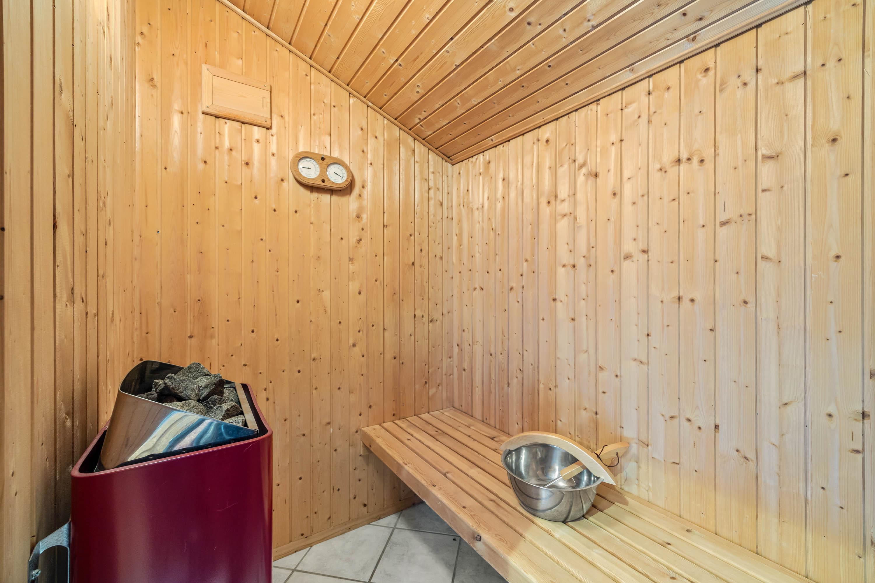 Brændeovnen er ikke den eneste vej til at få varmen - har I lyst til lidt ekstra selvforkælelse efter en gåtur i den friske luft, kan I tænde op i husets sauna. Der er ingen tvivl om, at I vil kunne tanke masser af kræfter og ny energi her.