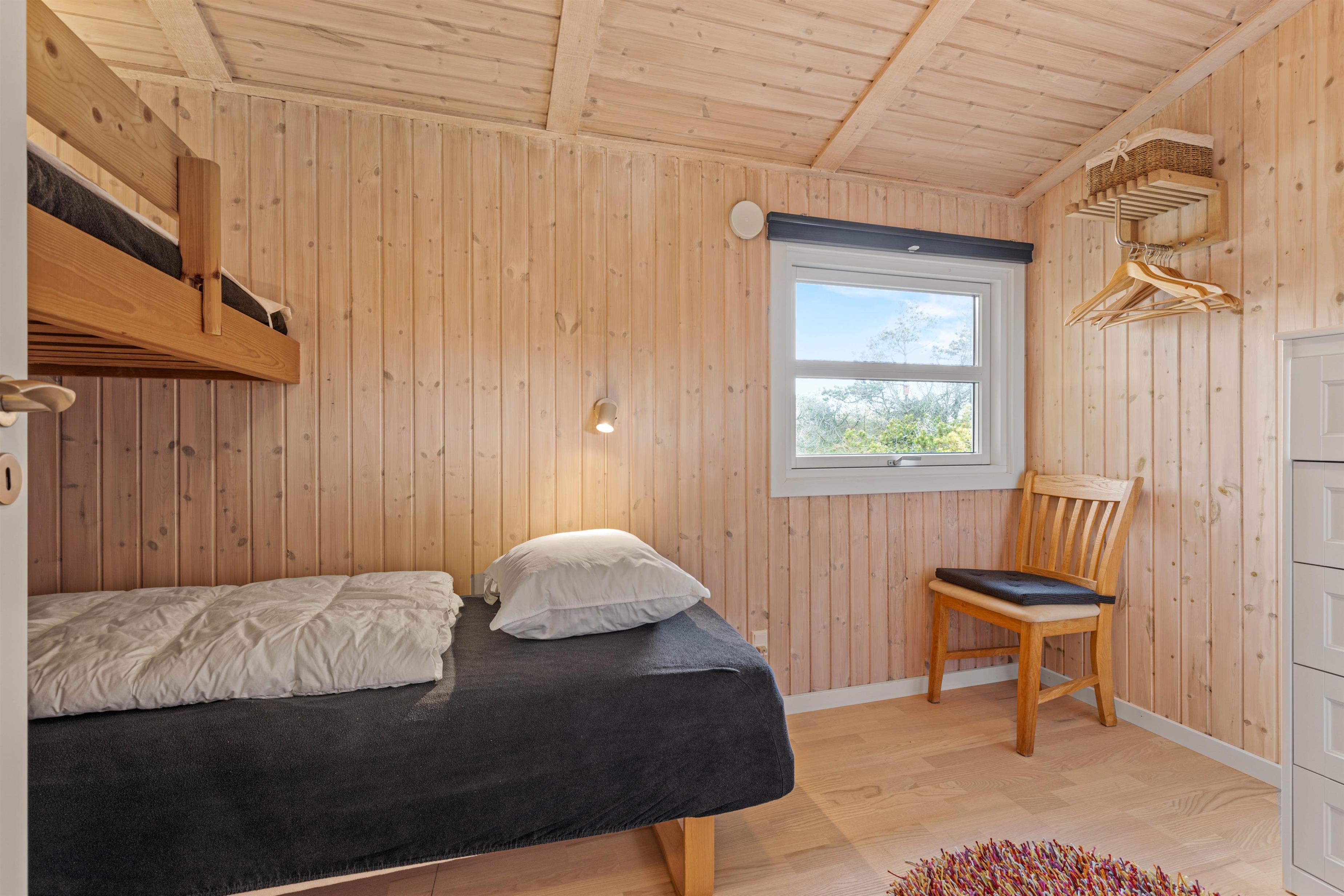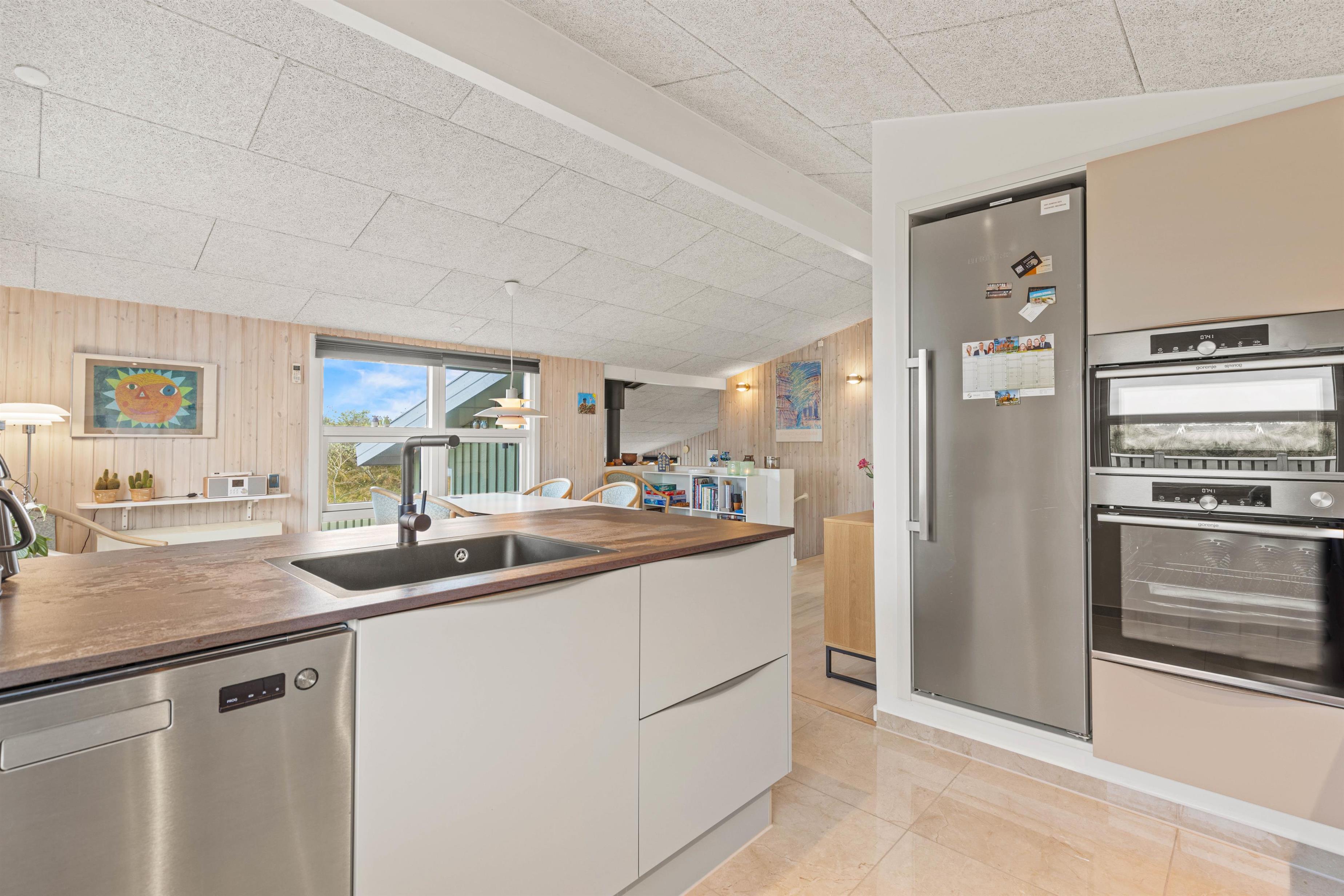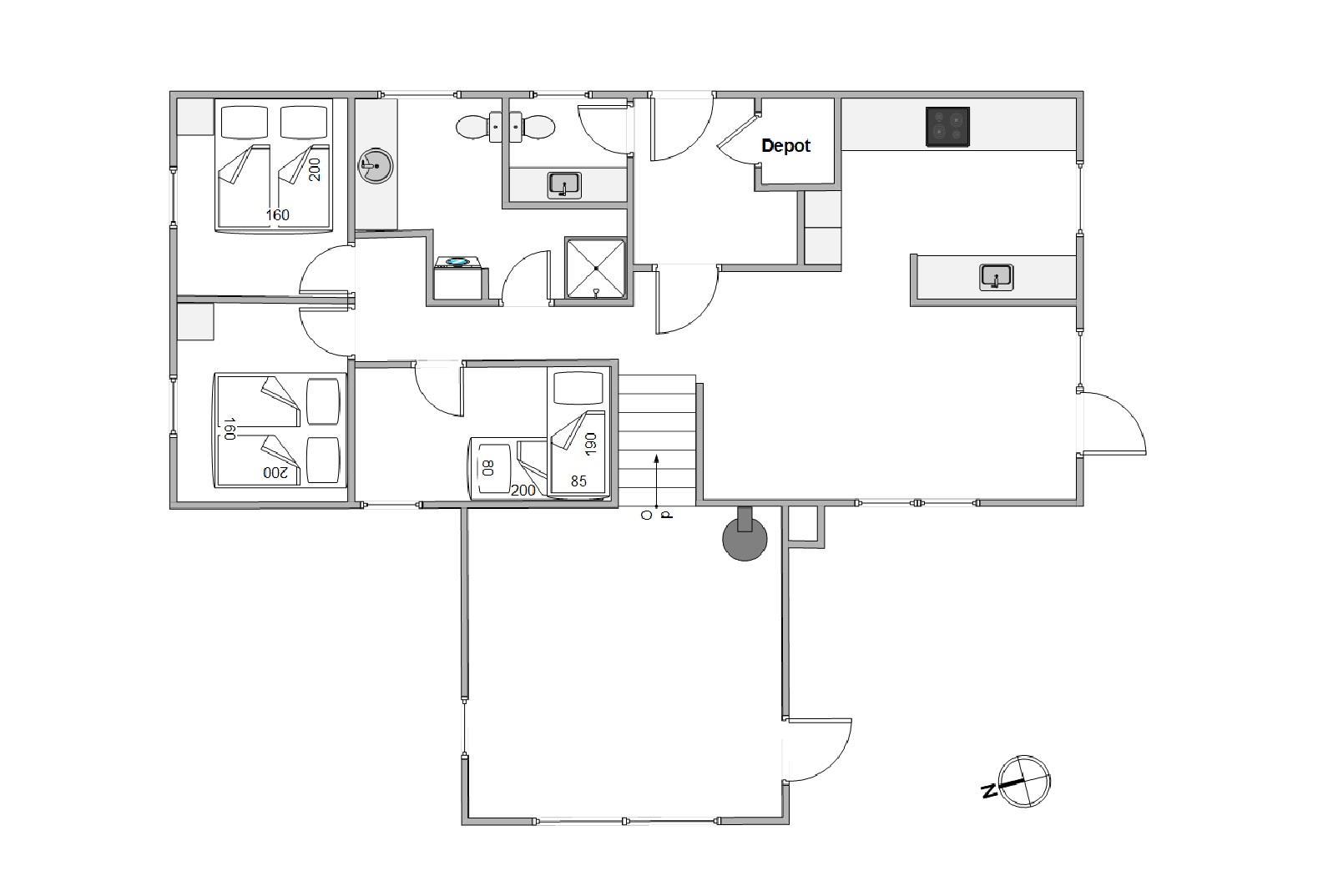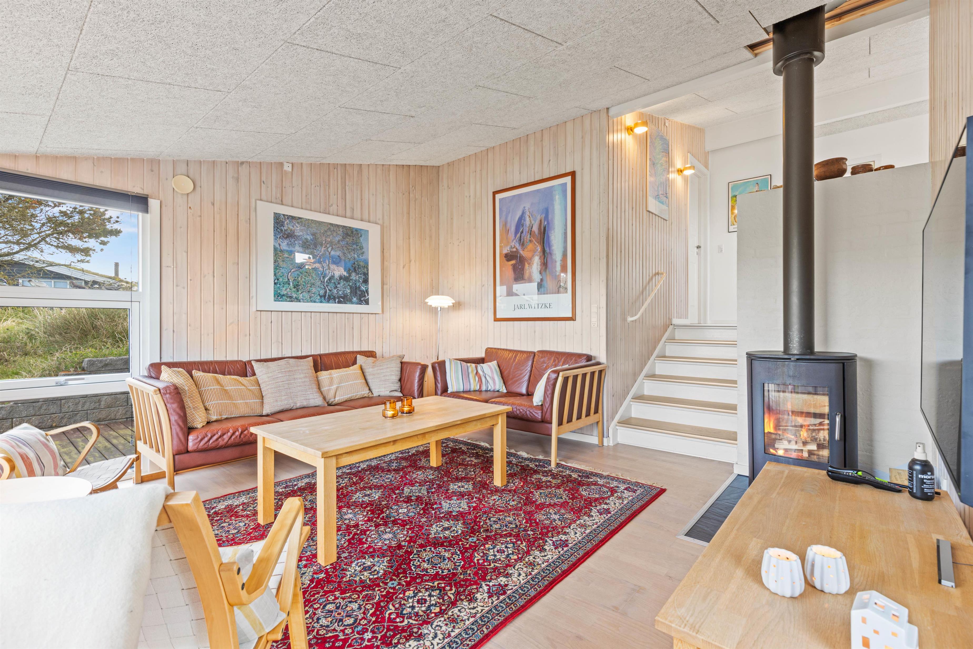 Feriehuset er godt inddelt med soverum i den ene ende, og køkkenalrum i den anden - med den hyggelige stue som midtpunkt og helt sikkert feriens mødested. Her står brændeovnen klar til at varme jer på de kolde dage, - I kan sågar frit bruge af husets brændestabel.