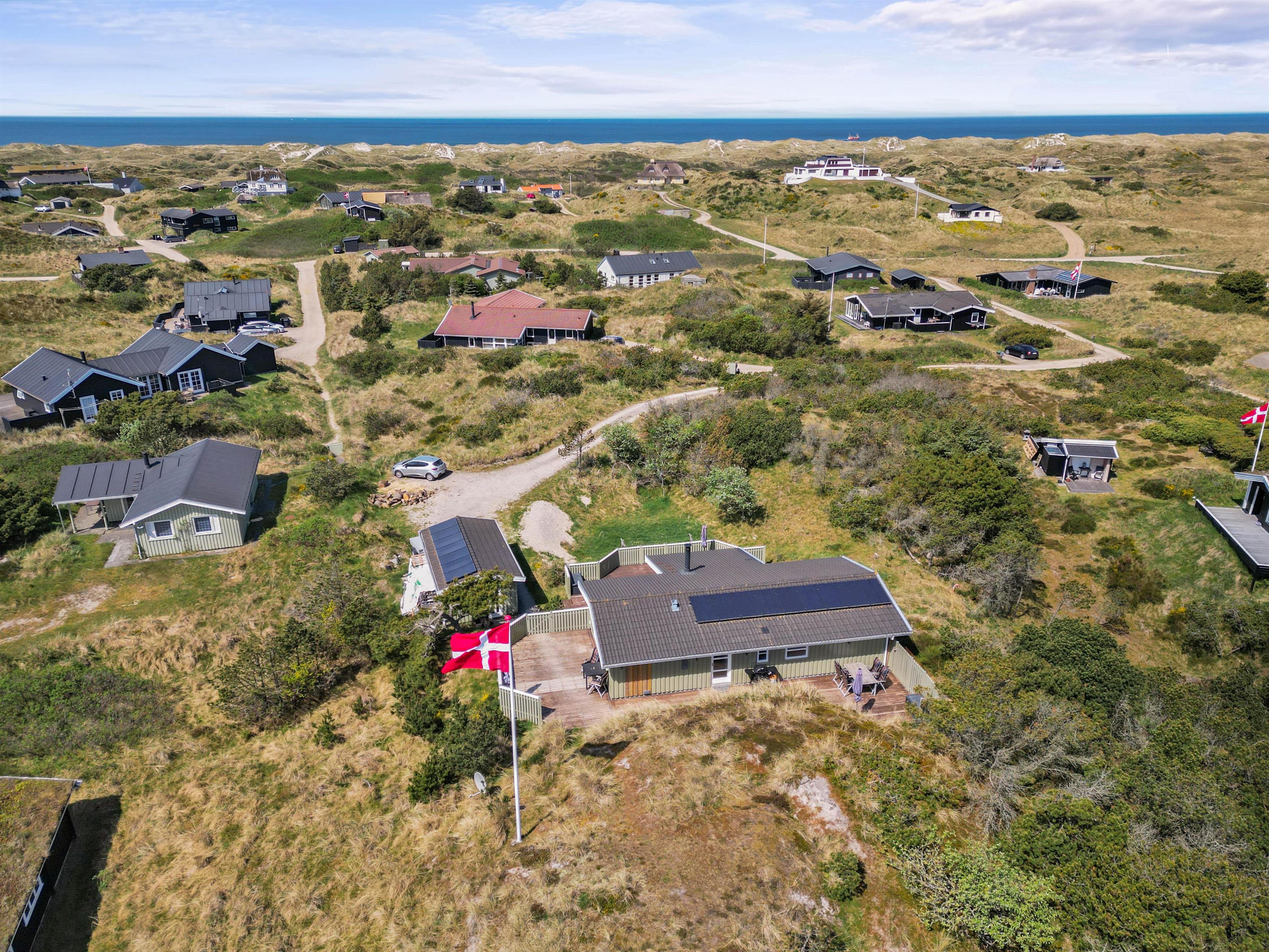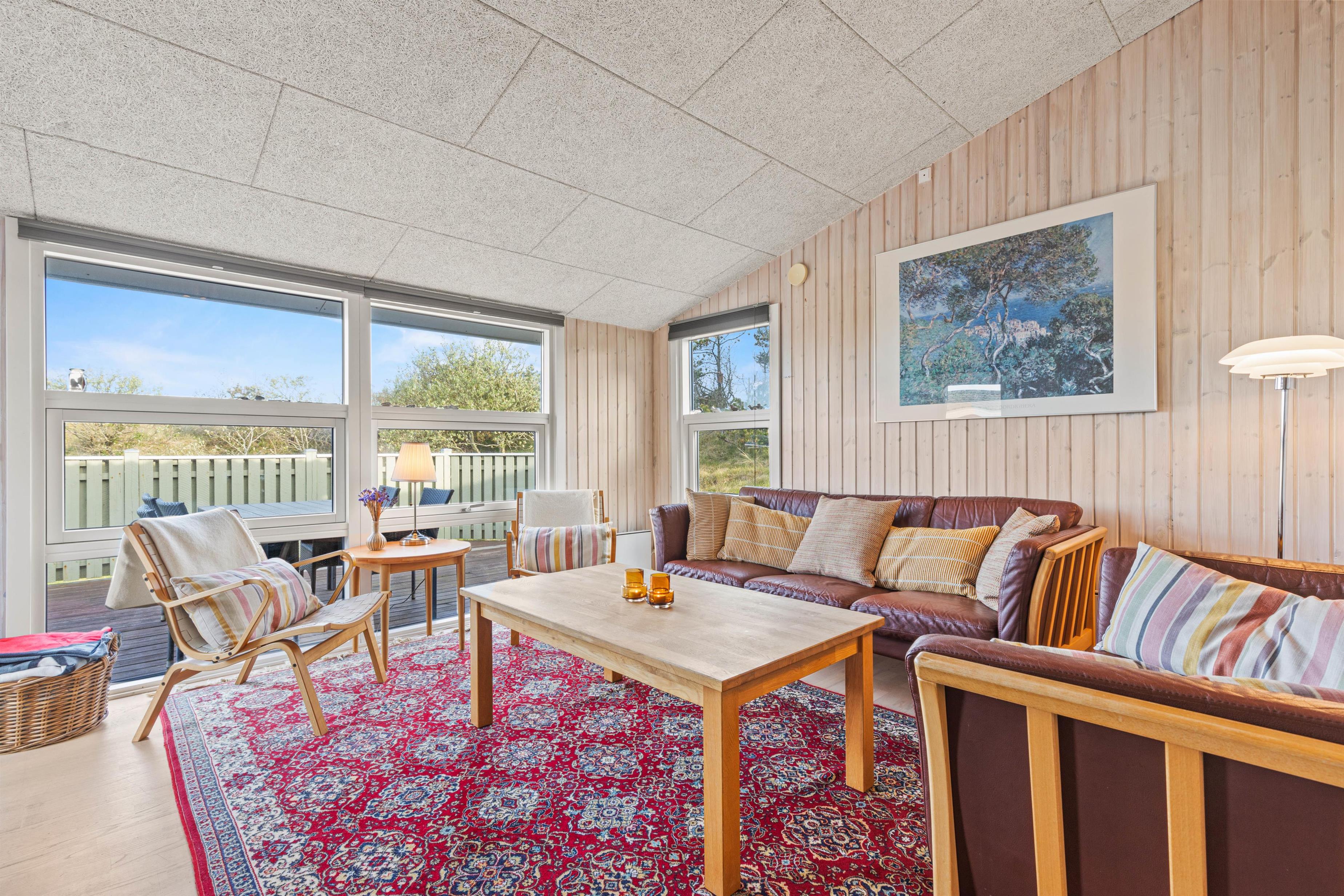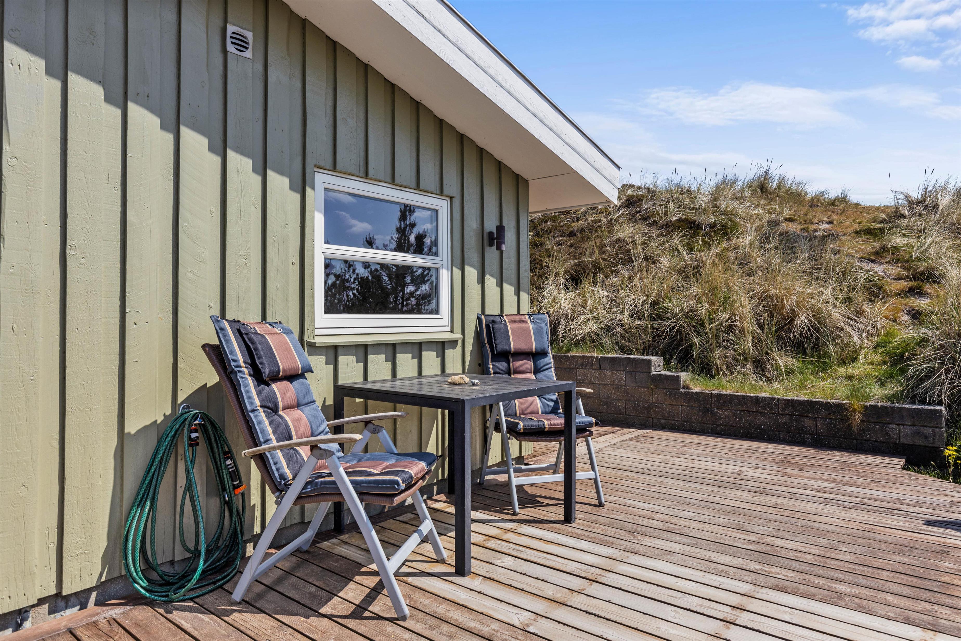 Midt i det vestjyske klitlandskab i Vejers Strand ligger dette hyggelige feriehus og venter på jer. Det fine træhus rummer plads til 6 gæster og byder på en venlig indretning. Den store terrasse gemmer på flere små kroge, hvor I kan nyde solen i fred og ro - og så er strømforbruget helt gratis!