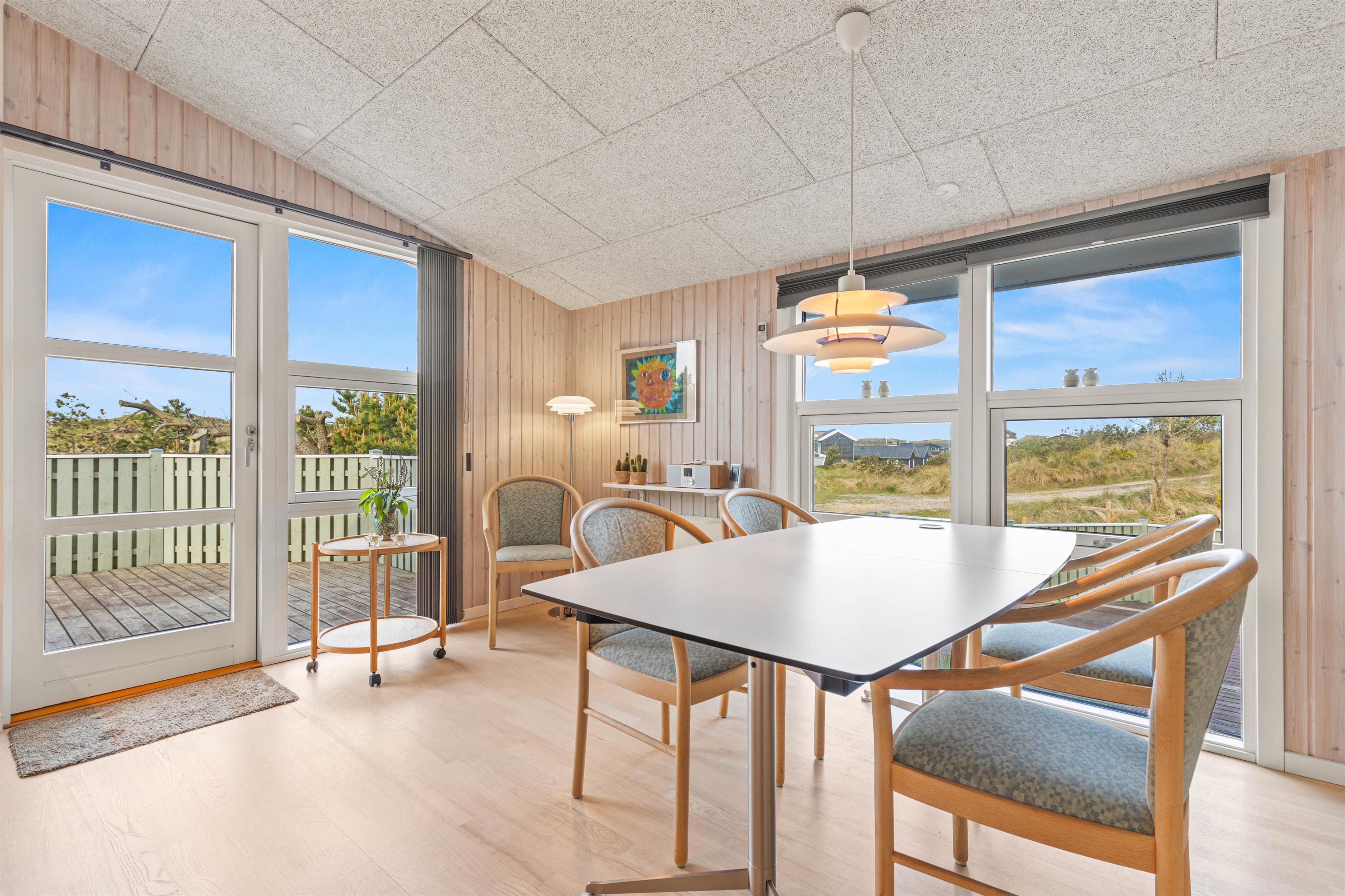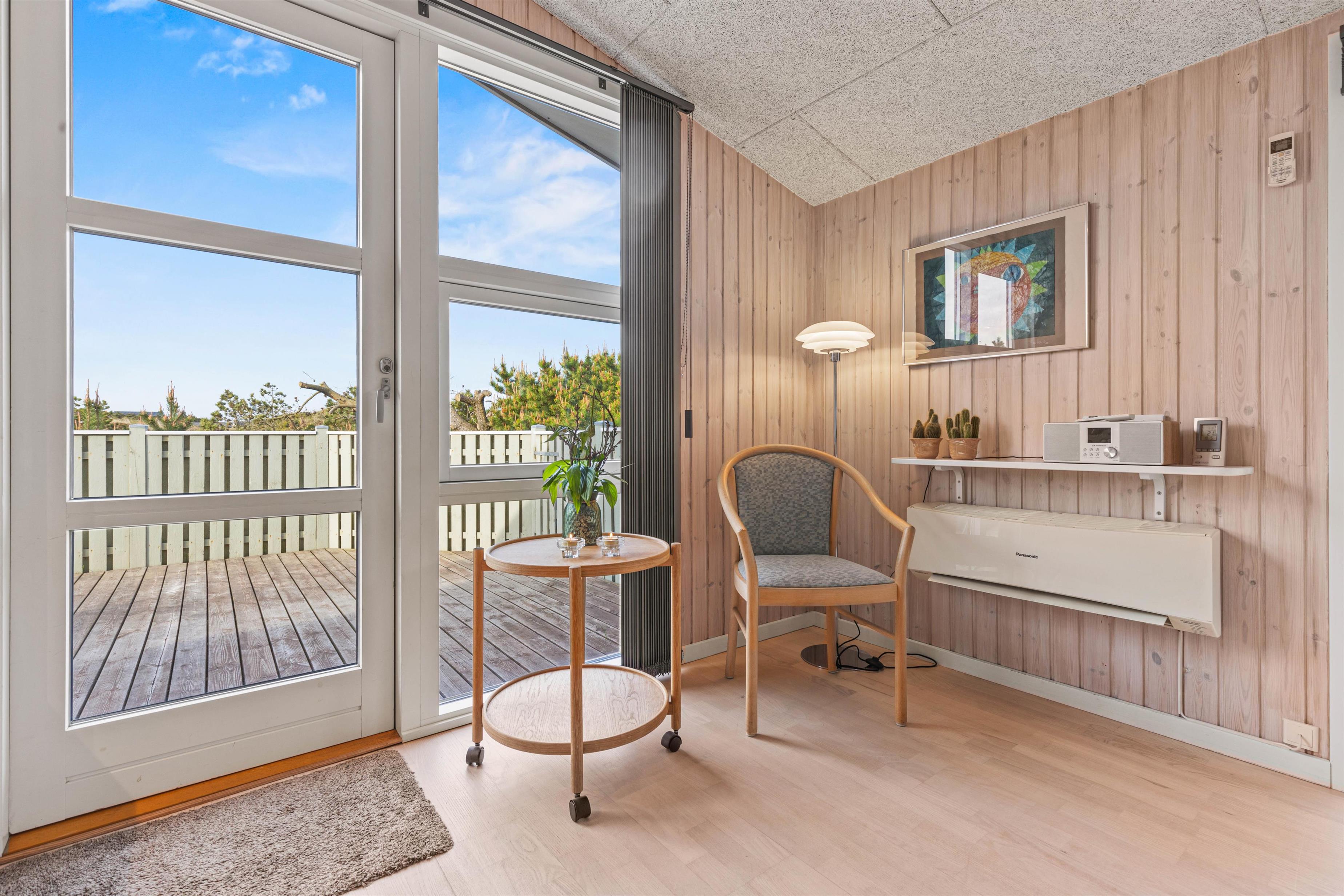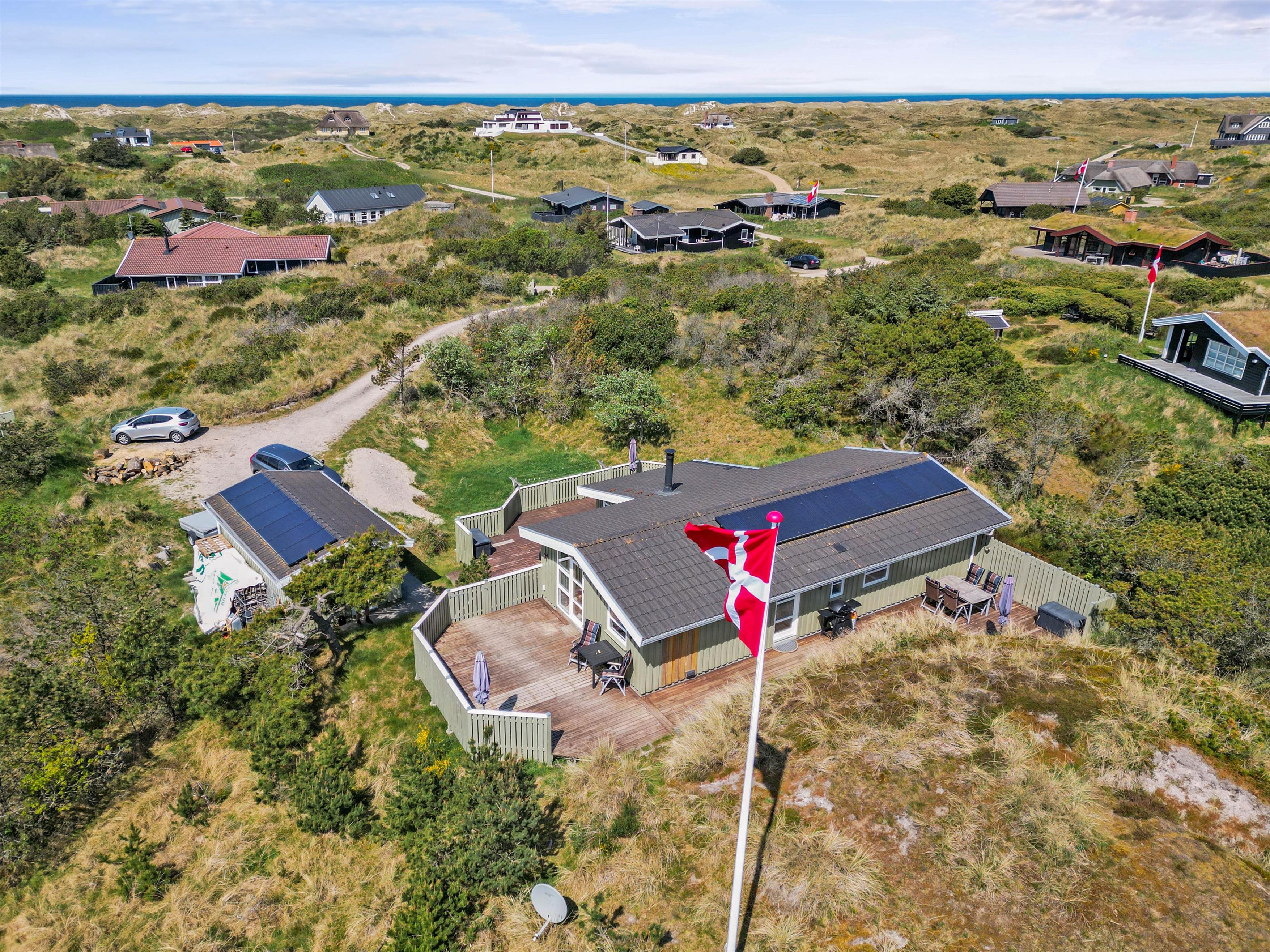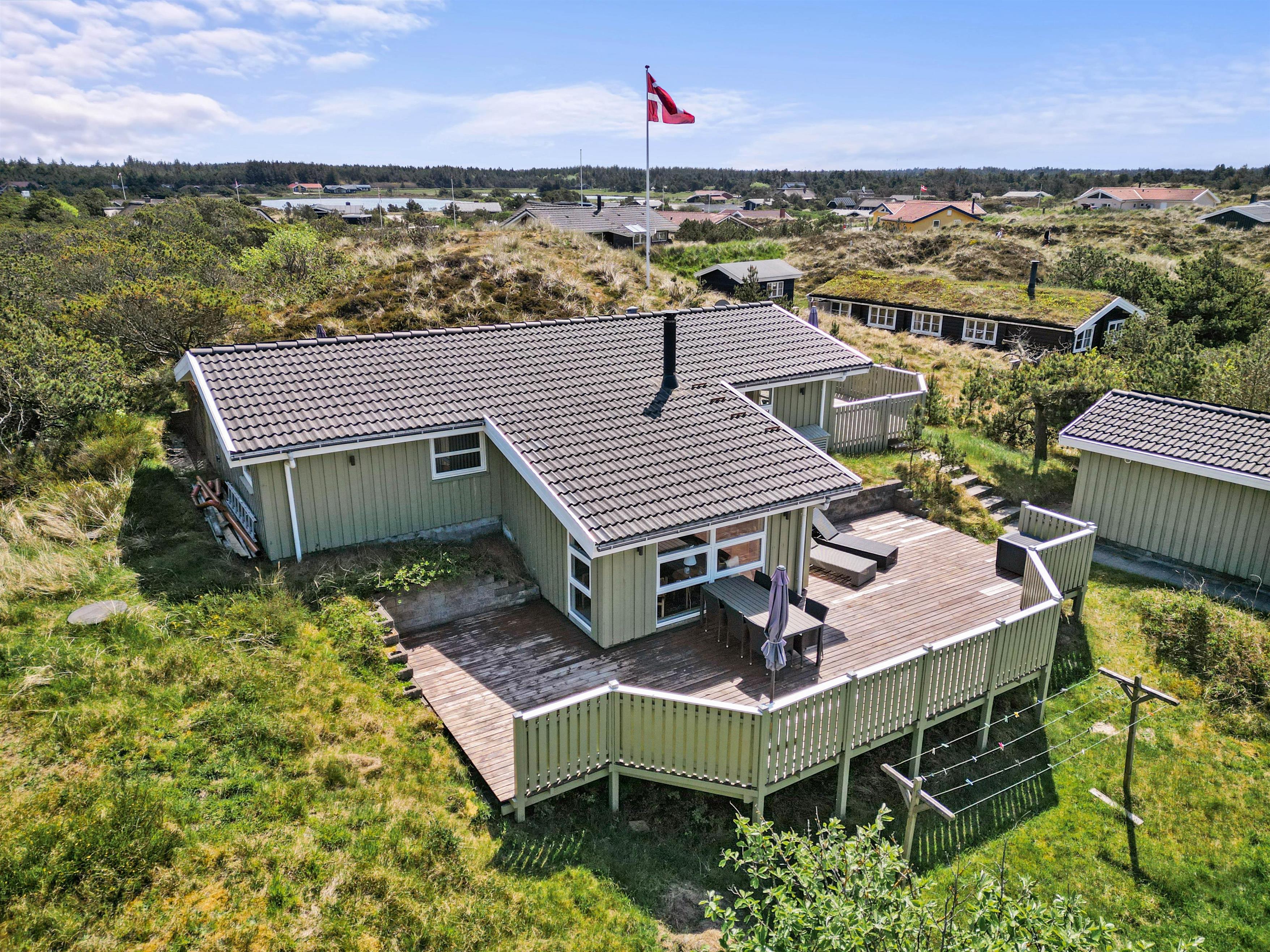 Midt i det vestjyske klitlandskab i Vejers Strand ligger dette hyggelige feriehus og venter på jer. Det fine træhus rummer plads til 6 gæster og byder på en venlig indretning. Den store terrasse gemmer på flere små kroge, hvor I kan nyde solen i fred og ro - og så er strømforbruget helt gratis!