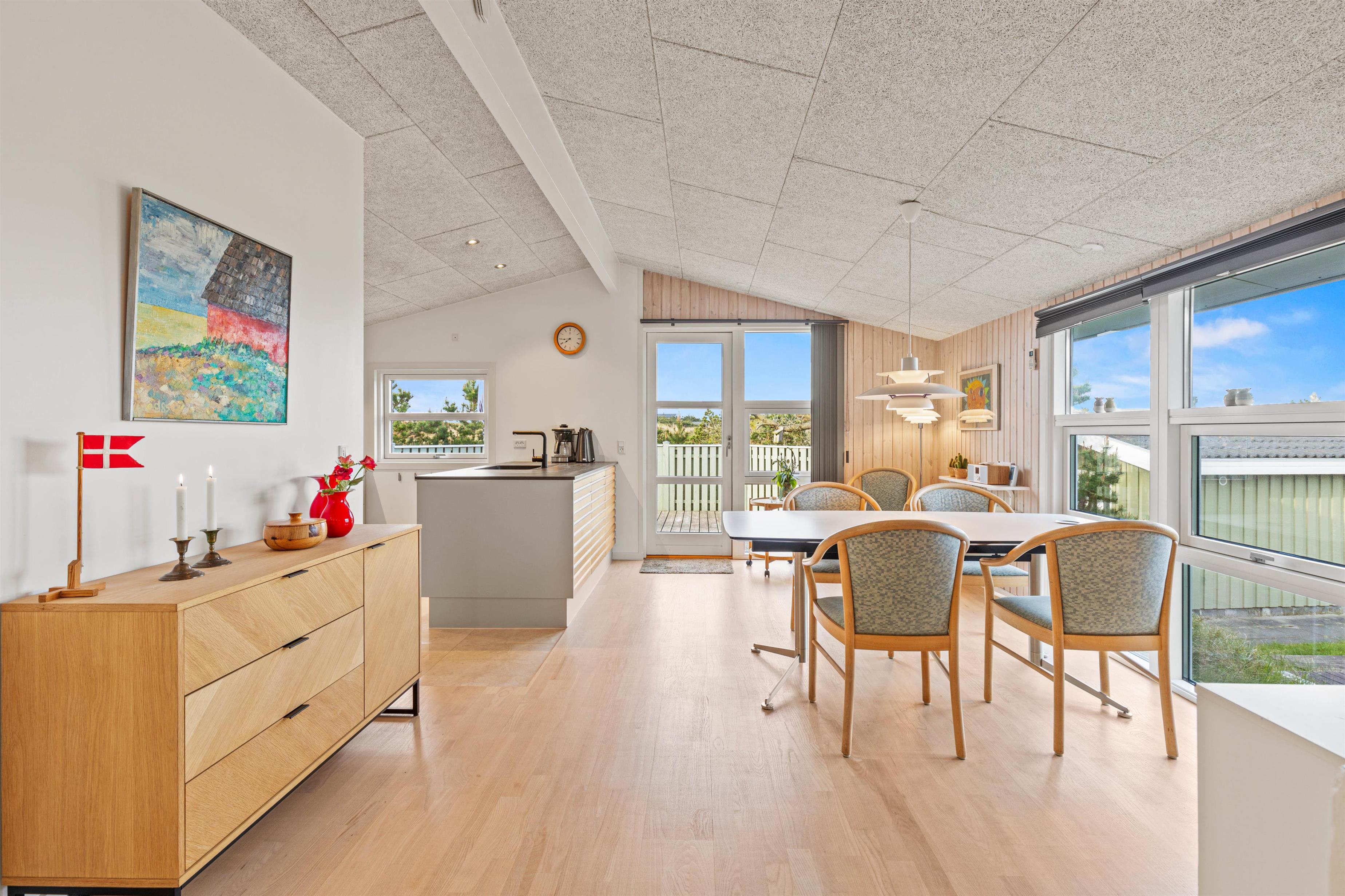 På Nordvej 98 B vil I straks falde til i det nye feriehjem. De venlige omgivelser med lyse træfarver og en enkel og hyggelig indretning gør huset rigtig indbydende, og på de 95 kvadratmeter finder op til 6 feriegæster god plads at brede sig ud på.