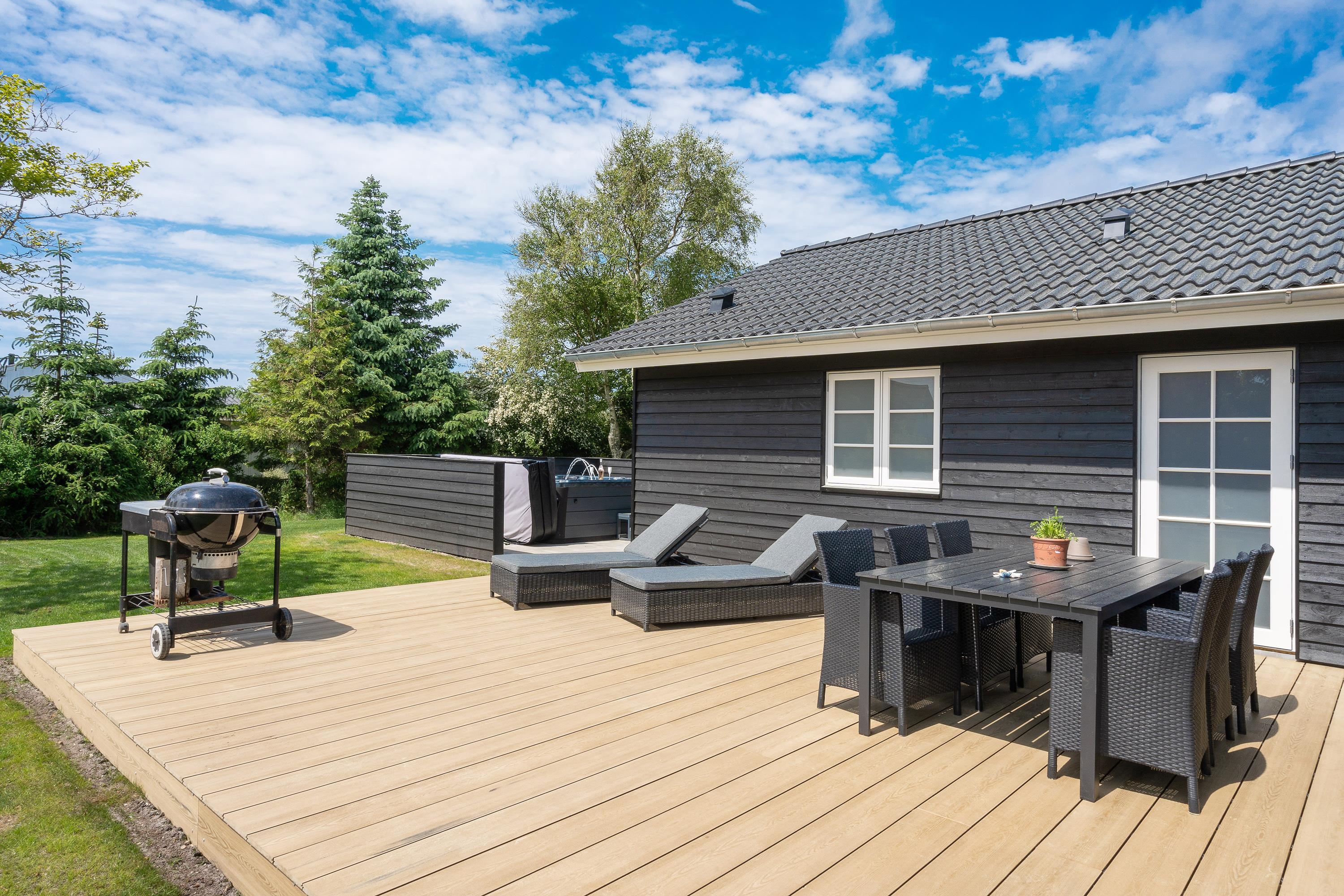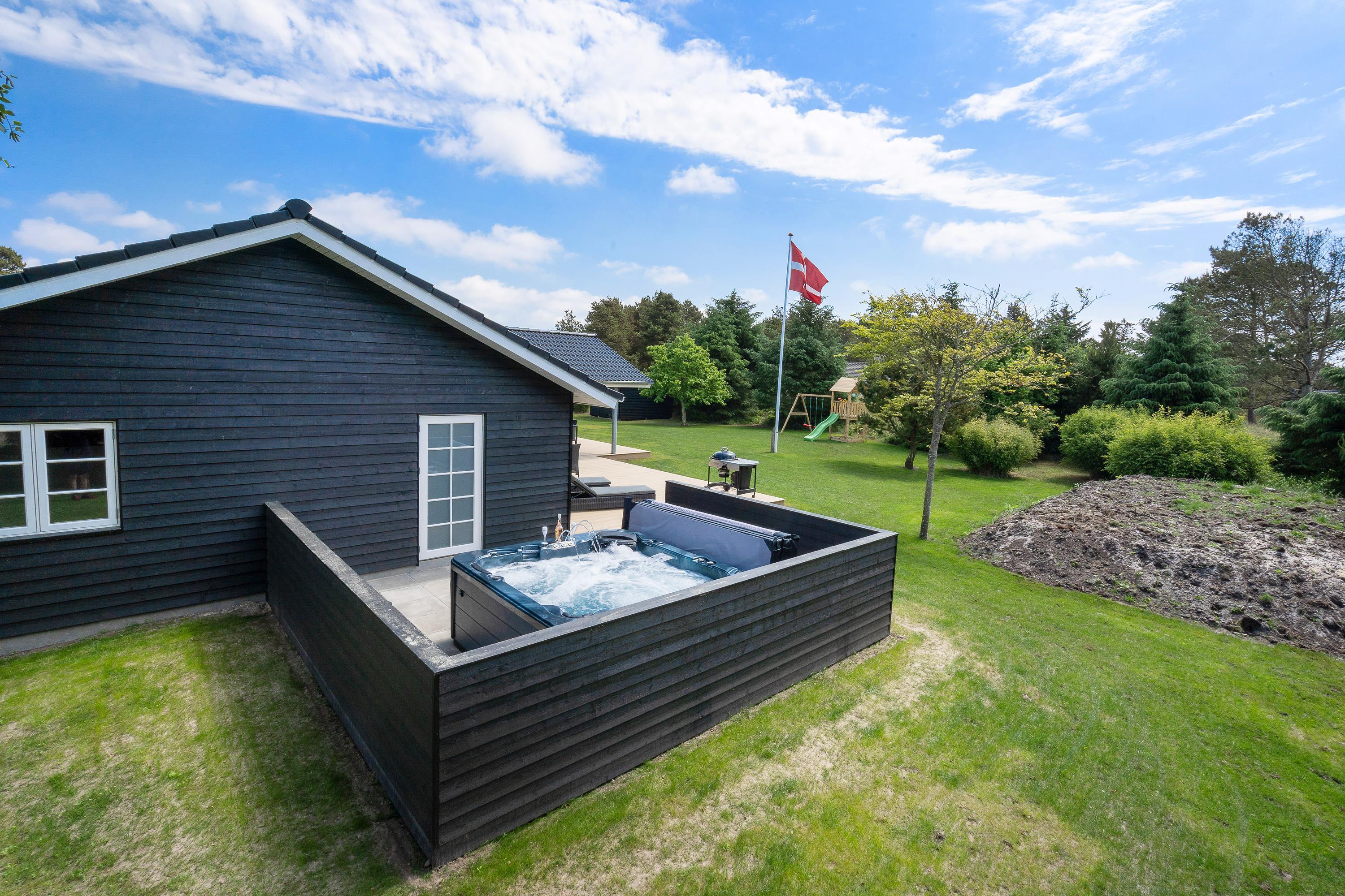Terrassehygge med udendørs spabad og gynger til børnene