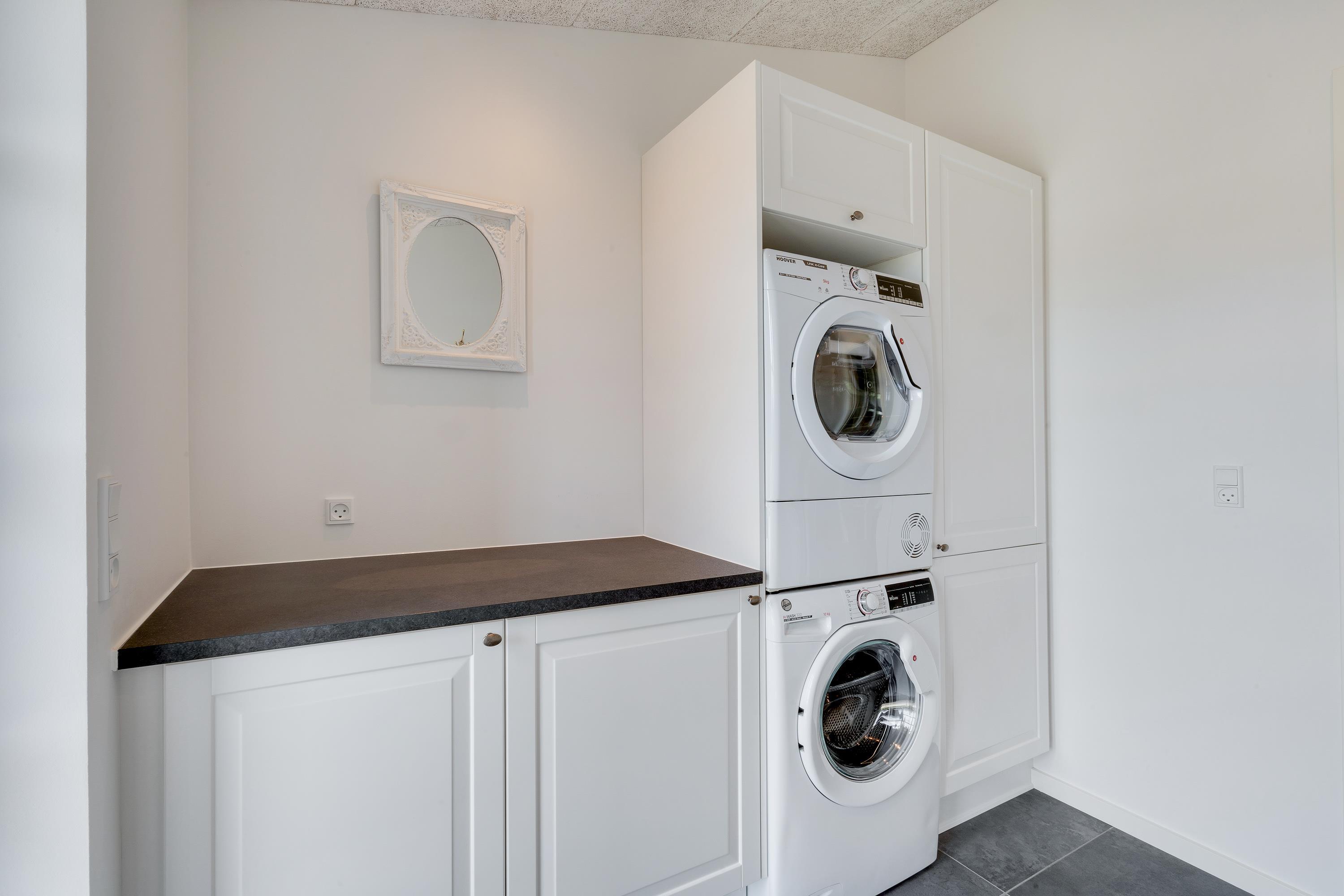Naturligvis er feriehuset på Peders Vej indrettet med alle praktiske faciliteter, som gør ferielivet nemt. I har både opvaskemaskine, vaskemaskine og tørretumbler. Den hurtige og stabile internetforbindelse sørger for, I alle kan være online.
