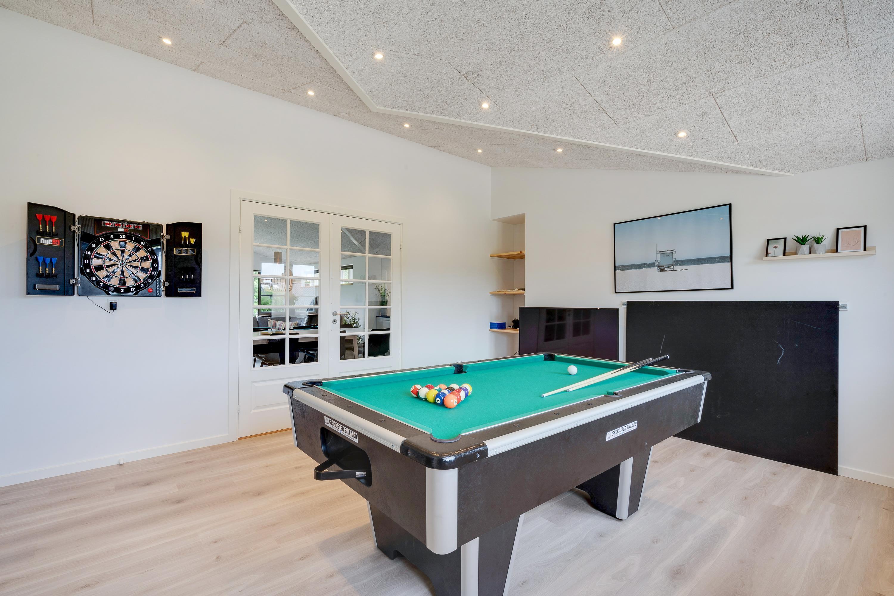 Med mulighed for wellness og sjov er der sørget for underholdning til enhver smag. I aktivitetsrummet kan I give jer i kast med poolbord, bordtennis og dart. Tag en pause i feriehusets ved tænd op i saunaen, der befinder sig i det største af husets 2 badeværelser, der super smart er udstyret med en dobbeltbruser.