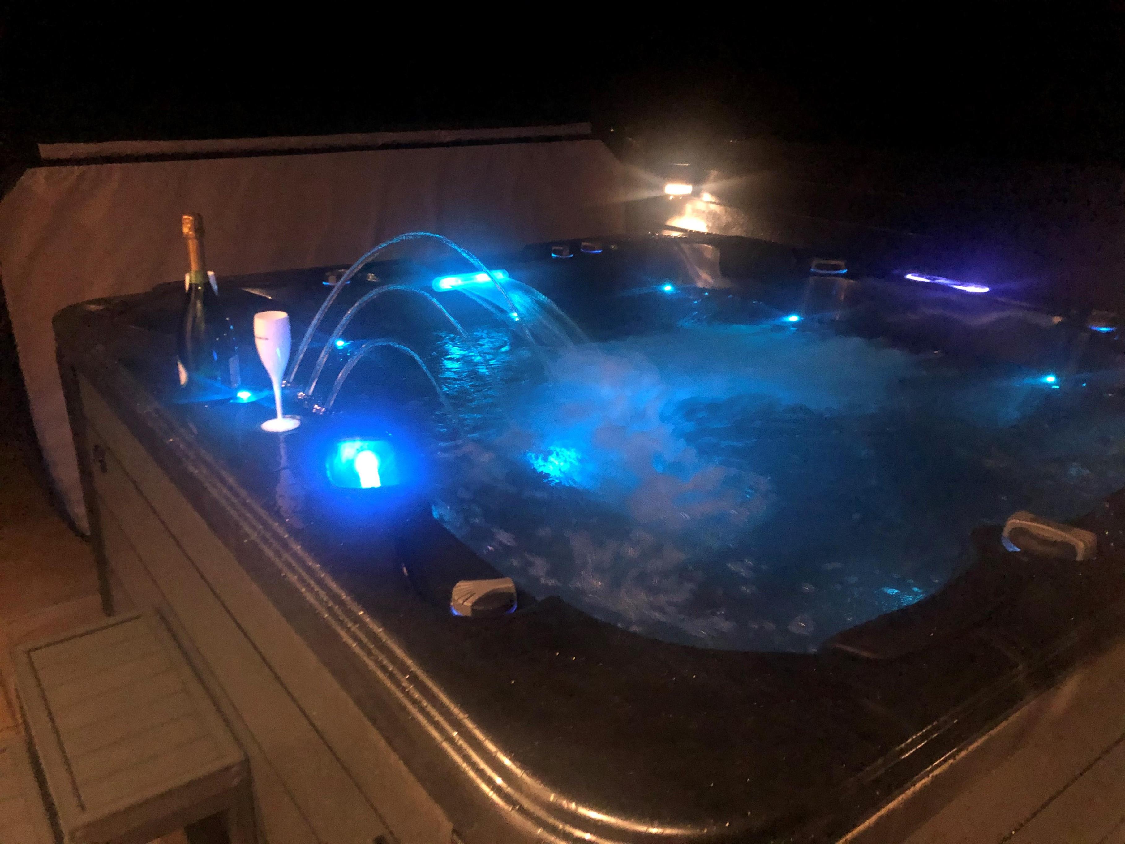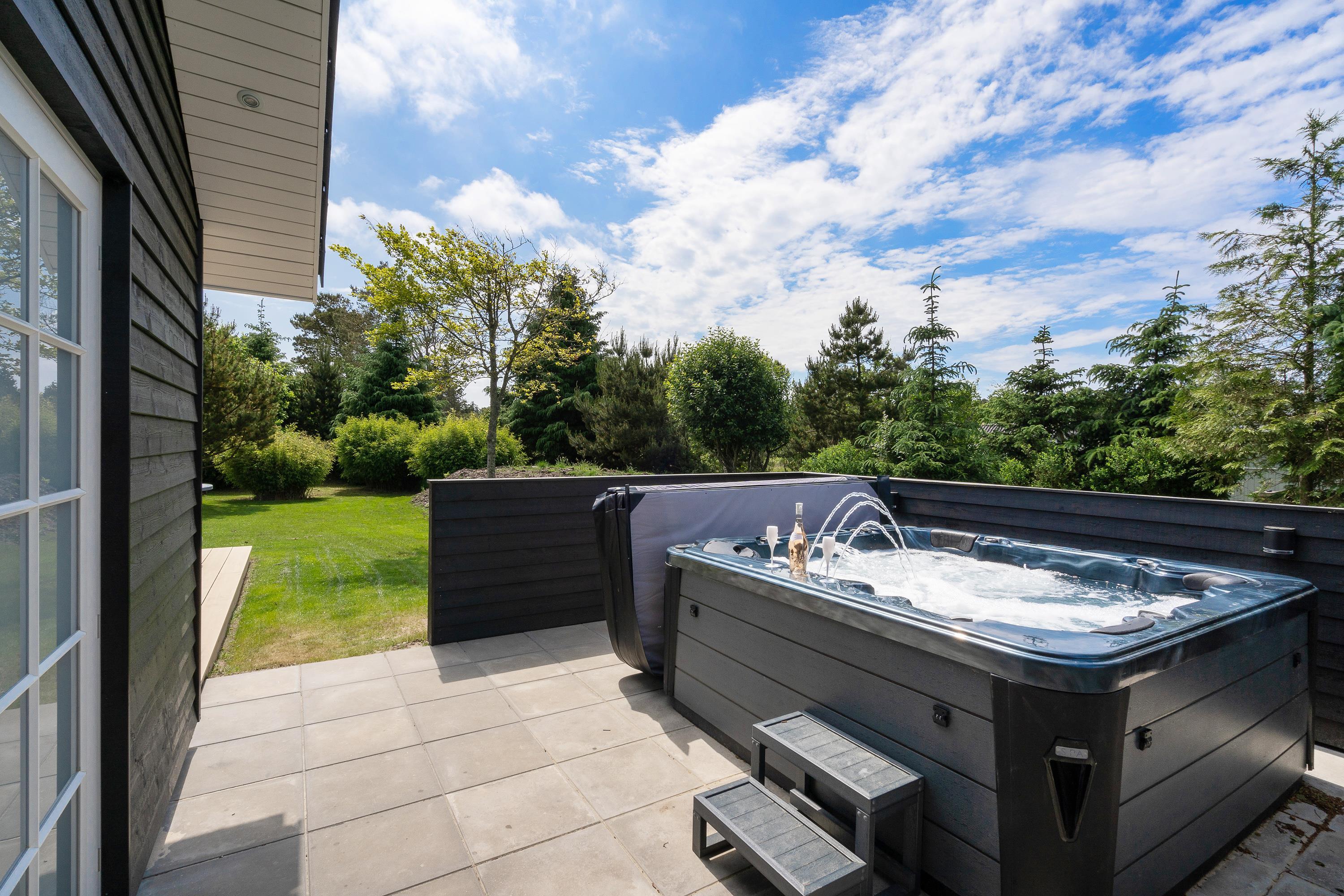 Et ekstra highlight på terrassen er udespaen. Det varme boblebad til 5 personer kan benyttes året rundt, og findes der bedre måder at slutte en perfekt feriedag af på, end med en afslappende jacuzzi-session under stjernehimmelen?