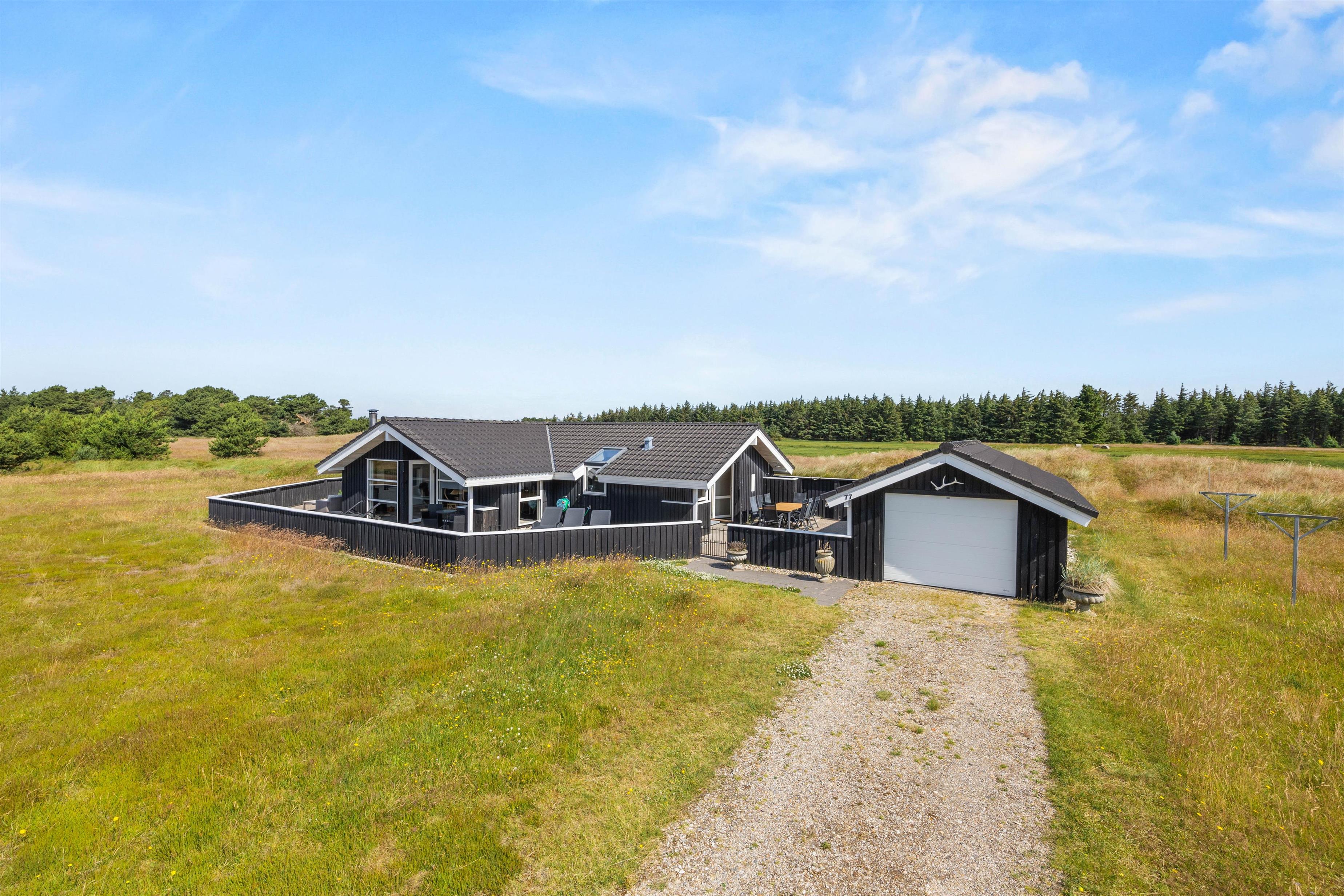 Dette hyggelige feriehus har en fantastisk beliggenhed med vid udsigt over hede- og klitlandskabet ved en privat fiskesø. En varm og hyggelig atmosfære møder jer i træhuset på Jafdalvej 77, hvor der er plads til 6 personer, der elsker udelivet og også nyder en tur i sauna og spabad.