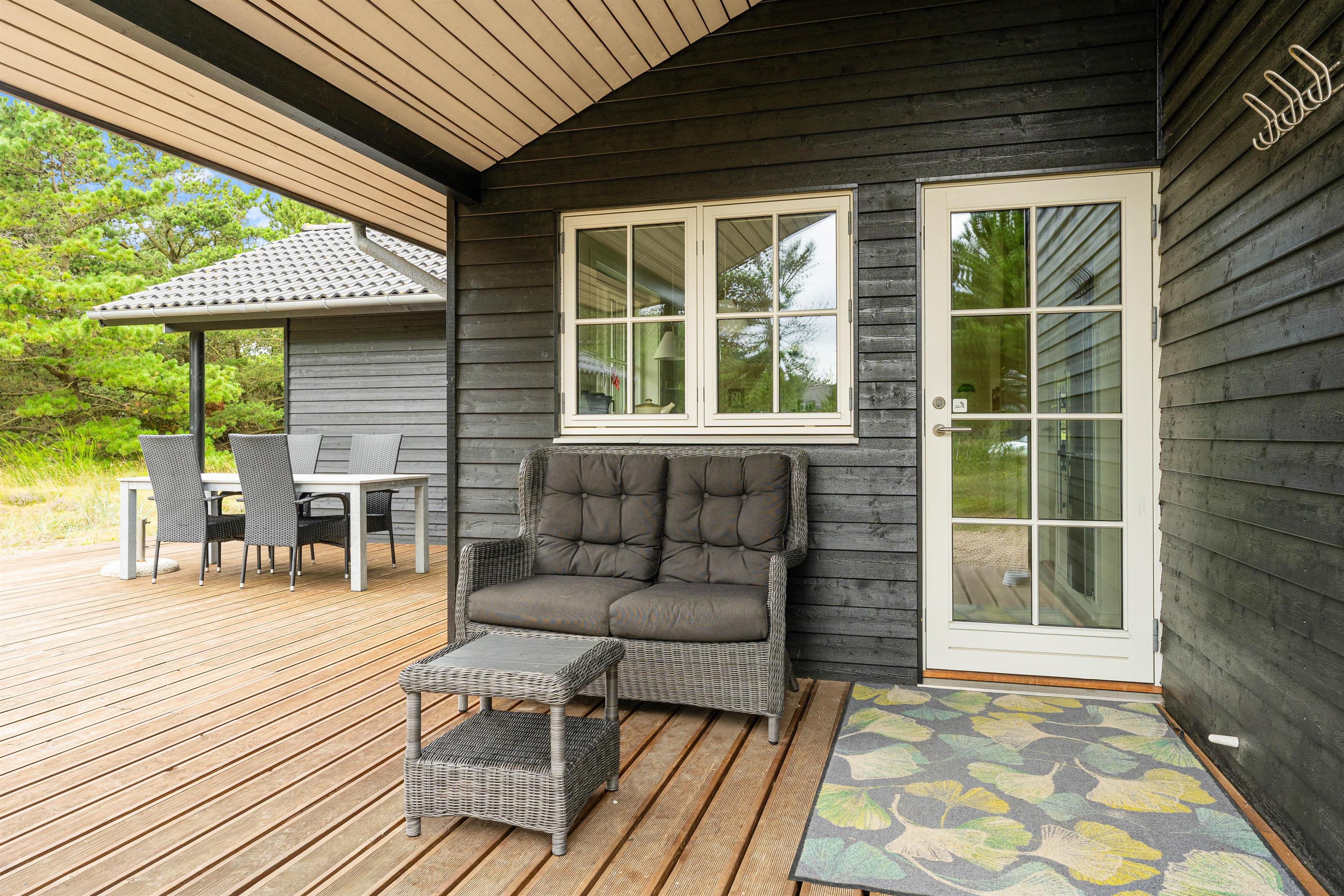 På en smuk naturgrund i Vejers Strand står dette skønne feriehus til 4 personer. Feriehuset er lækkert indrettet med moderne møbler og praktiske faciliteter (som for eksempel 2 badeværelser, opvaskemaskine og vaskemaskine), og I kan både nyde de herlige feriedage på den gode terrasse eller på stranden, som kun ligger 600 meter væk. Hund er tilladt!