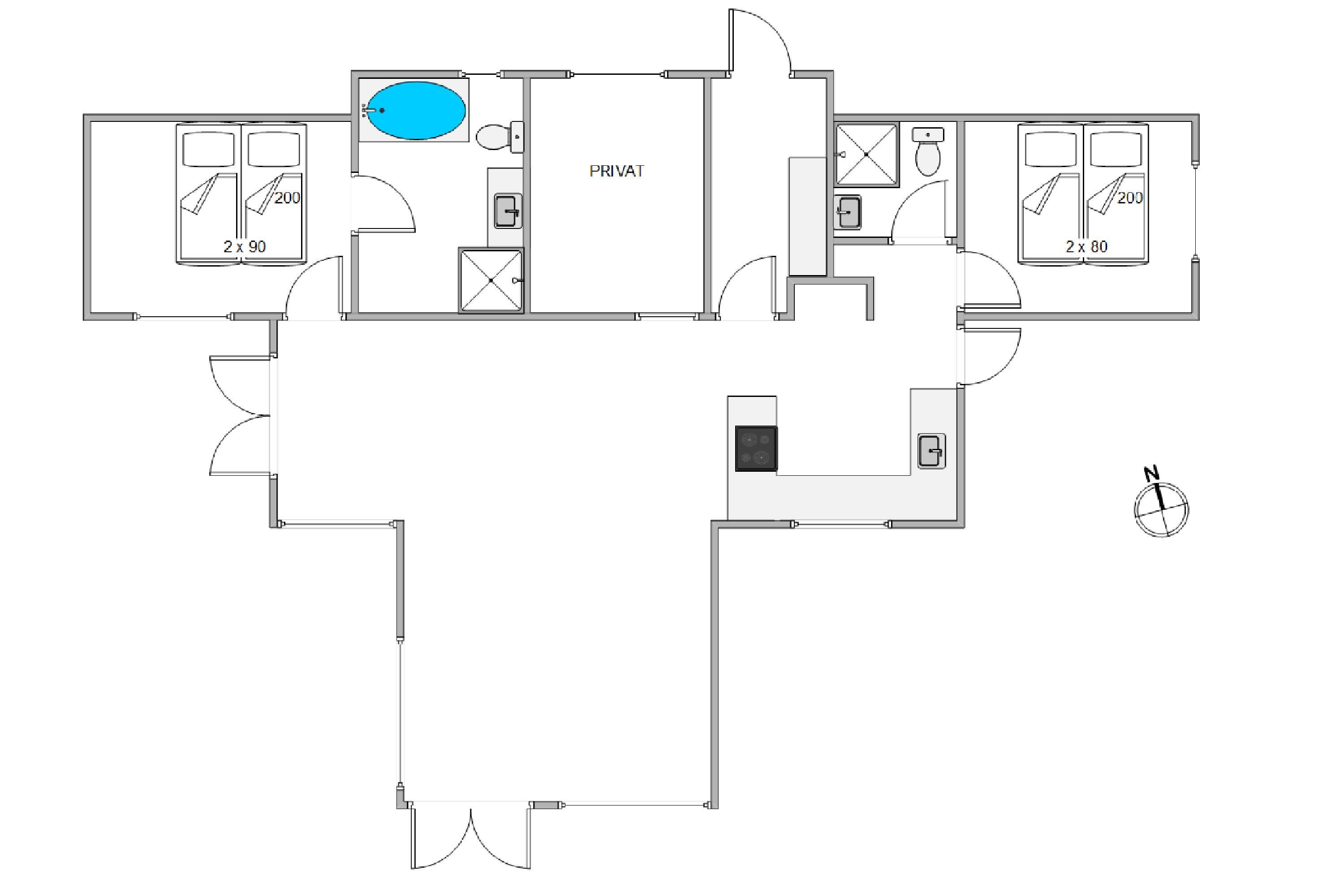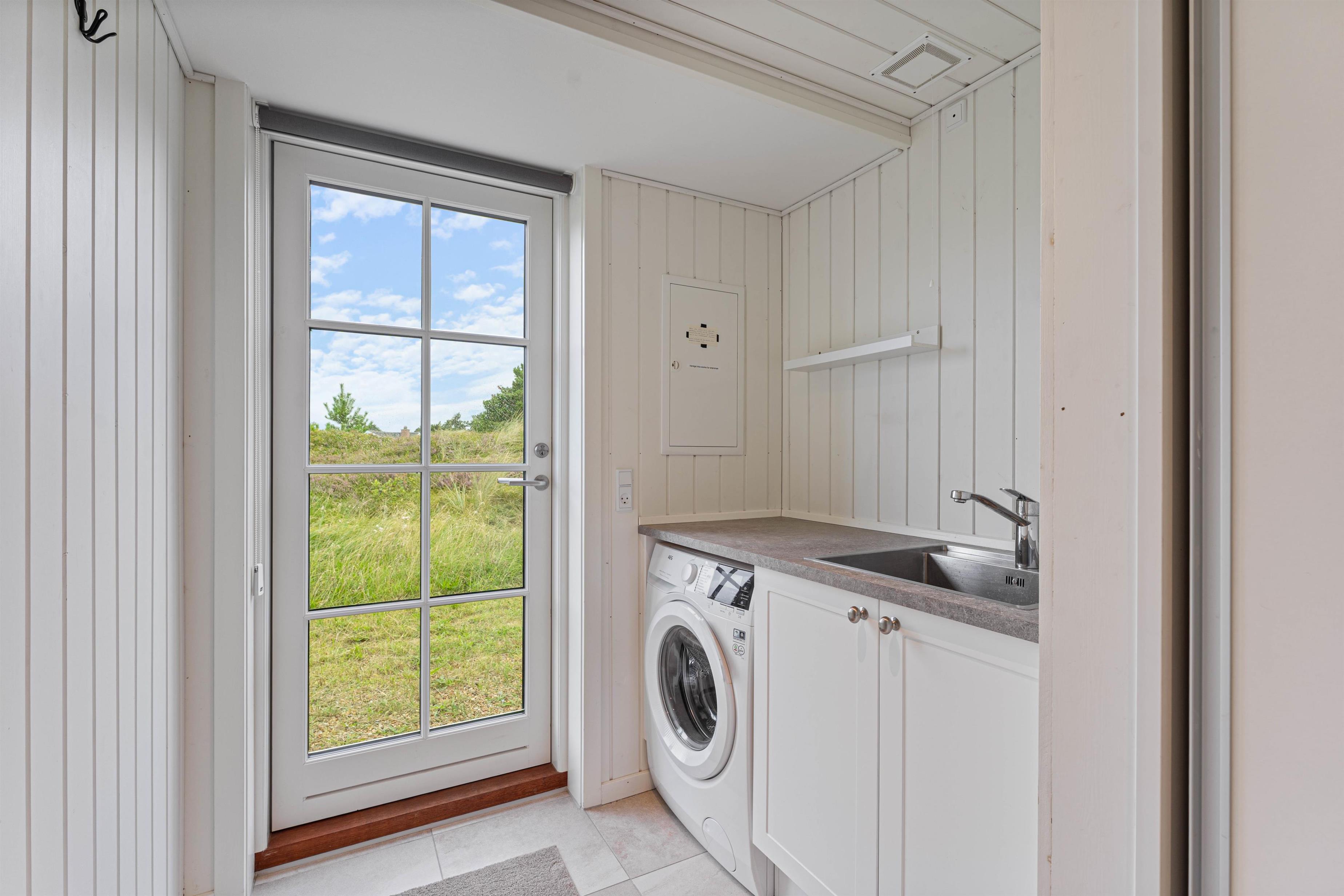Feriehuset er udstyret med 2 gode badeværelser - det største med både bruseniche og badekar og direkte tilgang fra soveværelset. Der er opvaskemaskine og vaskemaskine, og ikke mindst en god og stabil internetforbindelse, hvis I har brug for at være online på ferien.