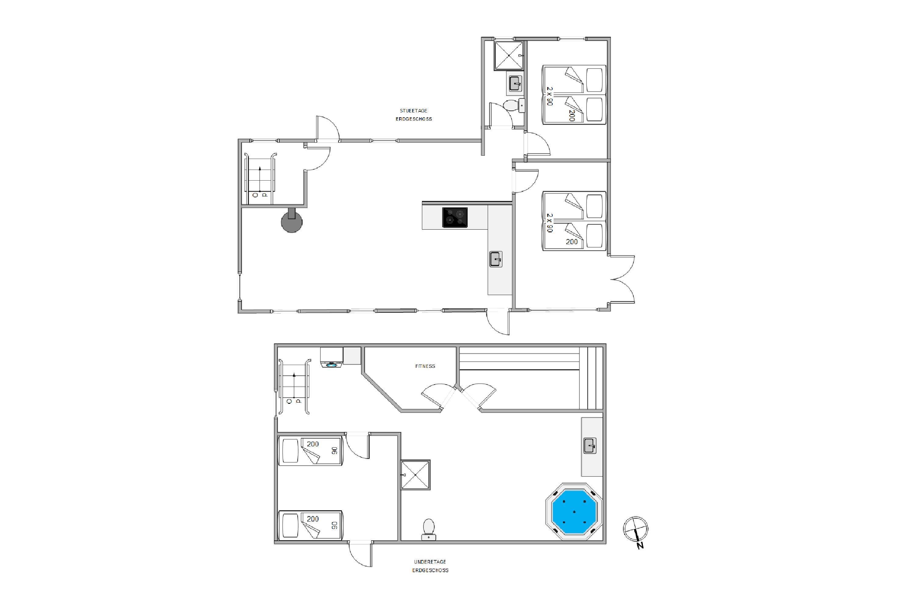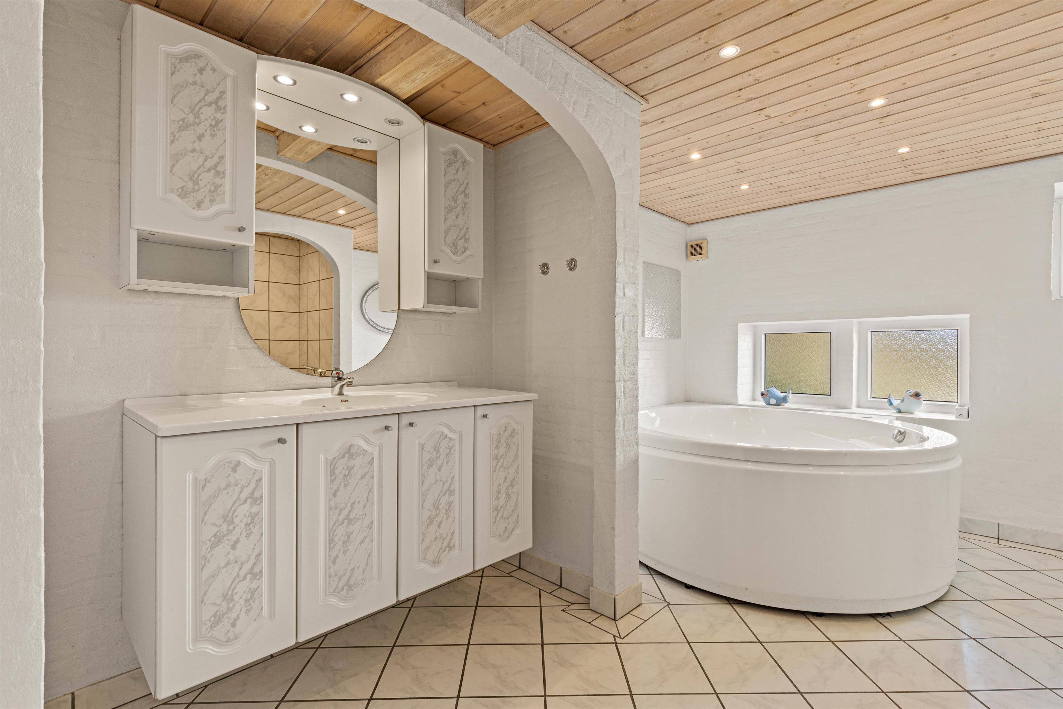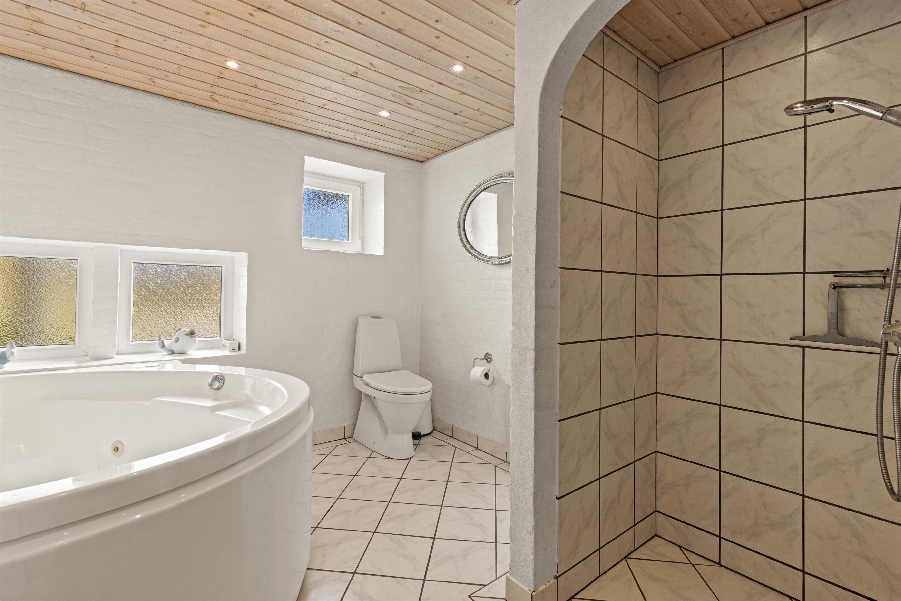 Med 125 m2 fordelt på 2 etager er her masser af plads til feriehygge med familien eller vennerne. De 3 soverum er dejligt store, 2 har dobbeltsenge og i det sidste er der 2 enkeltsenge. En dejlig luksus udgør de 2 badeværelser, som begge har gulvvarme – i det store badeværelse står der både sauna og spa.