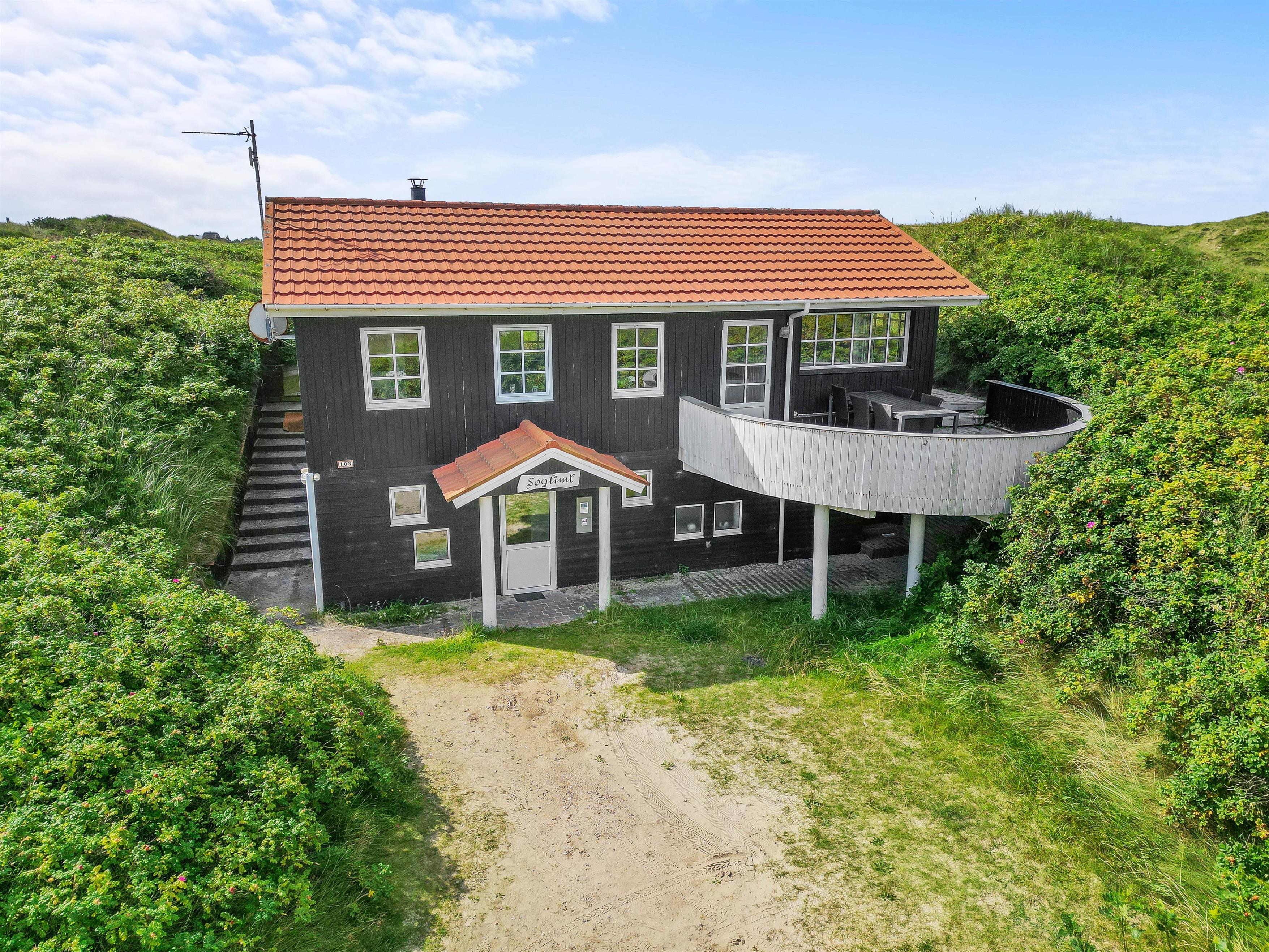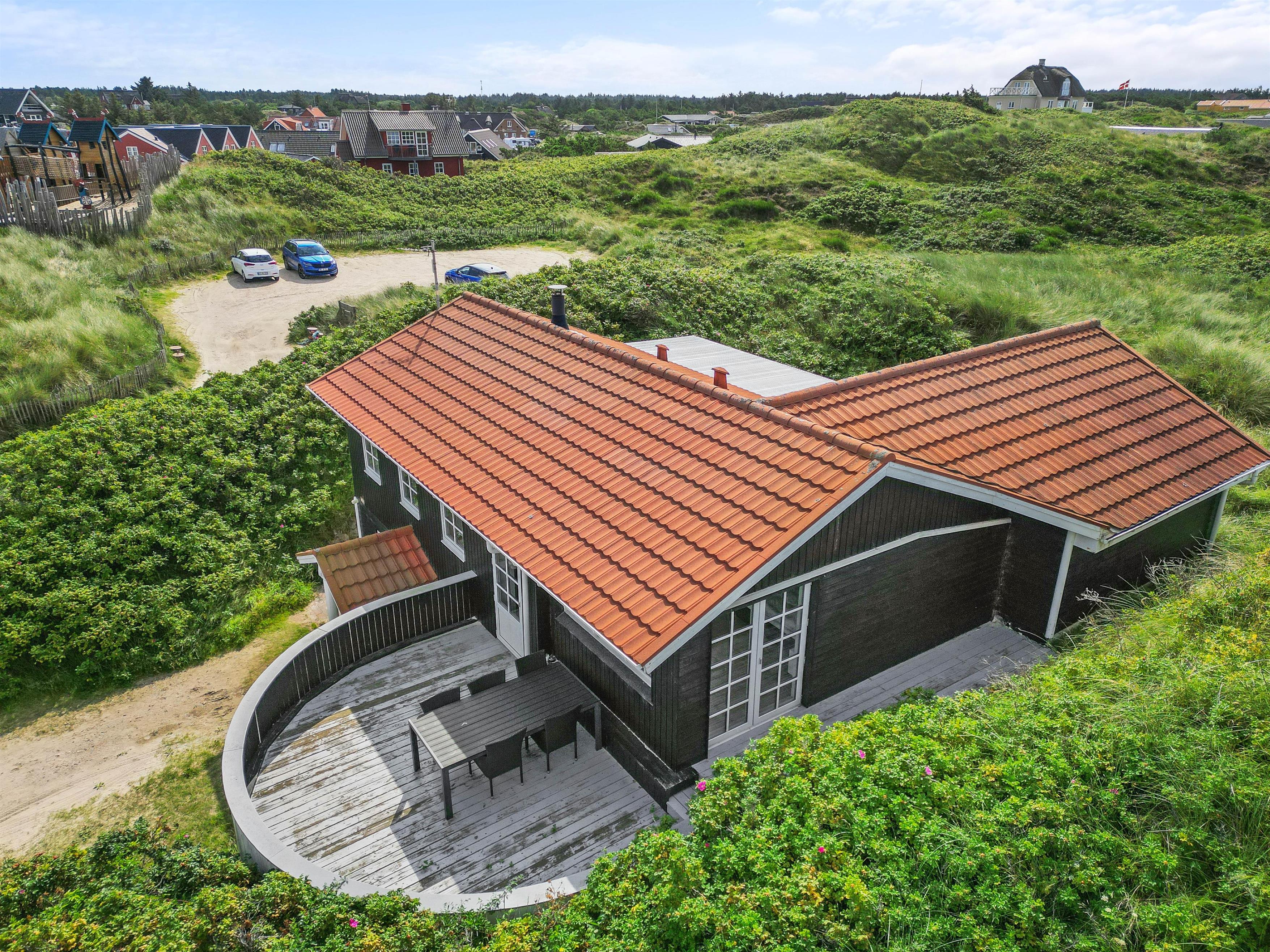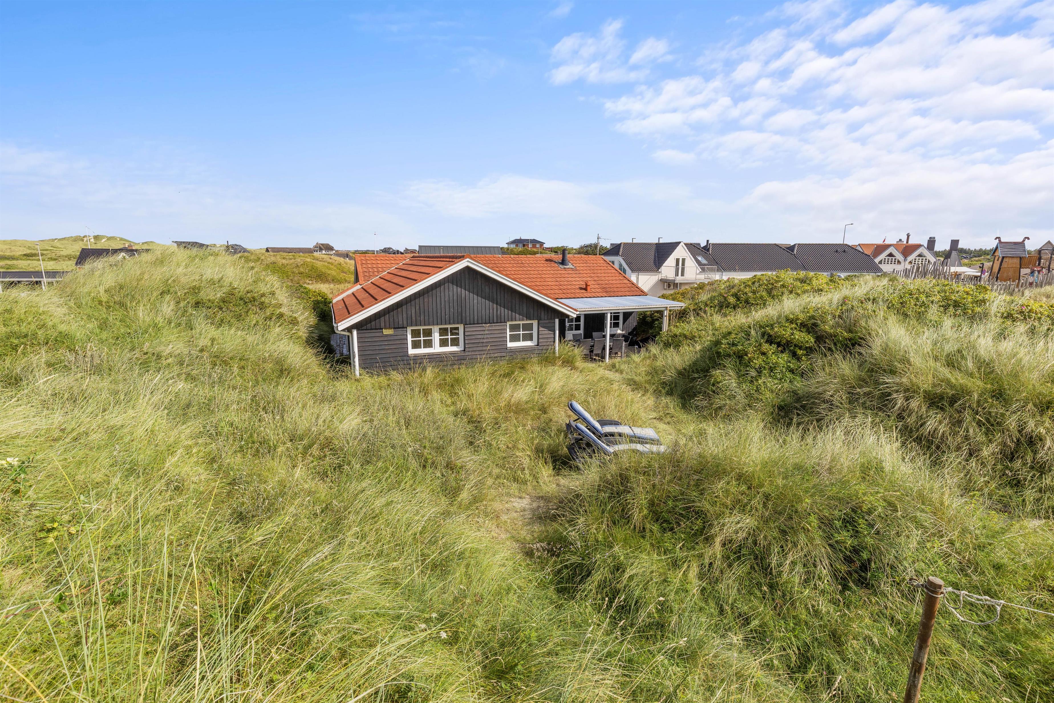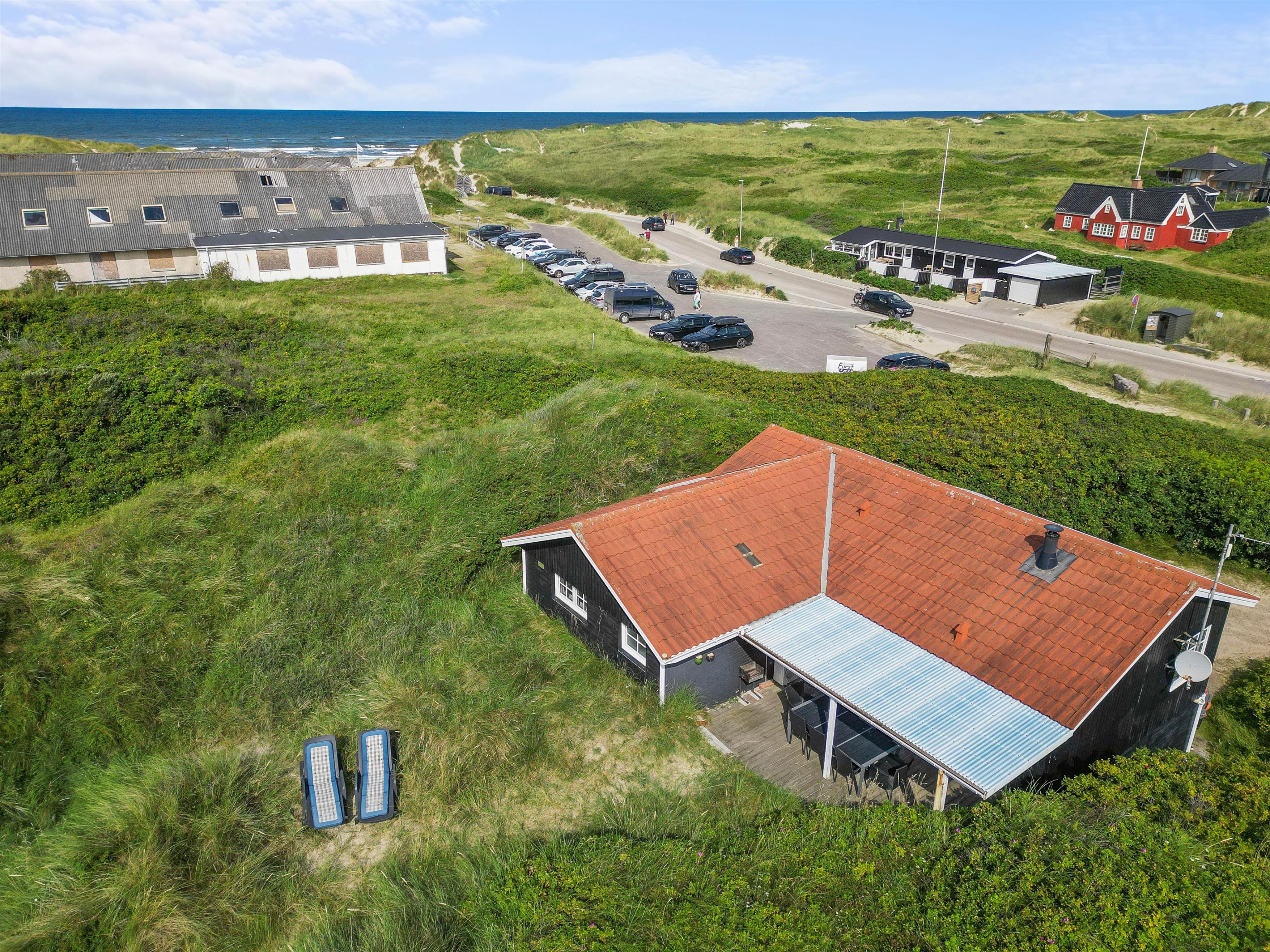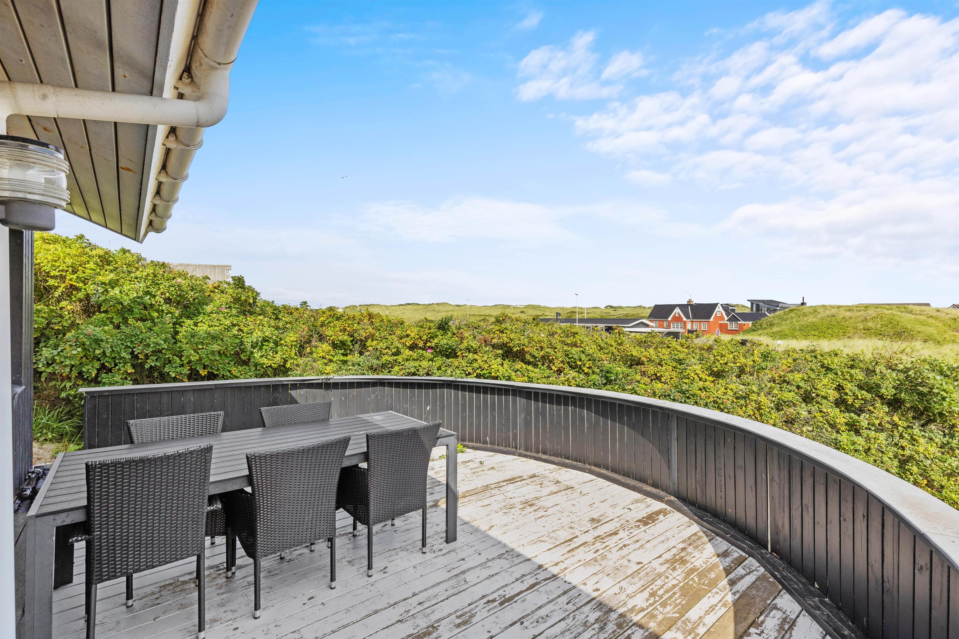 Senere, efter en oplevelsesrig dag ved stranden eller hjemkommet fra udflugt, kan I søge ud på terrasse mod vest og nyde at sidde højt nok, til at kunne se solen gå ned bag klitterne.