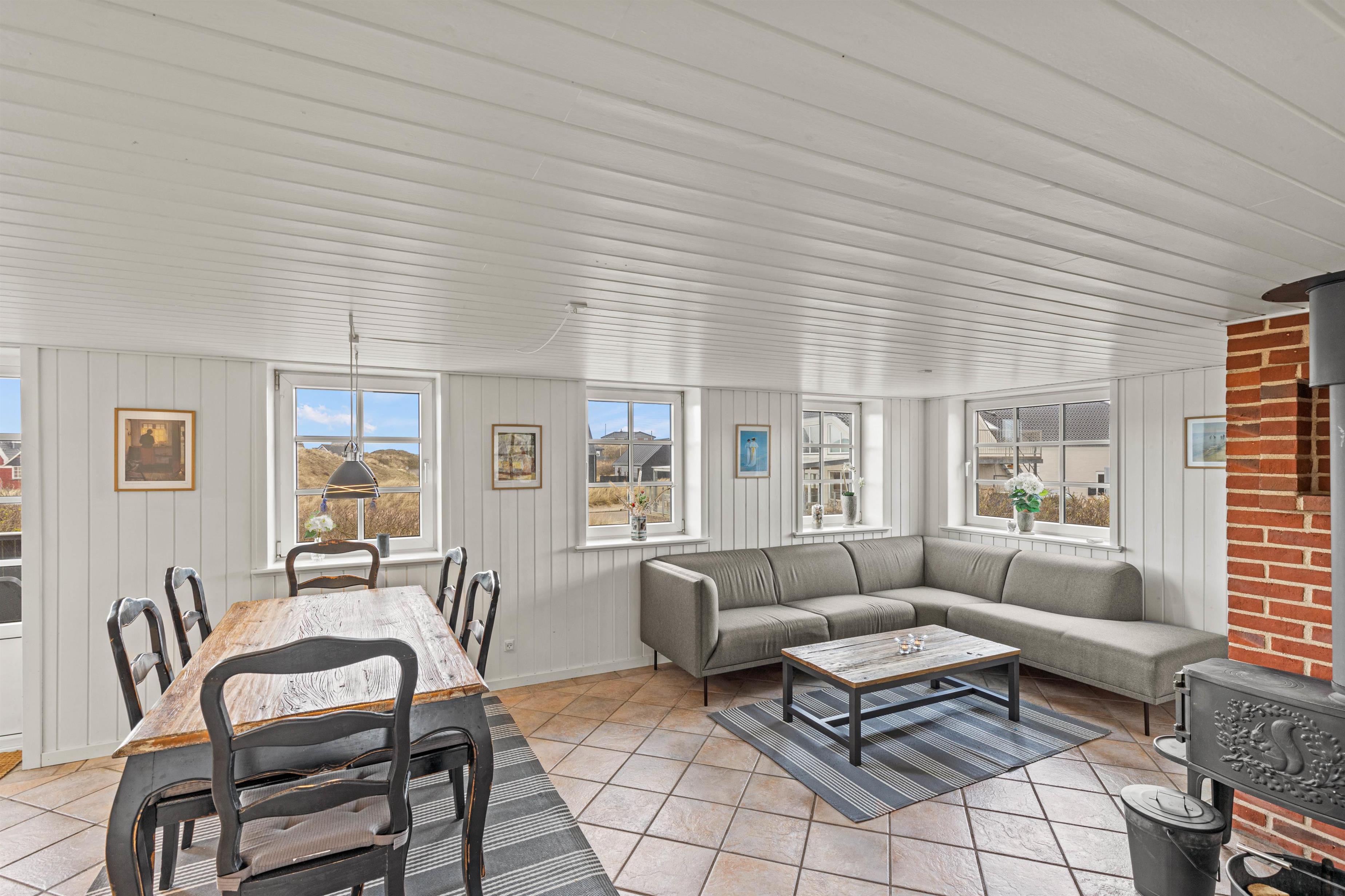 Dette hyggelige sommerhus ligger ind i en klit, kun 100 meter fra vandet. Gå en lang tur på stranden - måske er I så heldige, at I finder rav. Vejers by indbyder med små butikker, restauranter og et galleri.