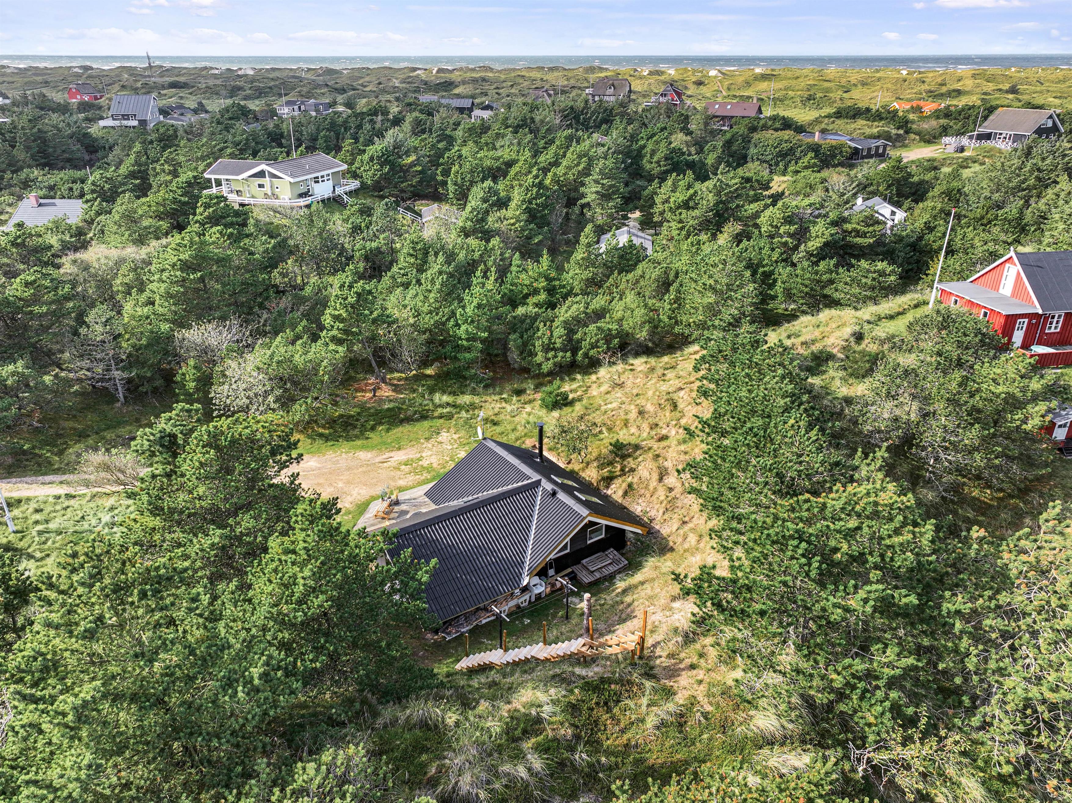 Selvom resten af verdenen synes langt væk, ligger Vejers by lige rundt om hjørnet kun 400 m væk. Her finder I både supermarkeder, restaurant og en stor legeplads til børnene. Vesterhavet og den smukke strand ligger kun 500 m fra feriehuset, så der er ikke langt til en hurtig solnedgangsbadetur eller en frisk travetur i vandkanten. Ellers ligger resten af Vestkysten tæt på, så I både kan købe fisk i Hvide Sande eller besøge museet Tirpitz i Blåvand.