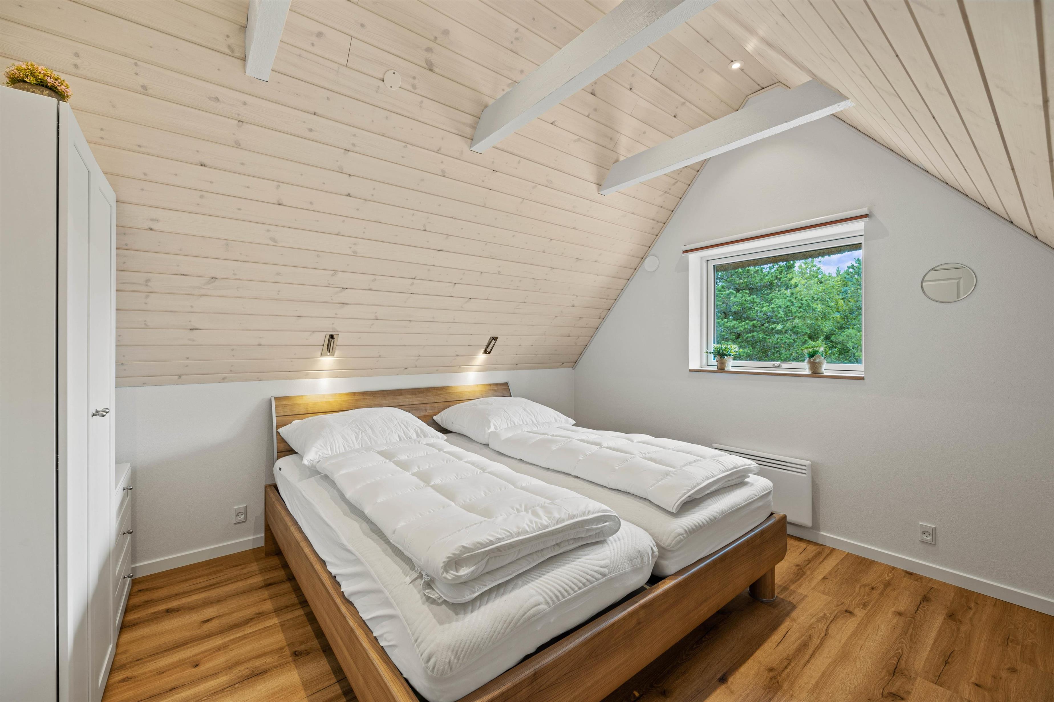Et andet highlight findes i soveværelset på første sal, hvorfra du har en fantastisk panoramaudsigt til det åbne engområde, der grænser op til feriehuset. Vågn op til synet af skovens konge og et af Vejers’ varemærker, krondyrene, der jævnligt græsser på engen.
