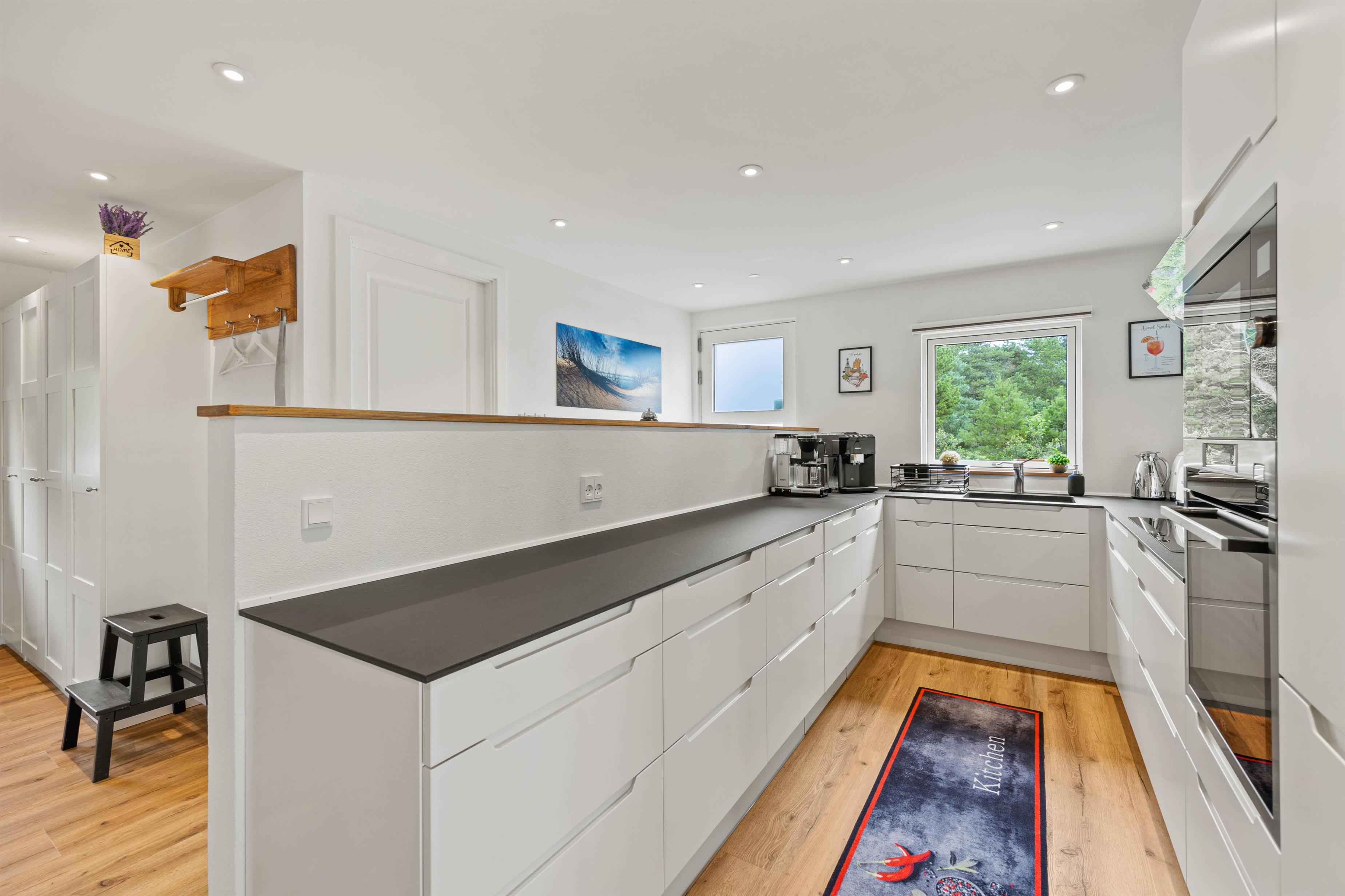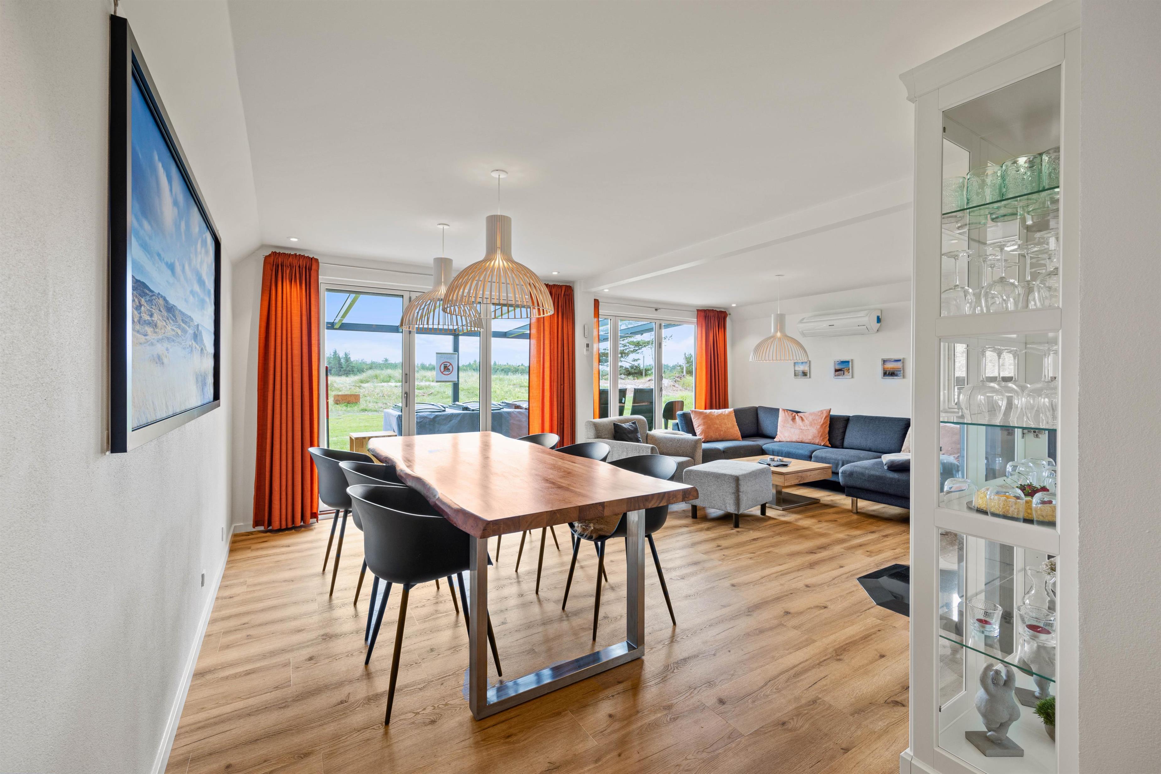 Det er ikke til at tage fejl af, når du træder ind ad døren på Aarrildsøvej: Her er tale om et nyrenoveret feriehus i tiptop-stand. Der er kræset for kvalitet såvel som detaljer i indretningen, og med plads til 6 personer (og op til 2 husdyr) er rammerne sat for en luksuriøs ferie i Vejers’ naturskønne omgivelser.