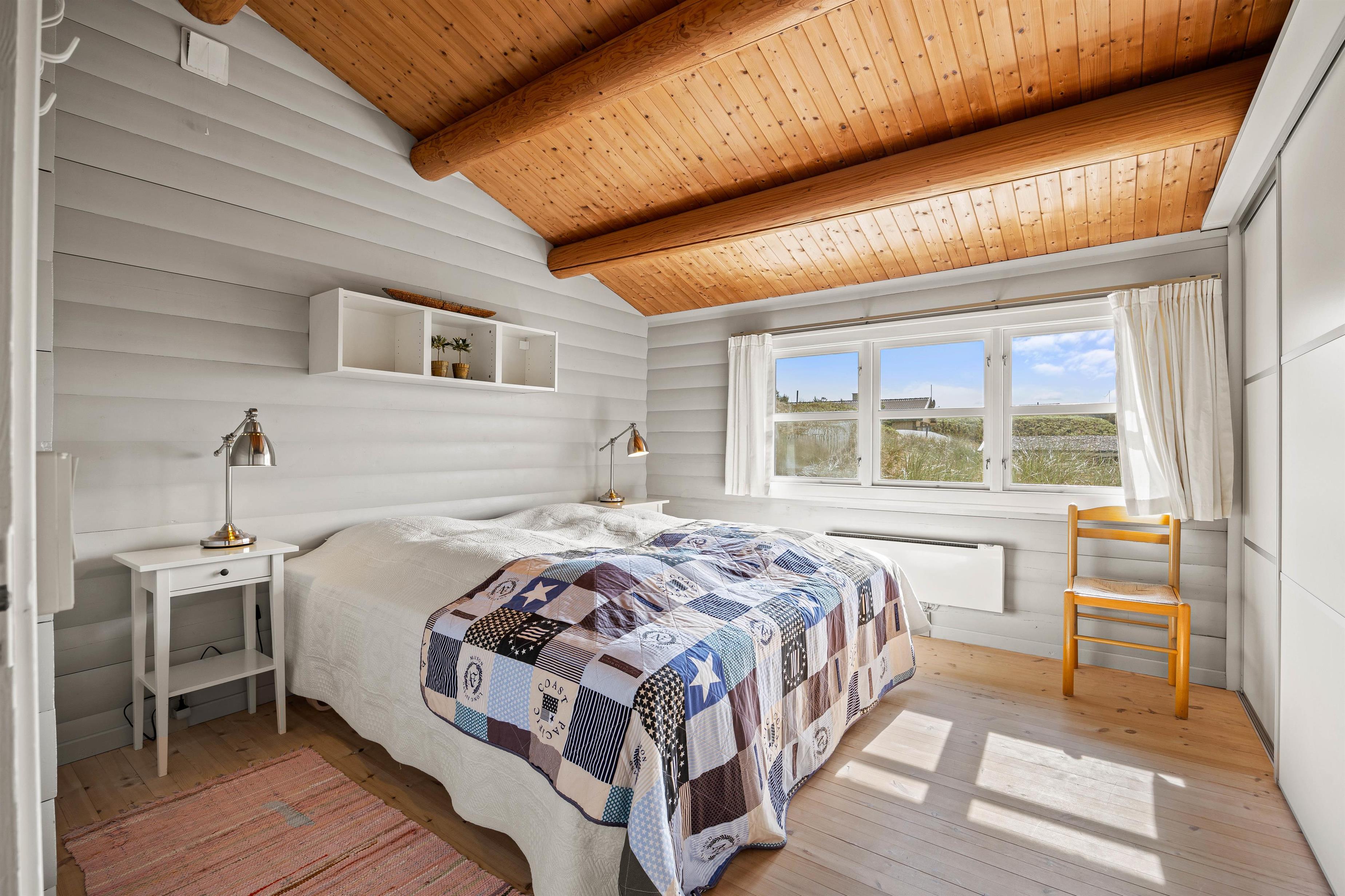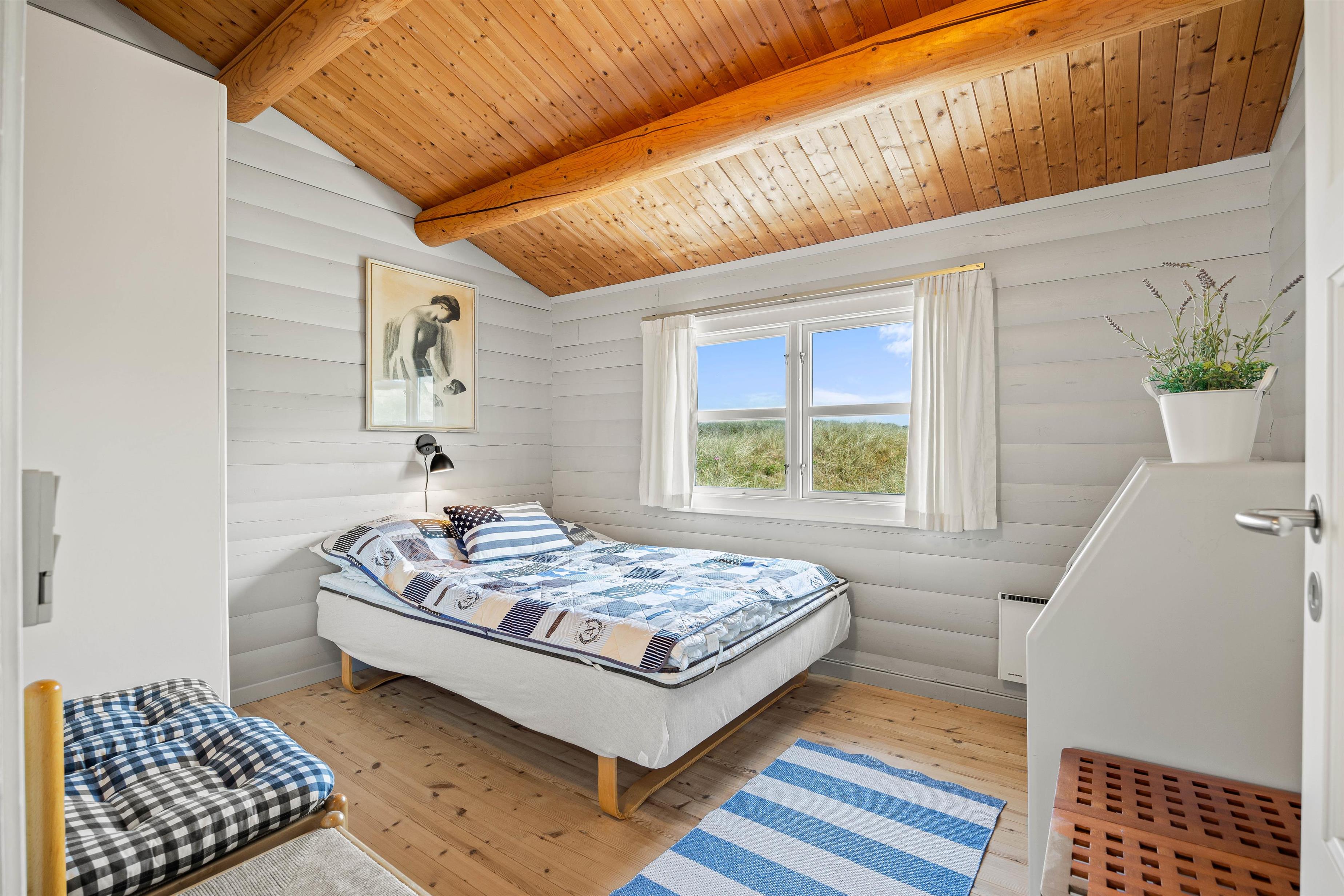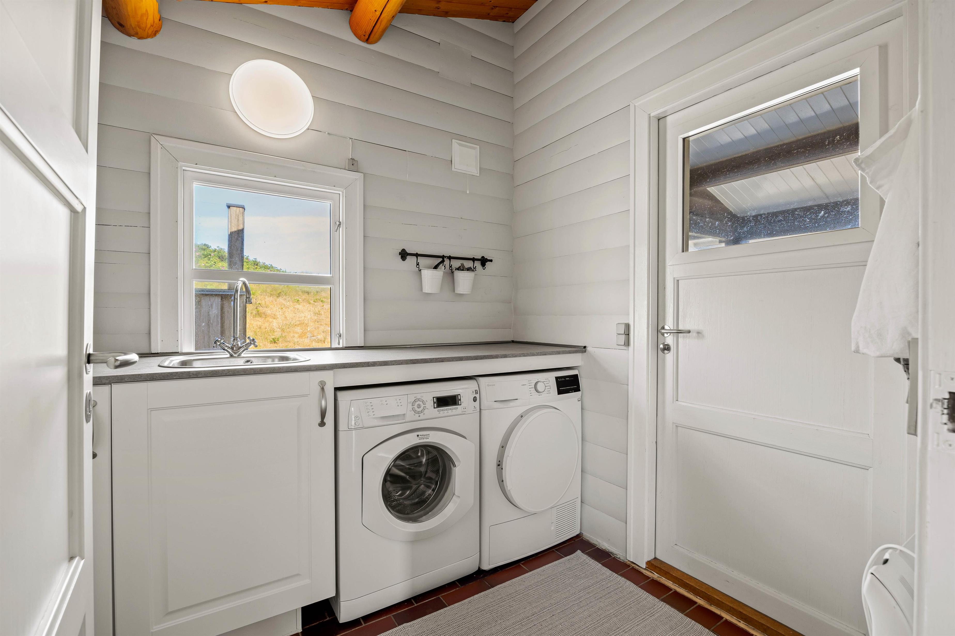 Sommerhuset har tre rummelige soveværelser, så der er mulighed for at børnene kan få hvert sit værelse. De to er indrettet med dobbeltsenge, mens det tredje soveværelse har to enkeltsenge. På det ene værelse finder I skydedørsskabe med god opbevaringsplads. Udover et badeværelse finder I også et dejligt bryggers med vaskemaskine og tørretumbler.