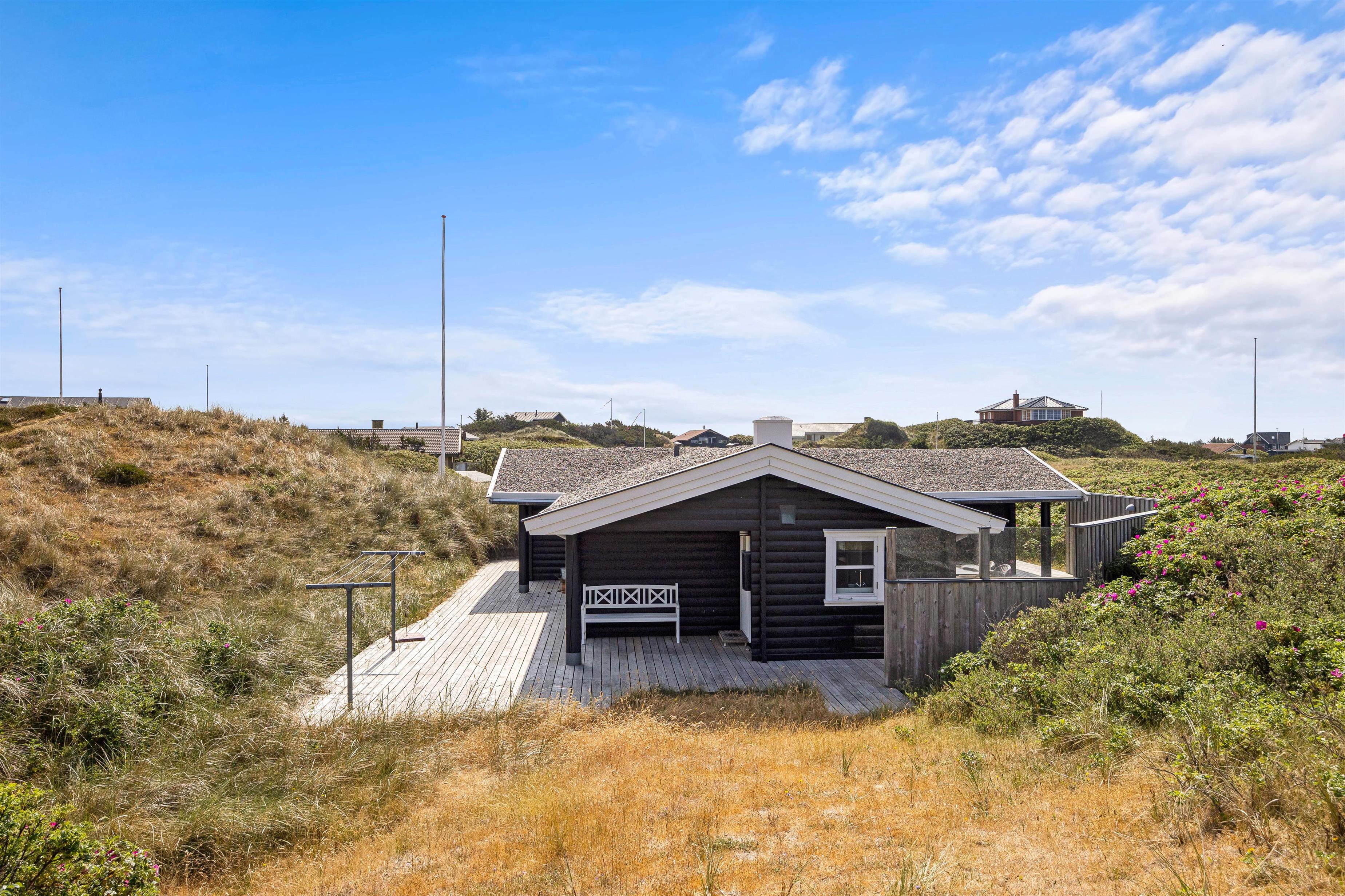 Sommerhuset på Rosenvej 19 er lige til at forelske sig i. Det ligger kun 10 meter fra Vesterhavet, ved første klitrække på en kæmpestor naturgrund. Her kan I holde en uforglemmelig ferie med familien eller vennerne tæt på naturen og vandet og vinden i det hyggelig indrettede sommerhus.