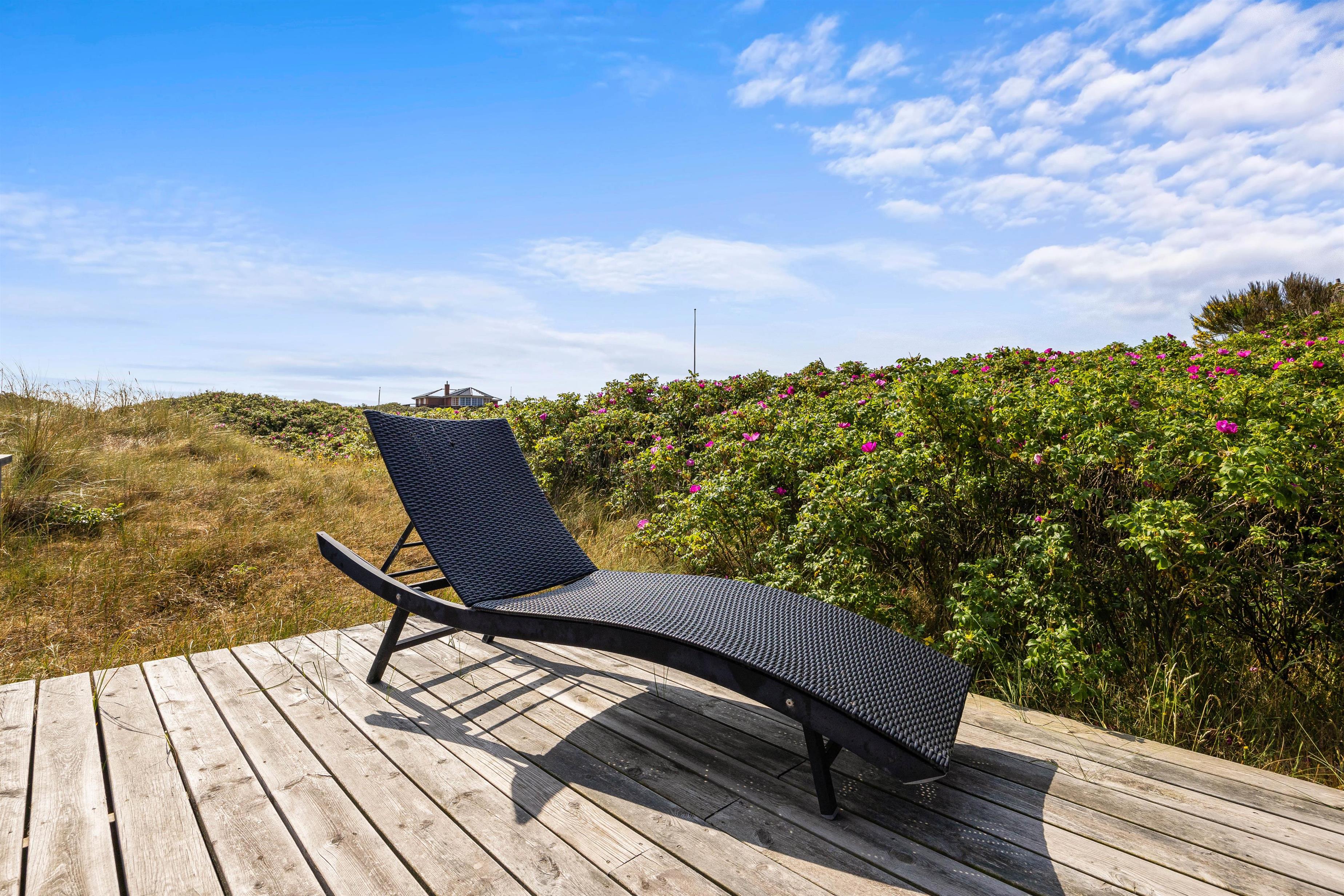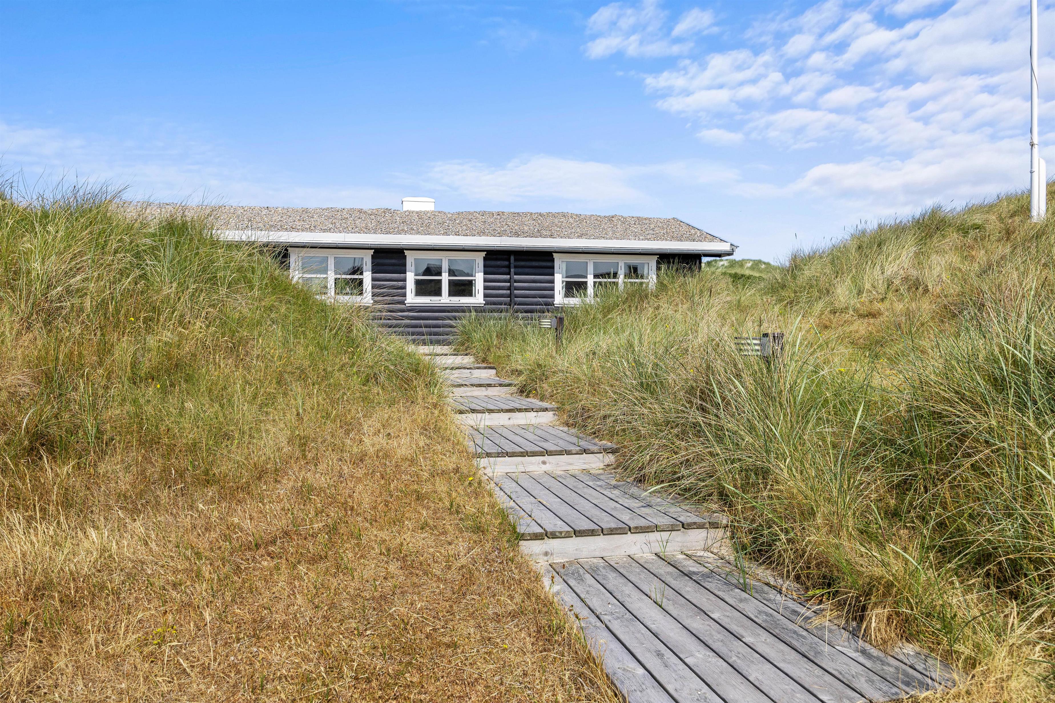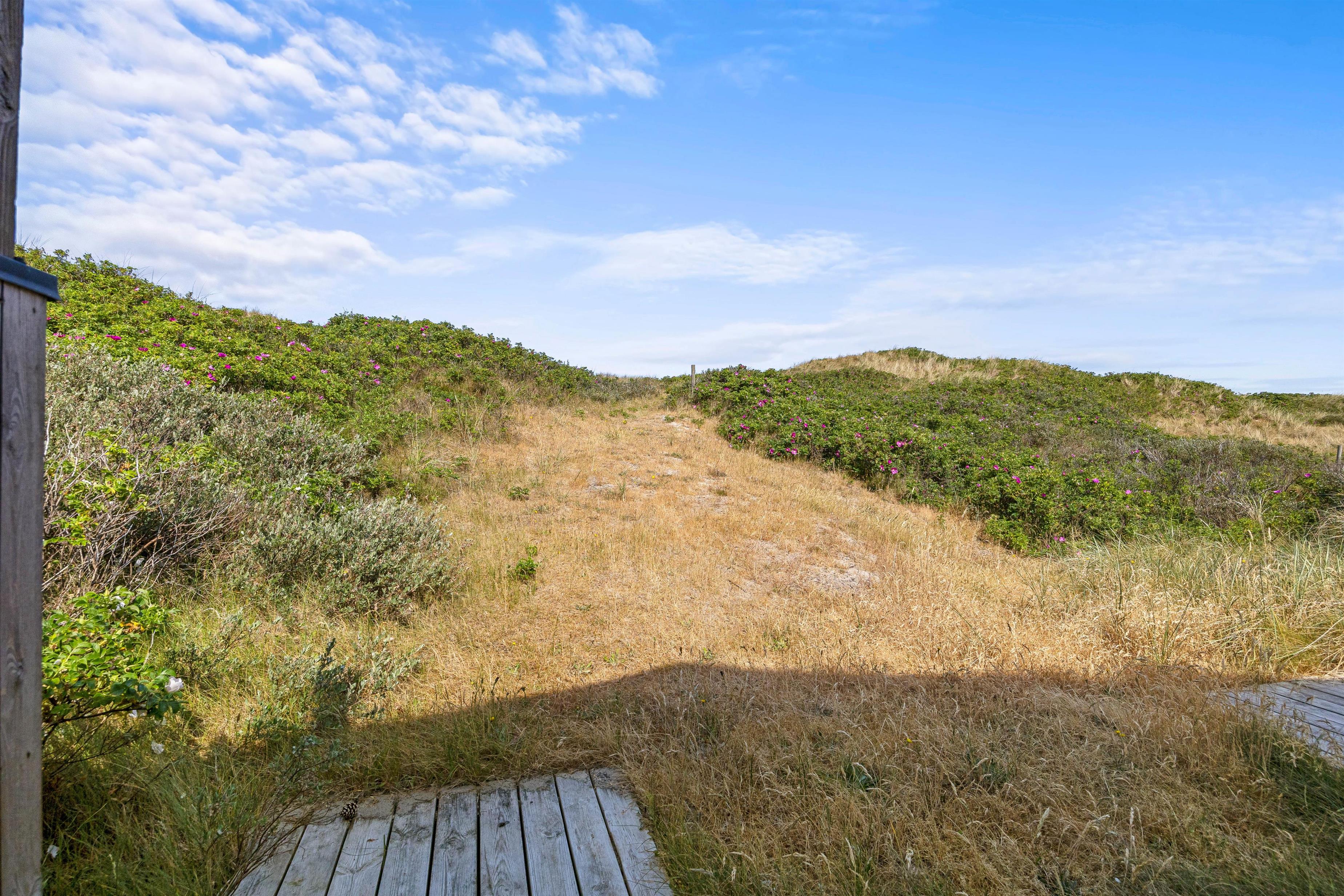 Lige bag sommerhuset er en privat sti, som vil føre jer direkte til det brusende Vesterhav.