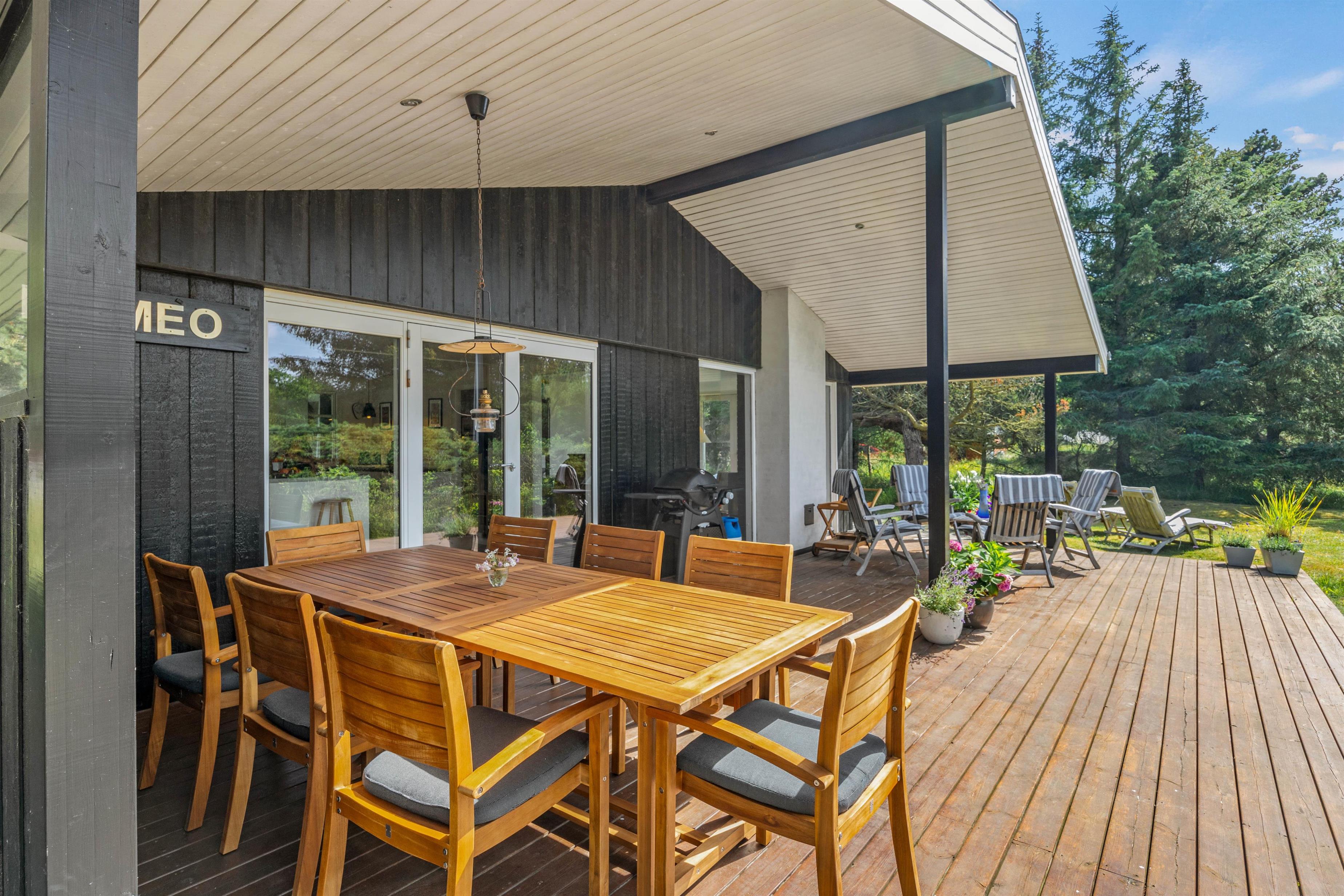 På den 1540 m² store grund er der masser af plads til afslapning og friluftsaktiviteter, og den afskærmede og overdækkede terrasse inviterer til afslappende timer under åben himmel. I kan benytte grillen og slappe af på havemøblerne i skønt selskab.