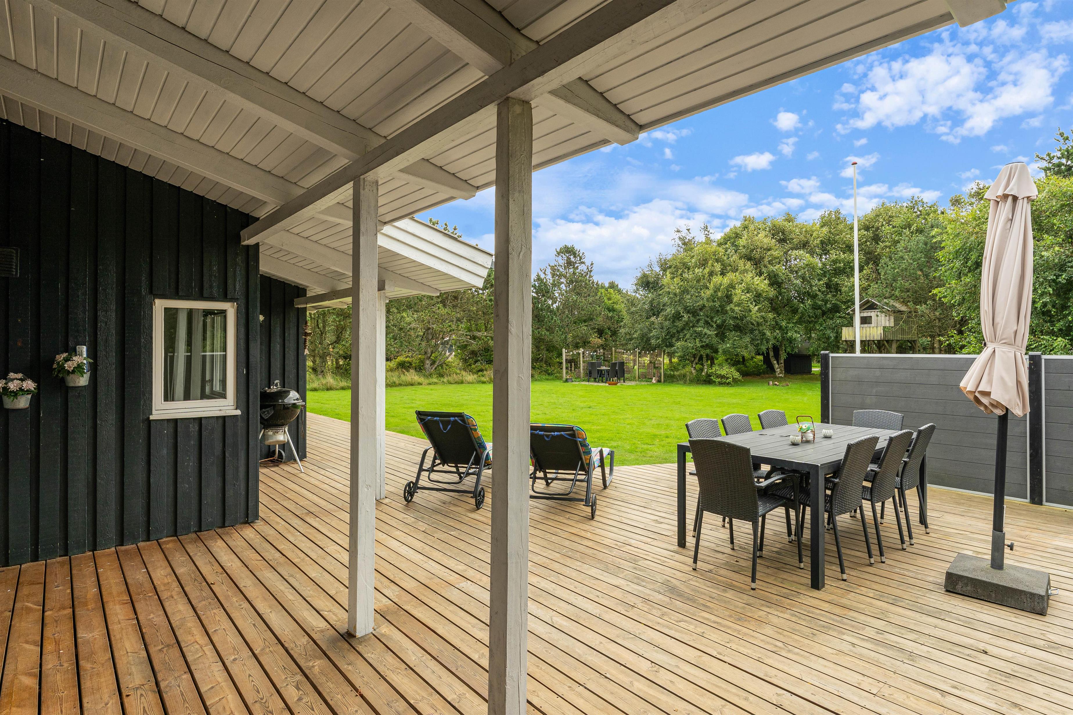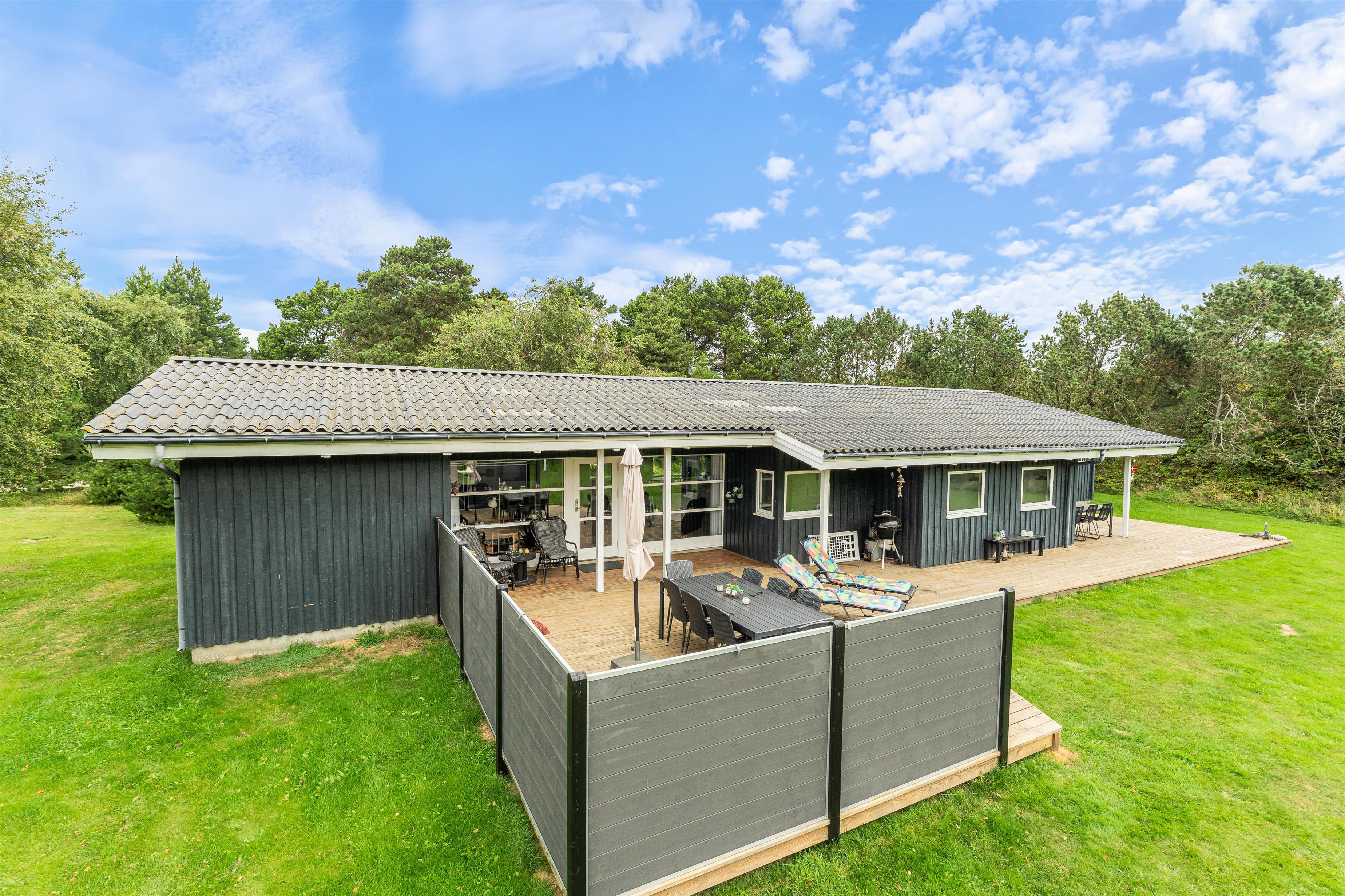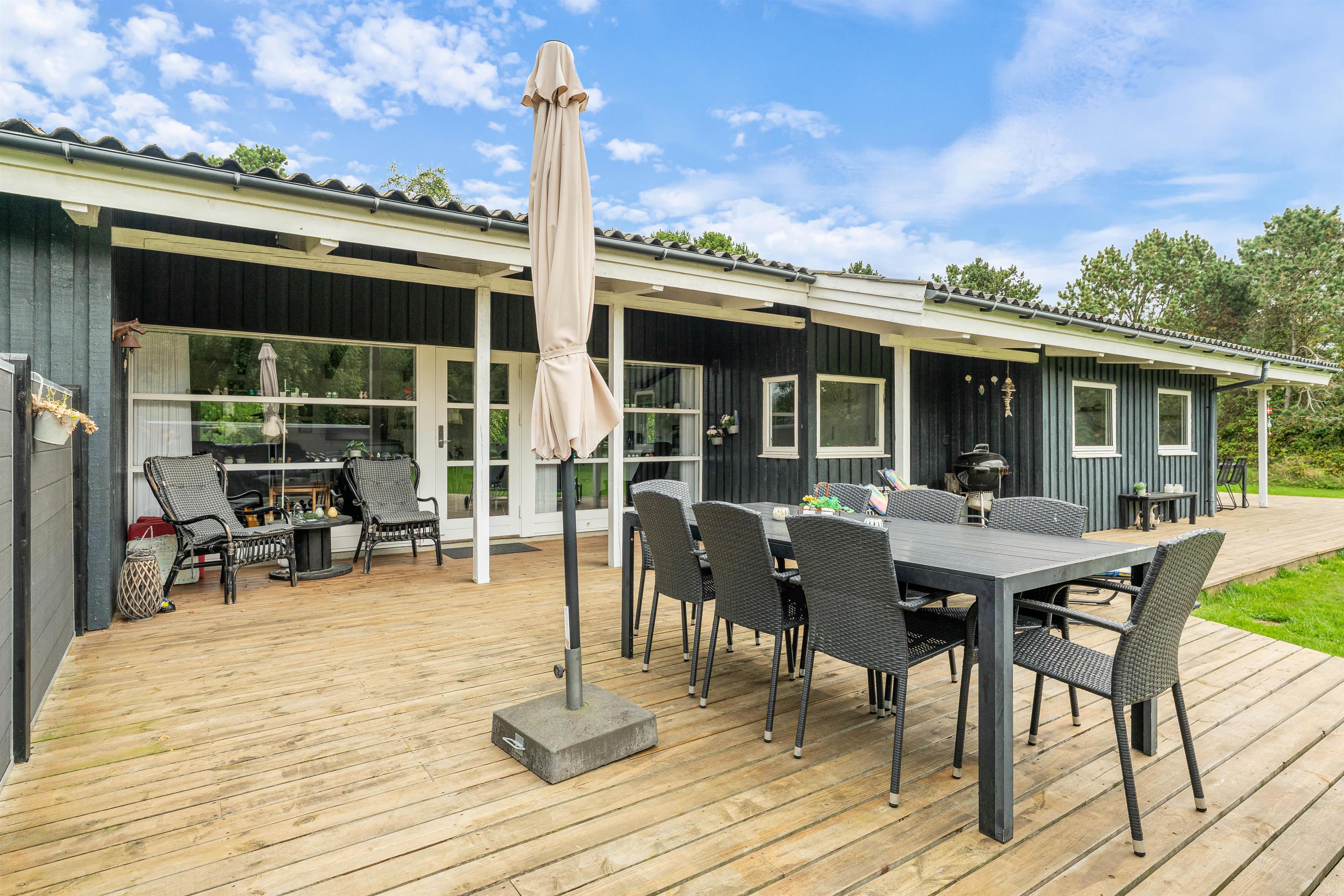 På en stor og velholdt plænegrund i Vejers Strand ligger dette skønne sommerhus og venter på jer. De hyggeligt indrettede omgivelser har plads til 8 personer (og 1 hund!) og er et godt valg til den næste familieferie. Huset har en dejlig stor terrasse med både en overdækket og afskærmet del.