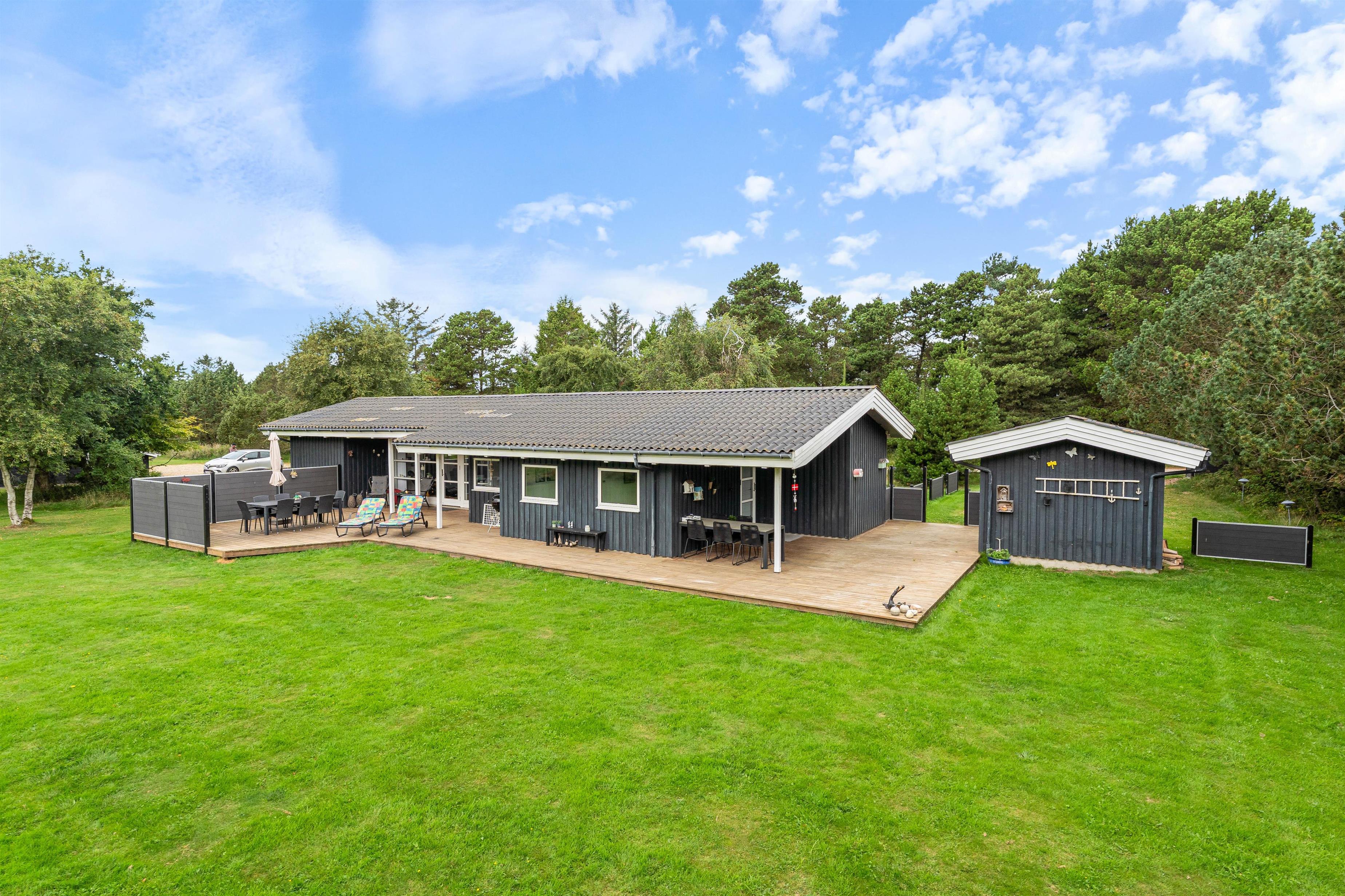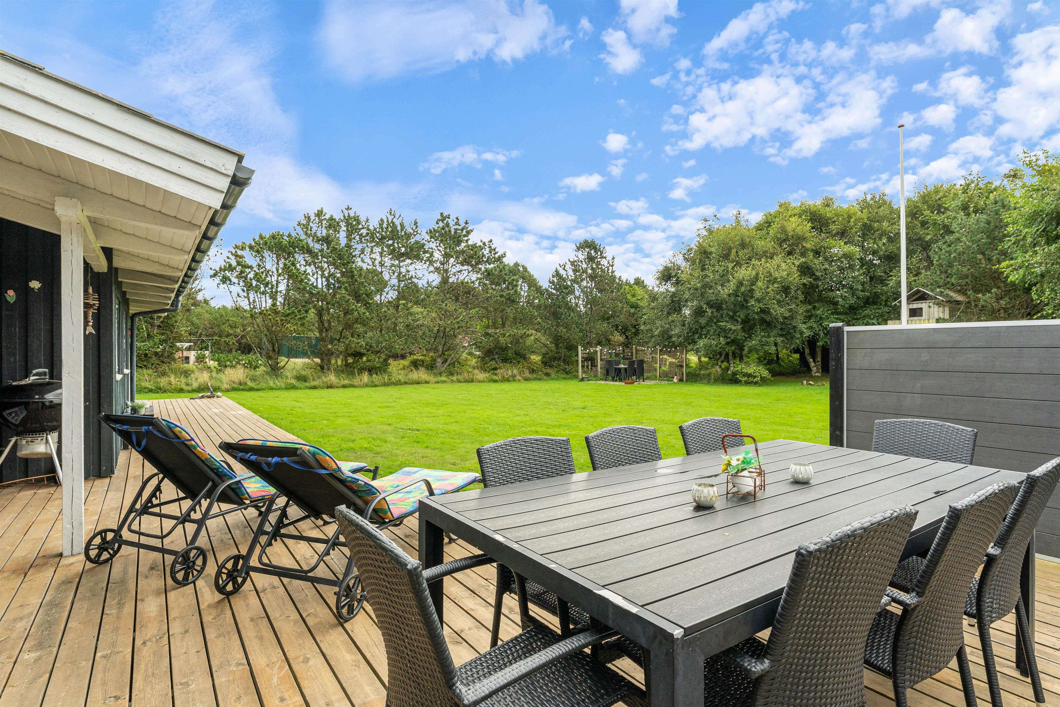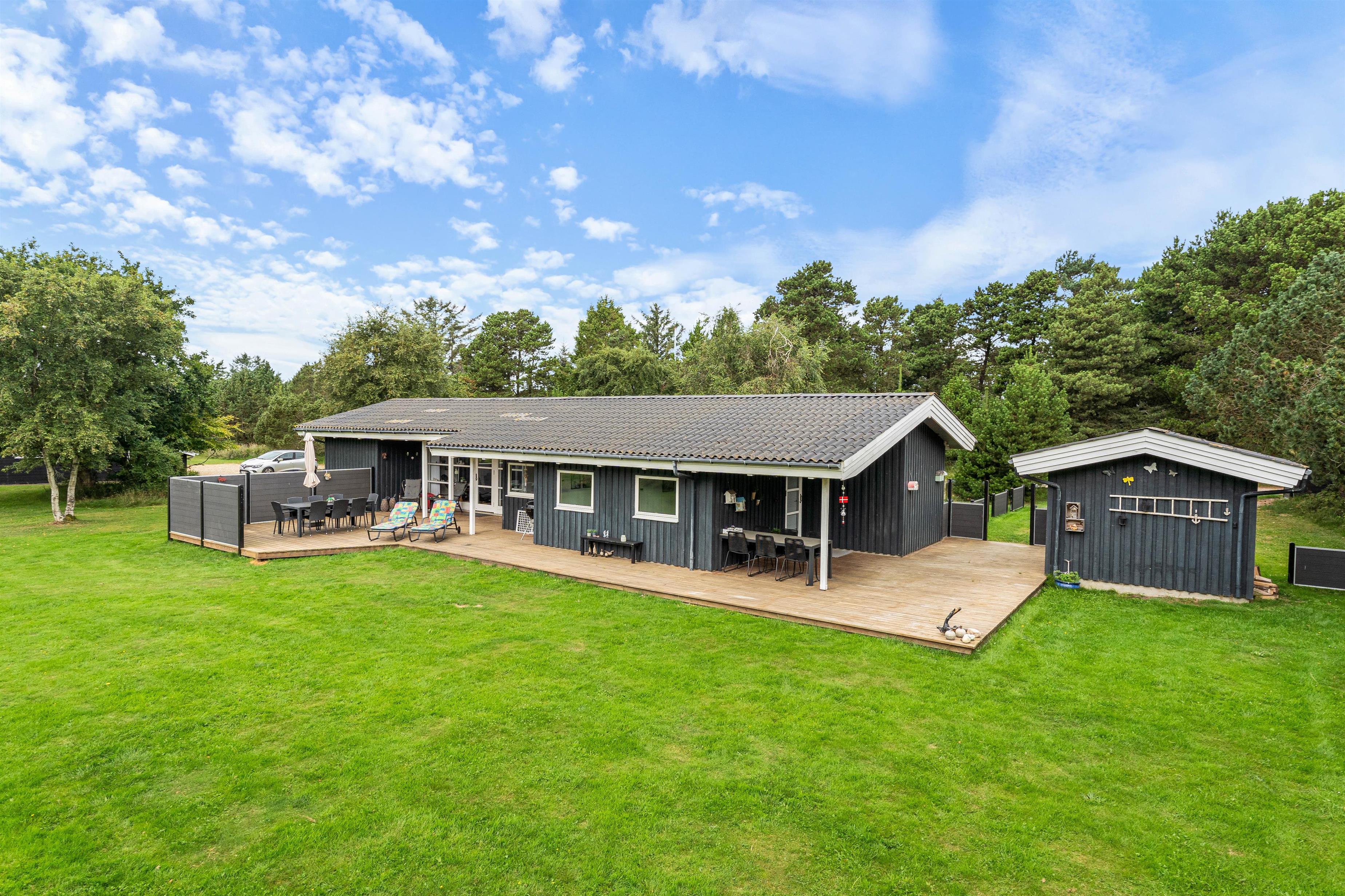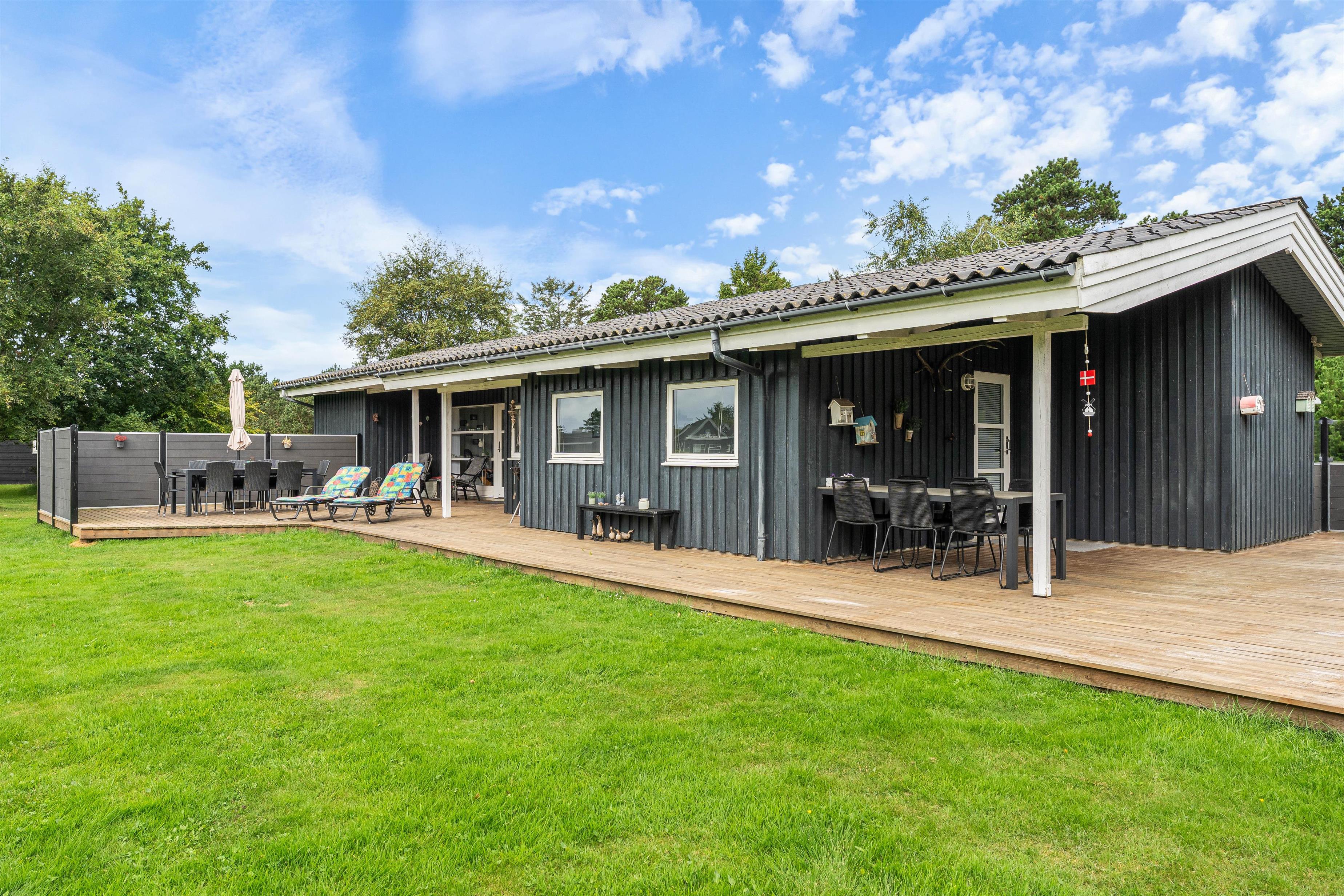 På en stor og velholdt plænegrund i Vejers Strand ligger dette skønne sommerhus og venter på jer. De hyggeligt indrettede omgivelser har plads til 8 personer (og 1 hund!) og er et godt valg til den næste familieferie. Huset har en dejlig stor terrasse med både en overdækket og afskærmet del.