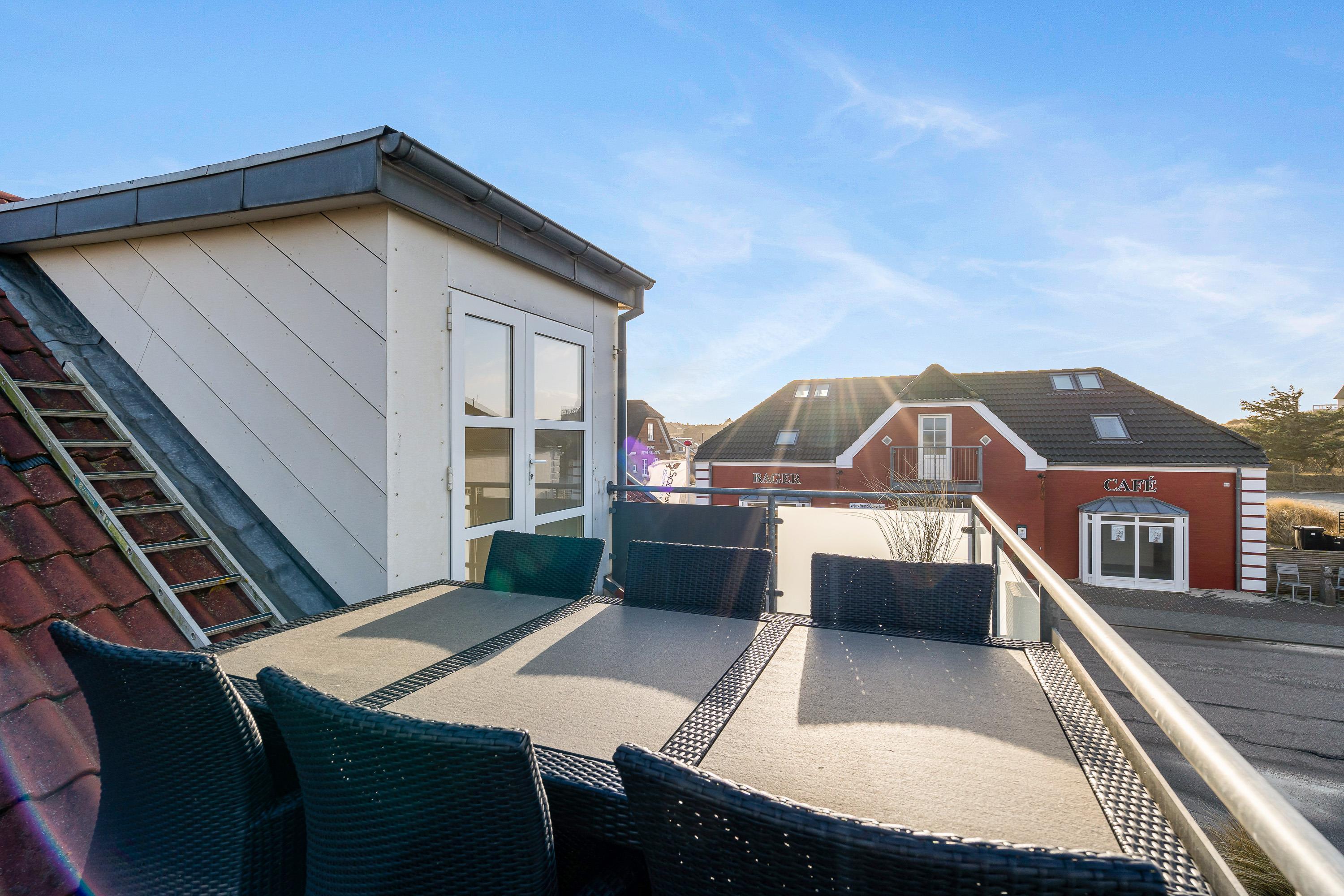 Til ferieboligen har I derudover også en vestvendt terrasse, som I kan træde ud på fra alrummet. Her har I havemøbler til rådighed, så I kan finde jer godt til rette i solen, og om aftenen kan I tænde op i grillen, der også står til jeres rådighed.