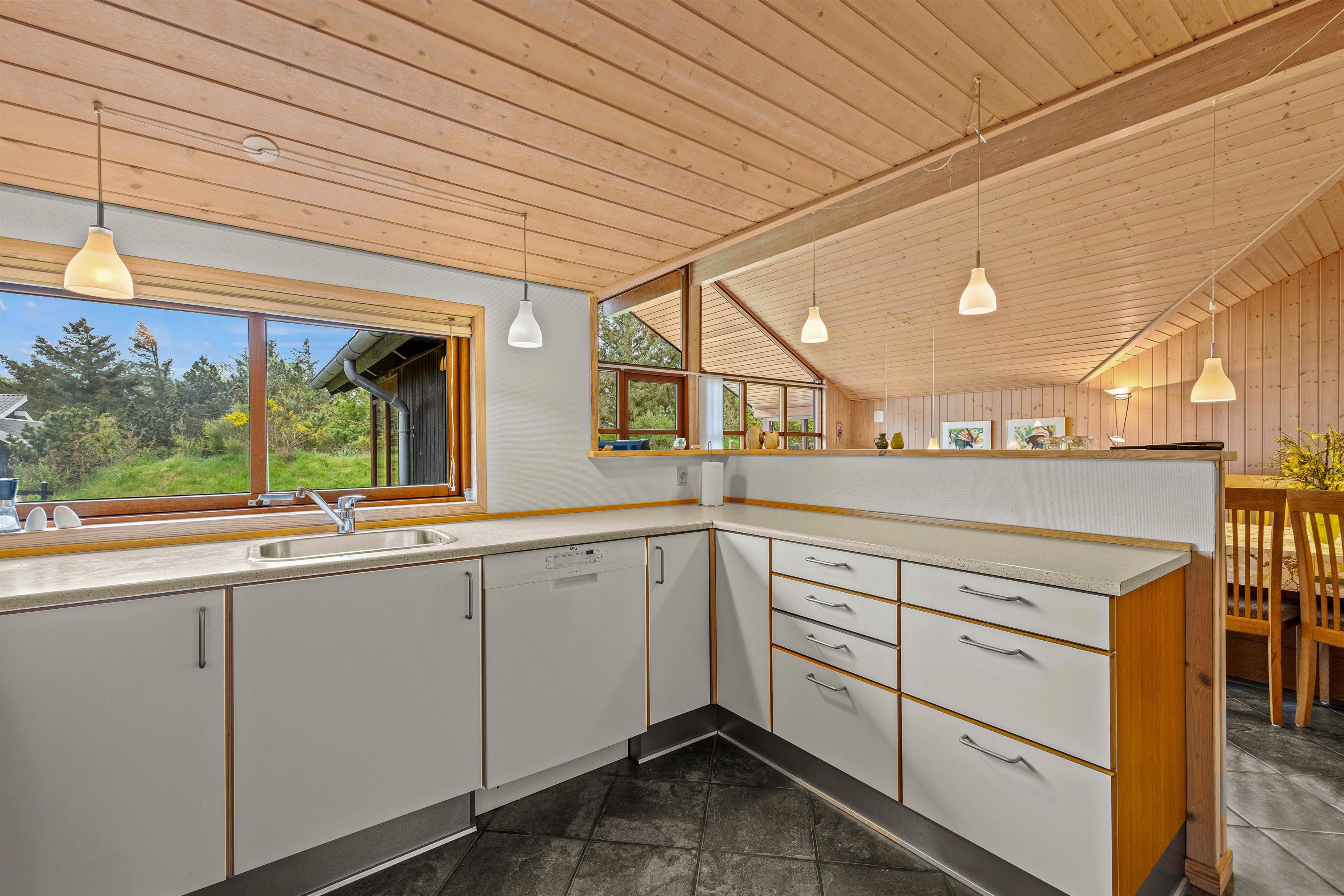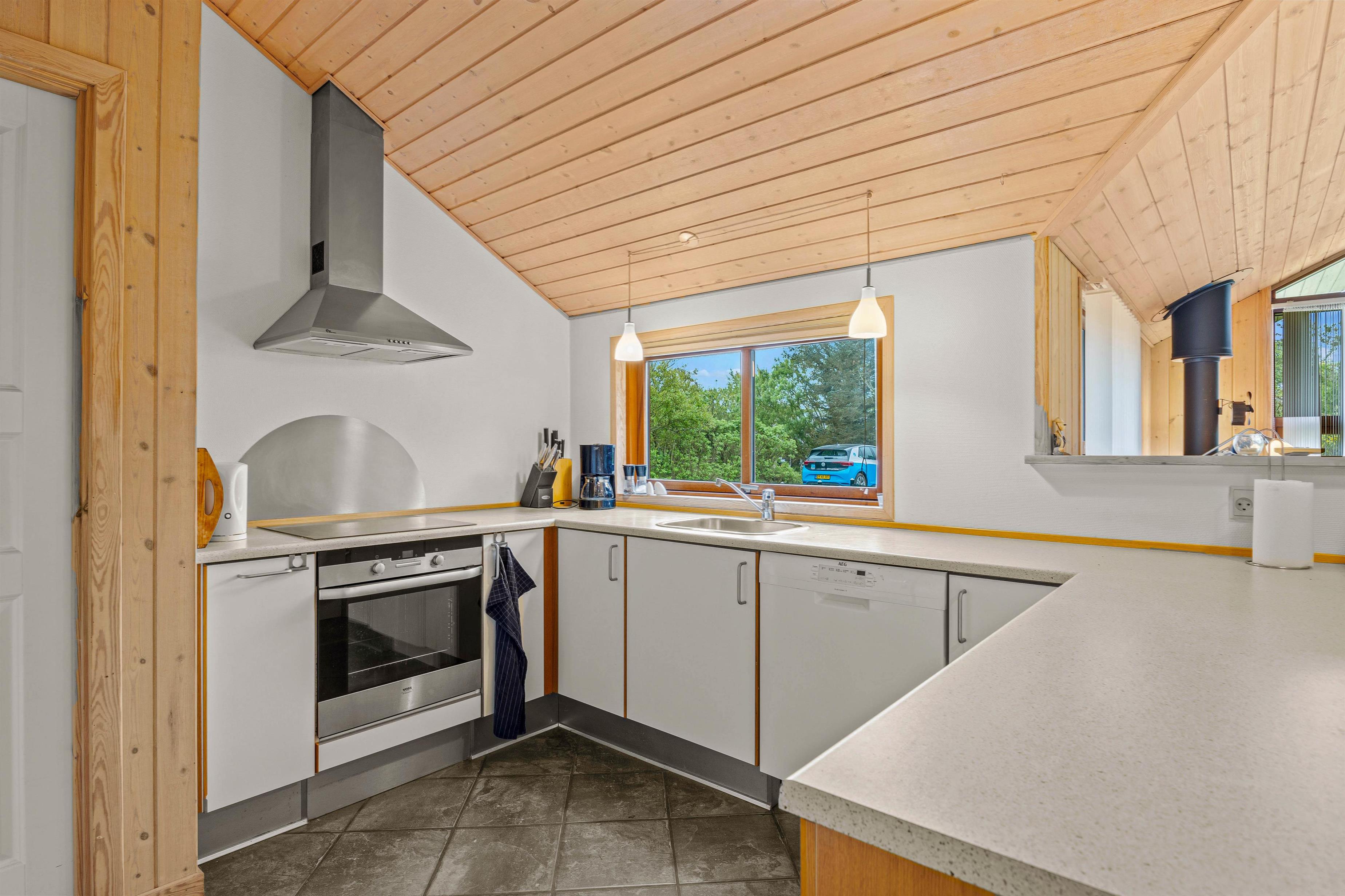 I sommerhuset vil I føle jer hjemme, med det samme I træder ind ad døren. Samlingsrummet er det rummelige alrum, der består af køkken, spiseplads og stue i ét. Her er loft til kip, og det store sydvendte vinduesparti skaber et godt lysindfald til rummet.
