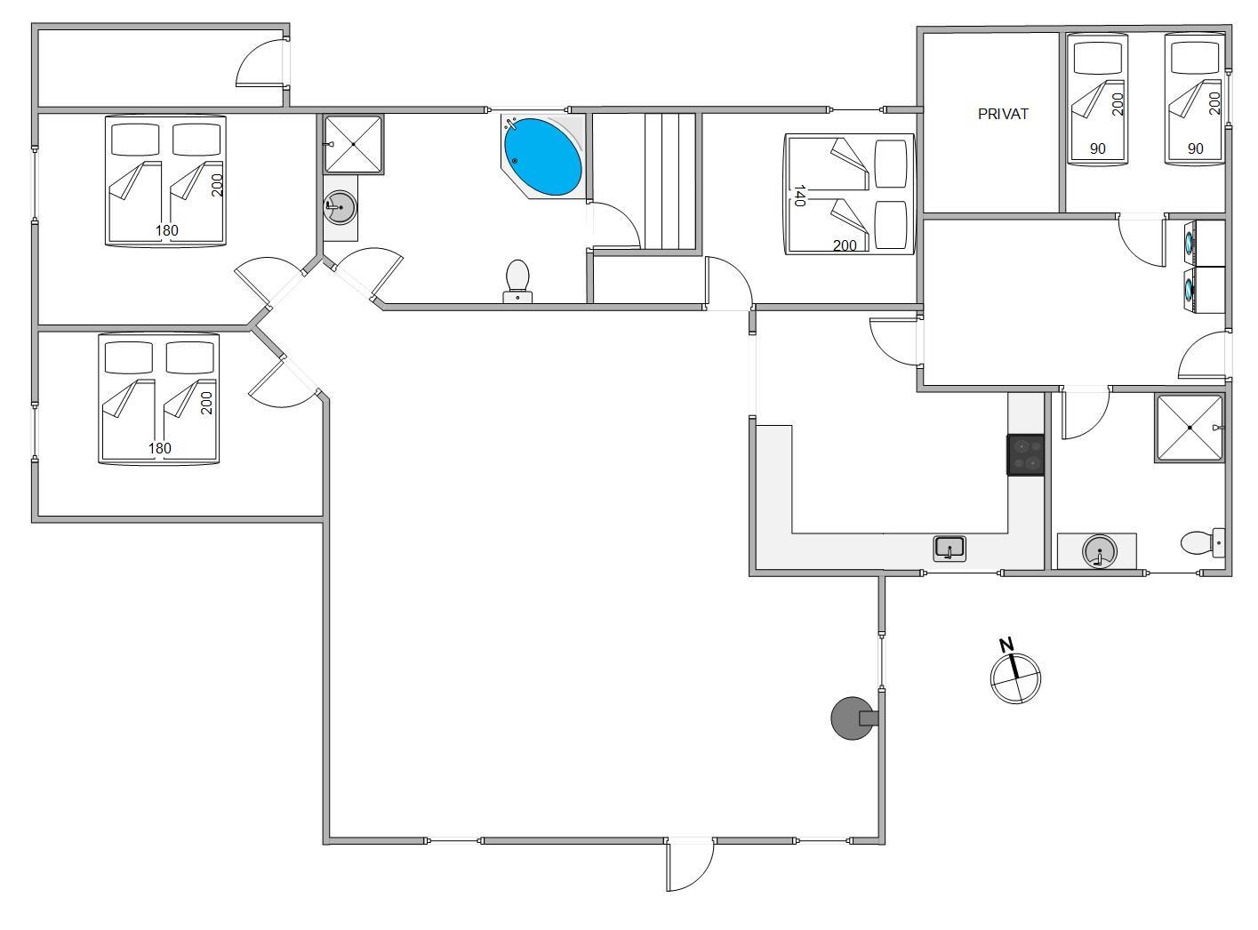 Sommerhuset har 2 badeværelser, der begge er med gulvvarme. Det ene er indrettet med spabad og sauna, så her er der virkelig lagt op til afslapning og velvære. Der findes intet bedre end en tur i det boblende, varme vand efter en frisk gåtur langs Vesterhavet.