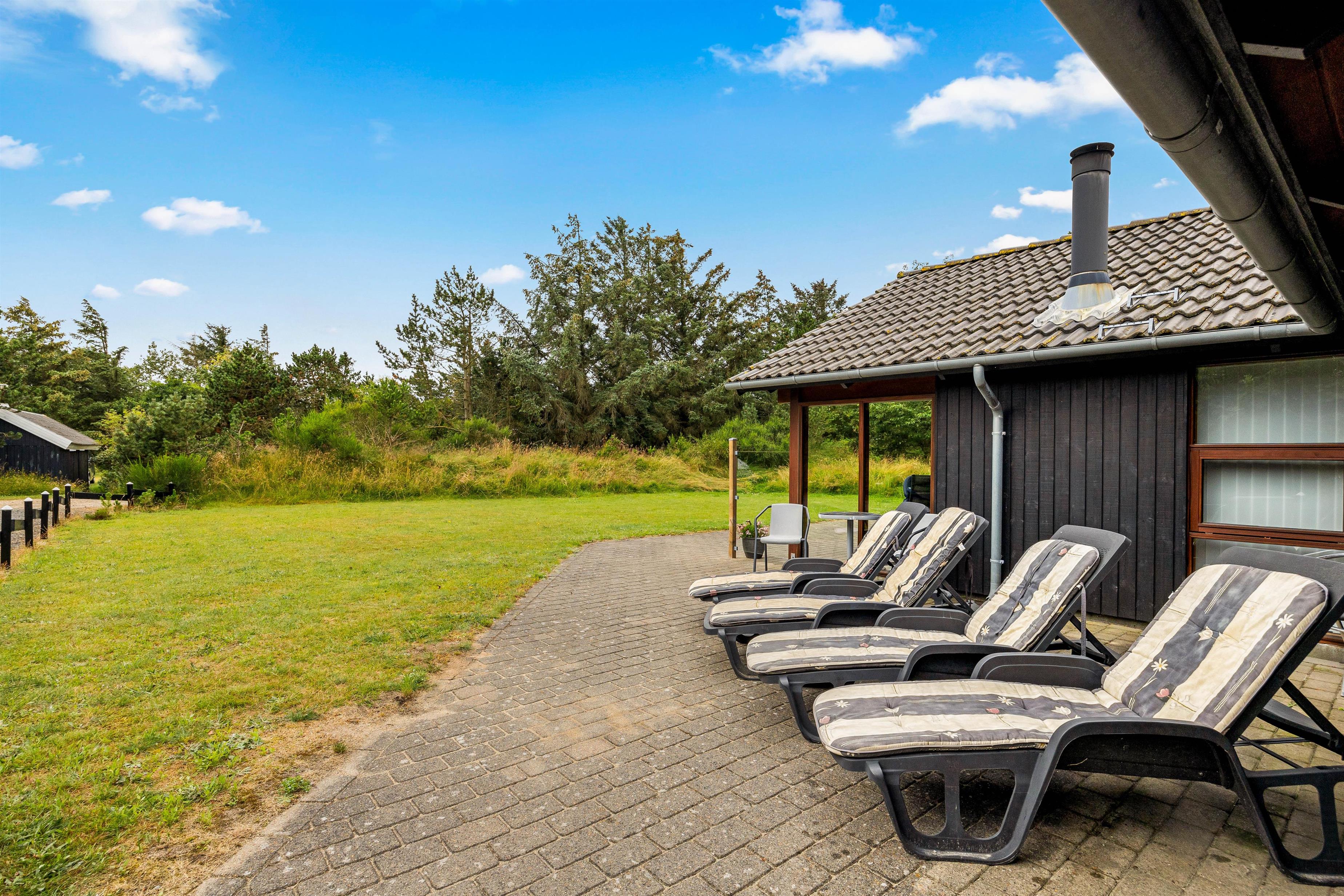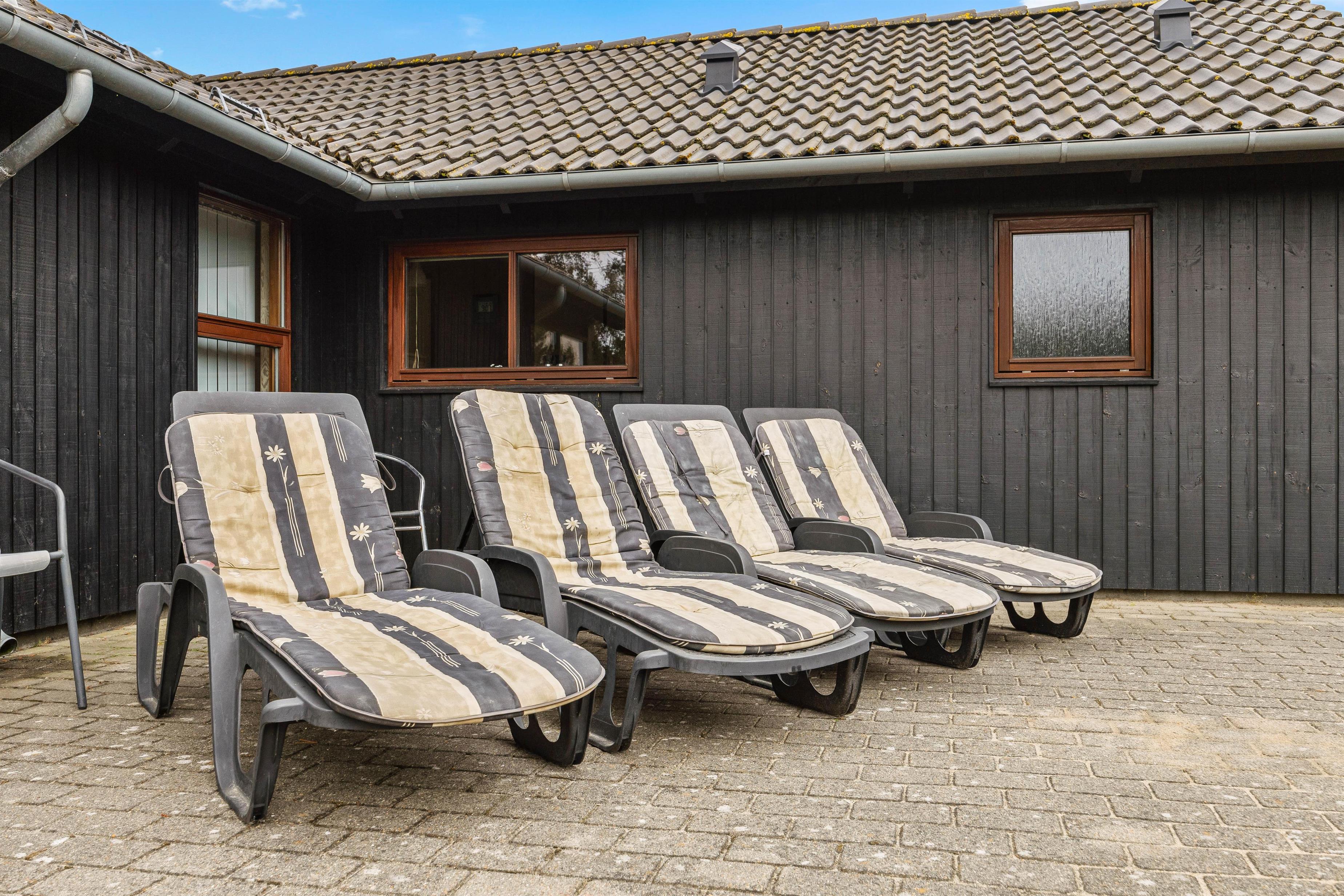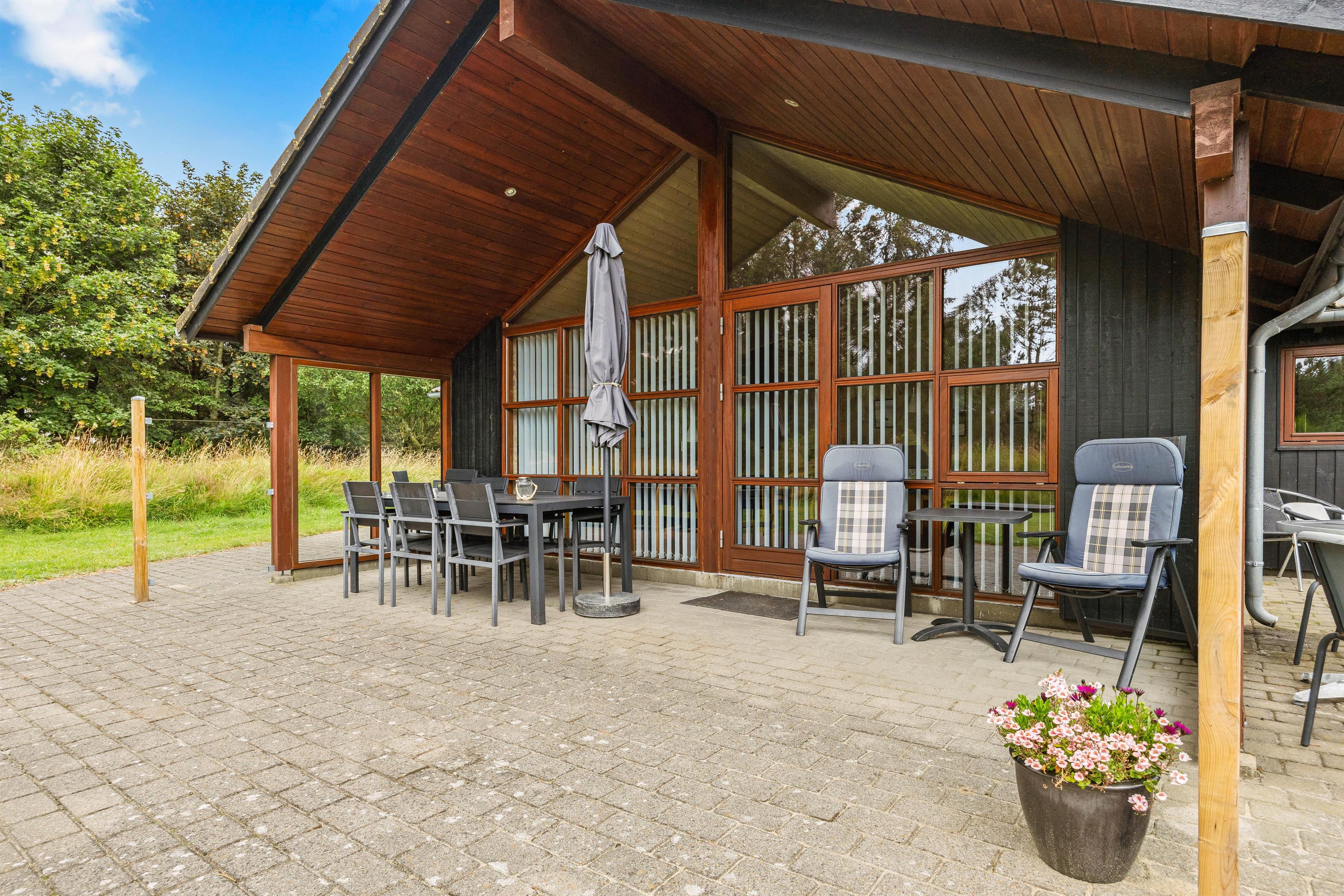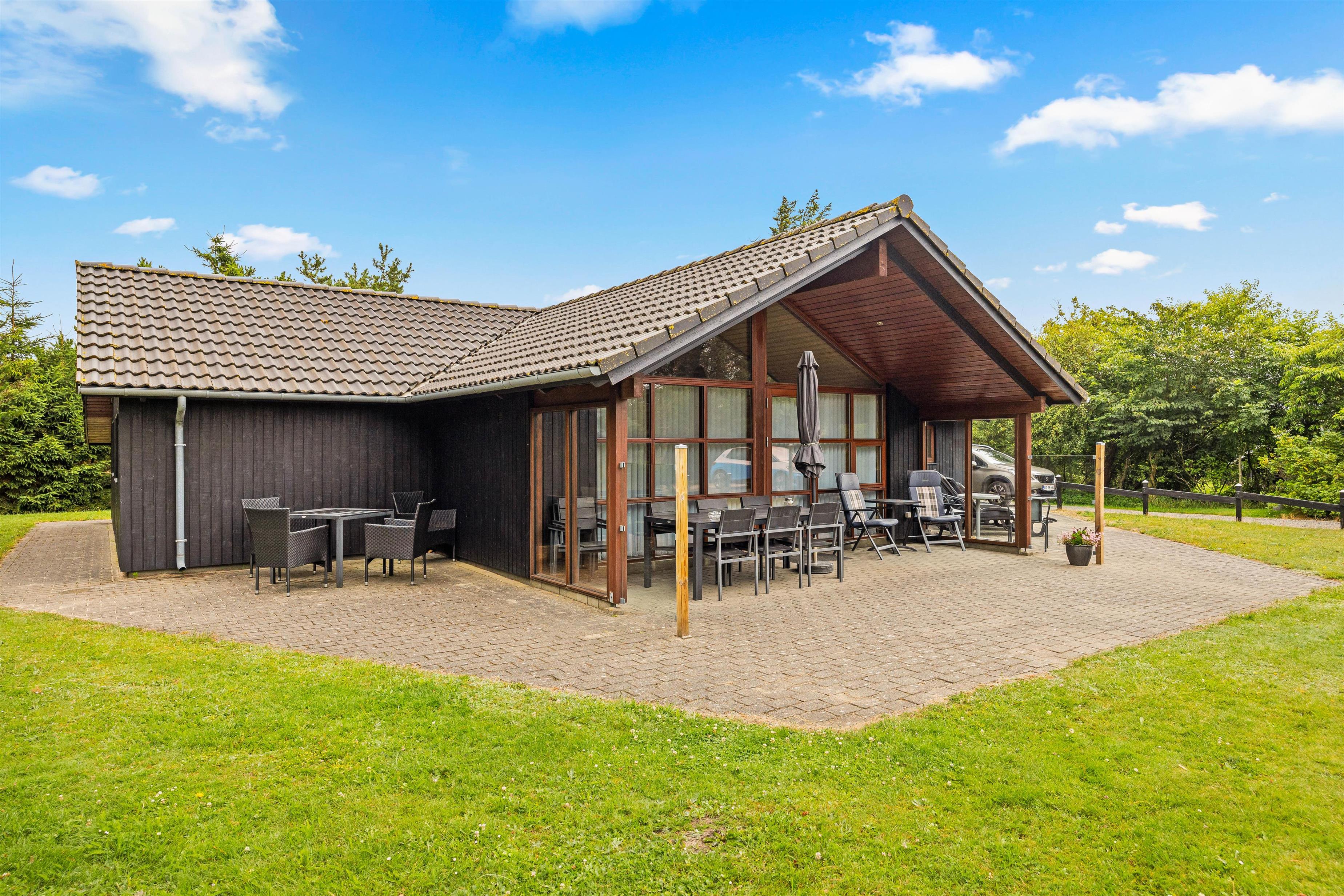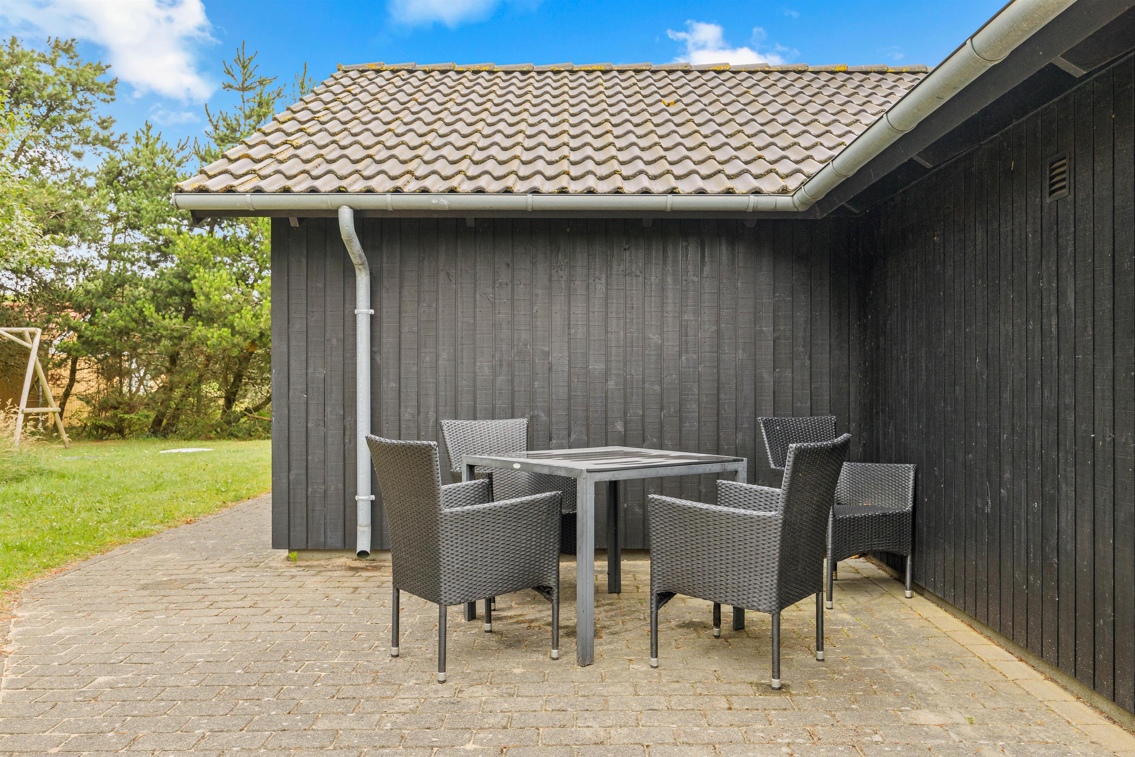 Sommerhusets terrasse er delvist overdækket og indbyder til mange gode stunder med hele familien på de varme sommerdage. På terrassen står havemøbler og liggestole klar til jer. Feriedagen kan afsluttes med en lækker middag tilberedt på sommerhusets grill, der nydes, mens morgendagens ferieaktiviteter planlægges.