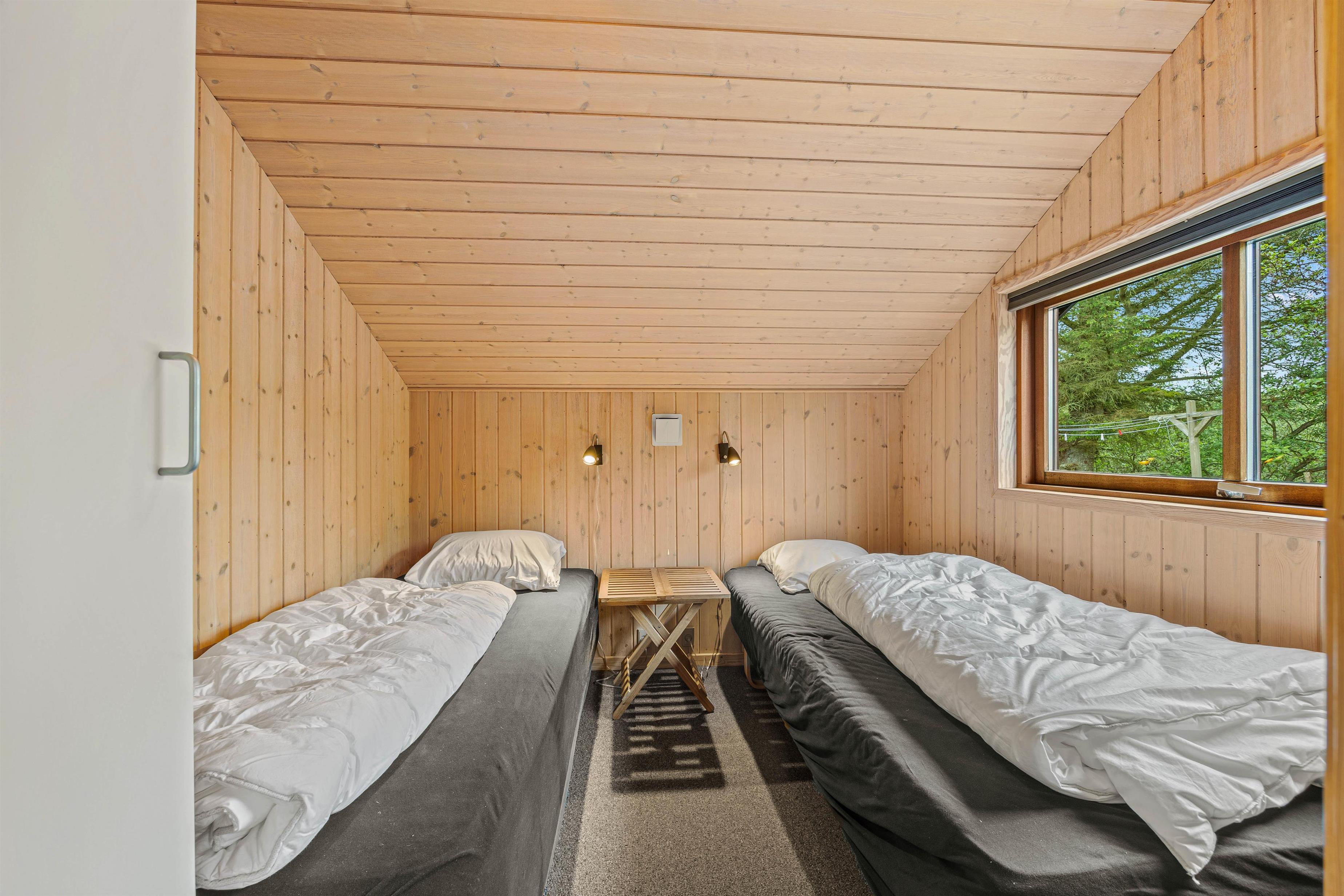 Der er 4 soveværelser i feriehuset. Heraf er der 3 med en dobbeltseng, og på det sidste værelse er der 2 enkeltsenge.
