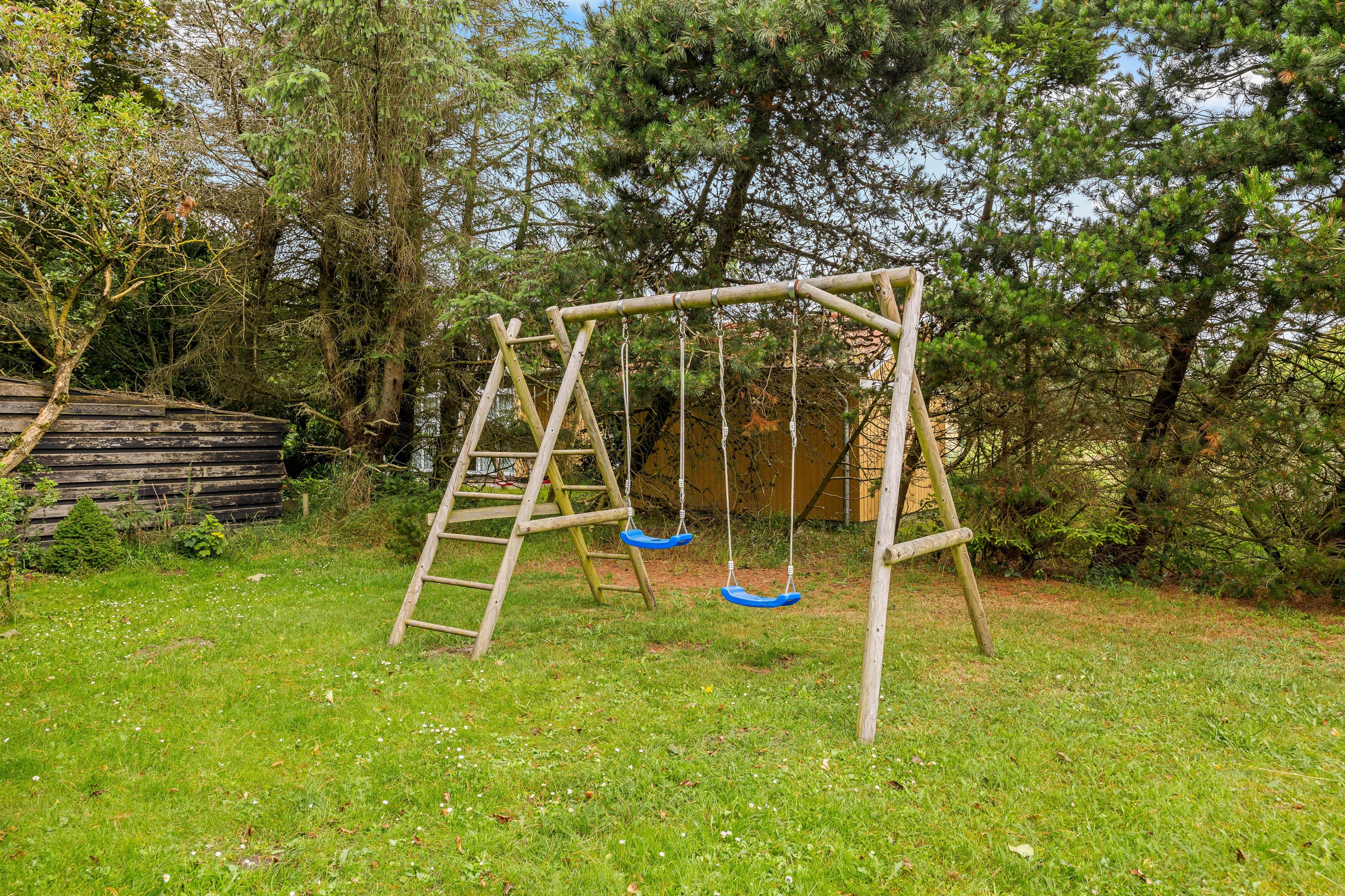 Sommerhuset ligger på en fin plænegrund, hvor børnene har god plads til sjov og leg. Til de yngste er der en sandkasse og et gyngestativ.