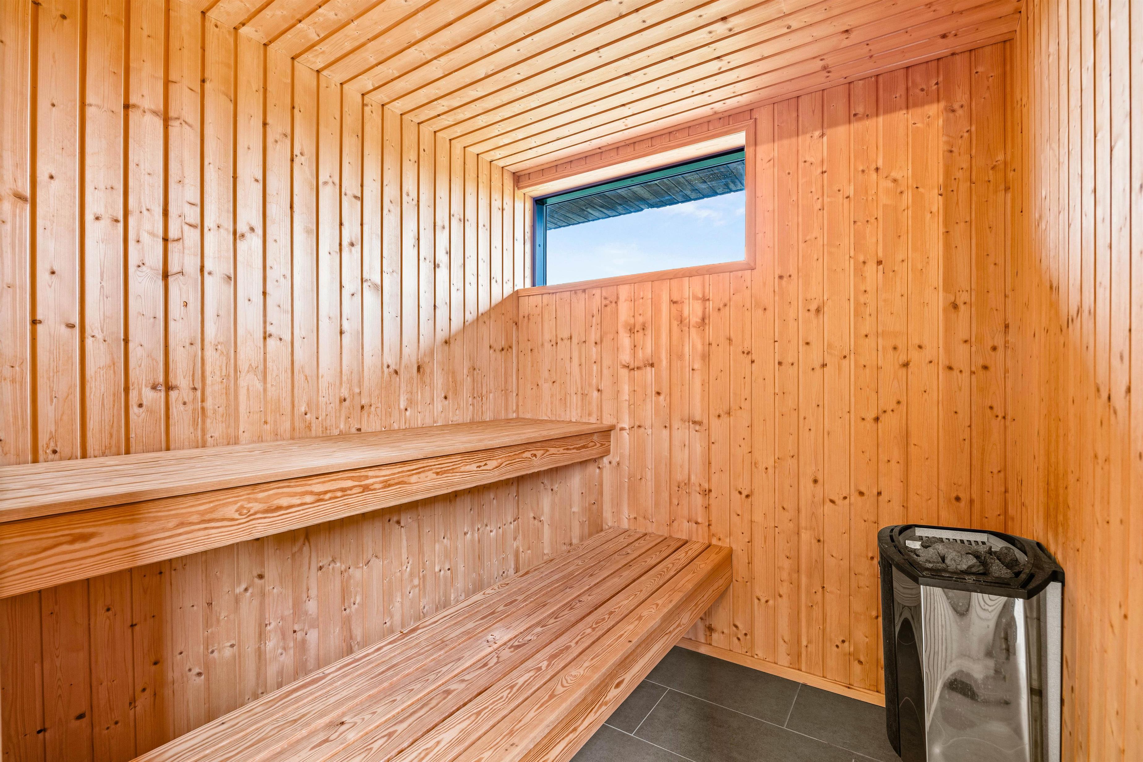 Forkæl jer selv med masser af afslapning under jeres ferie i sommerhusets sauna. Fra det ene af badeværelserne er der adgang saunaen, hvor der altid er garanti for at kunne slappe fuldstændig af i den dejlige varme.