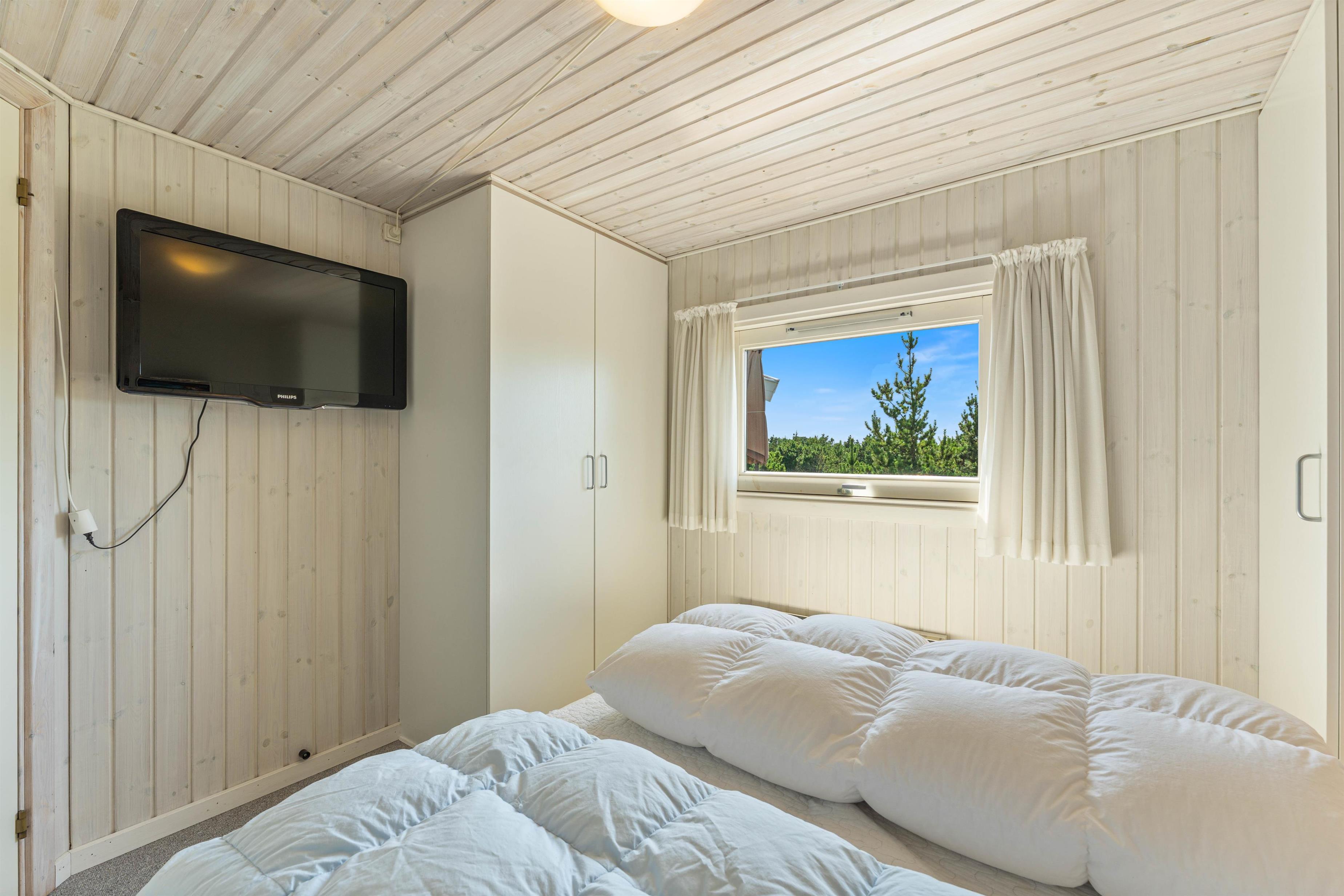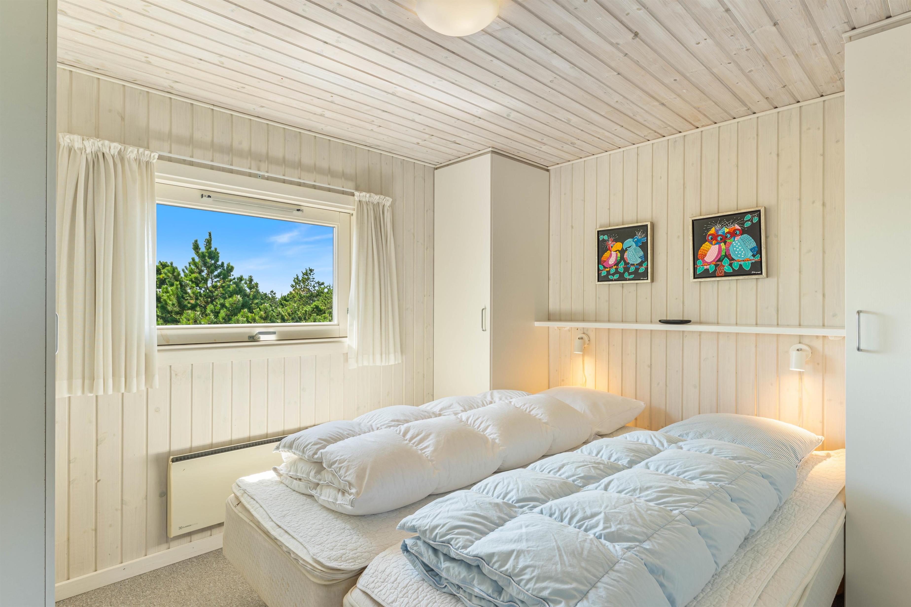 Ophøjet over fyrtræerne i Vejers ligger dette lyse og rummelige sommerhus med plads til 4 personer samt 1 hund. På Rylevej 20A har I en unik 360 graders udsigt både inde fra huset og ude fra den store rummelige terrasse. Med både badeværelse og gæstetoilet, vaskemaskine, tørretumbler og et stort lyst køkken har I her de perfekte rammer til en dejlig ferie ved Vesterhavet. Hunden er også hjerteligt velkommen her.