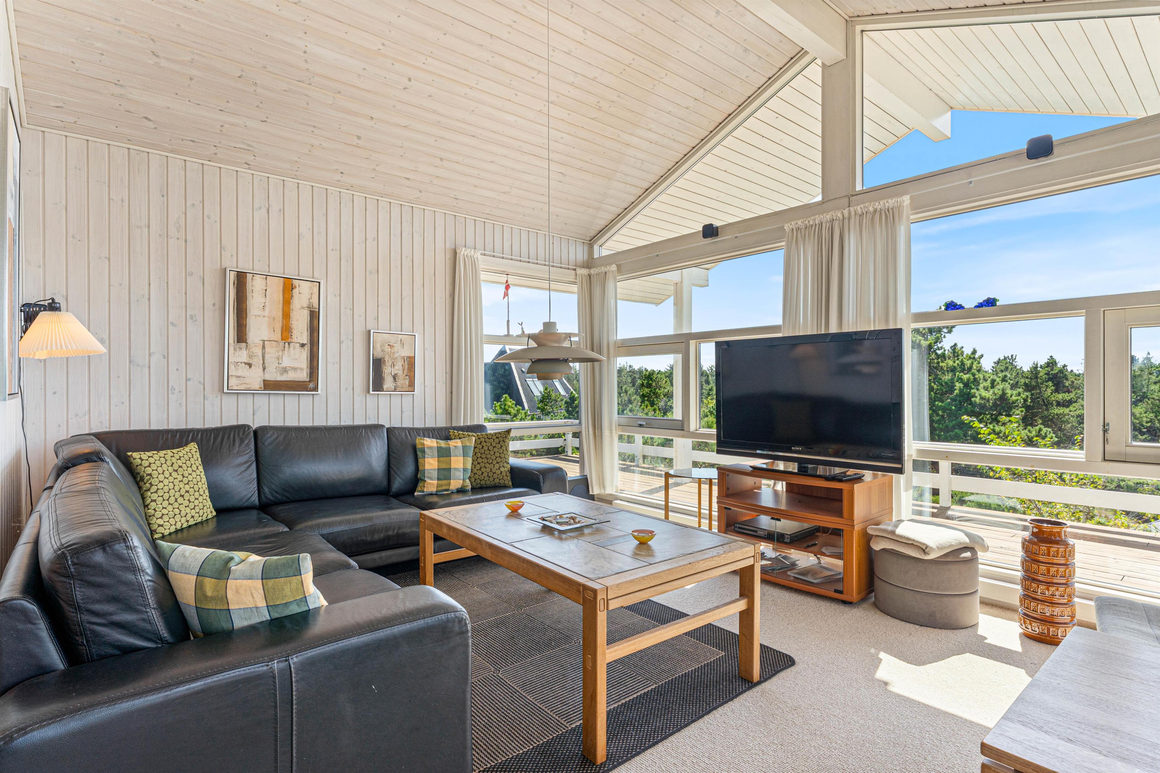 Indenfor venter jer et sommerhus med et fantastisk lysindfald og udsigt til alle sider. Fra den magelige hjørnesofa kan I nyde himlens mange forskellige farver og stemninger hen over dagen. Stuen er åben til det store lyse køkken med opvaskemaskine og to køleskab med i alt 120 liter fryser. Alt dette indbyder til fællesskab omkring tilberedningen af lækre måltider, der efterfølgende kan nydes rundt om spisebordet eller på terrassen i solnedgangens skær.
