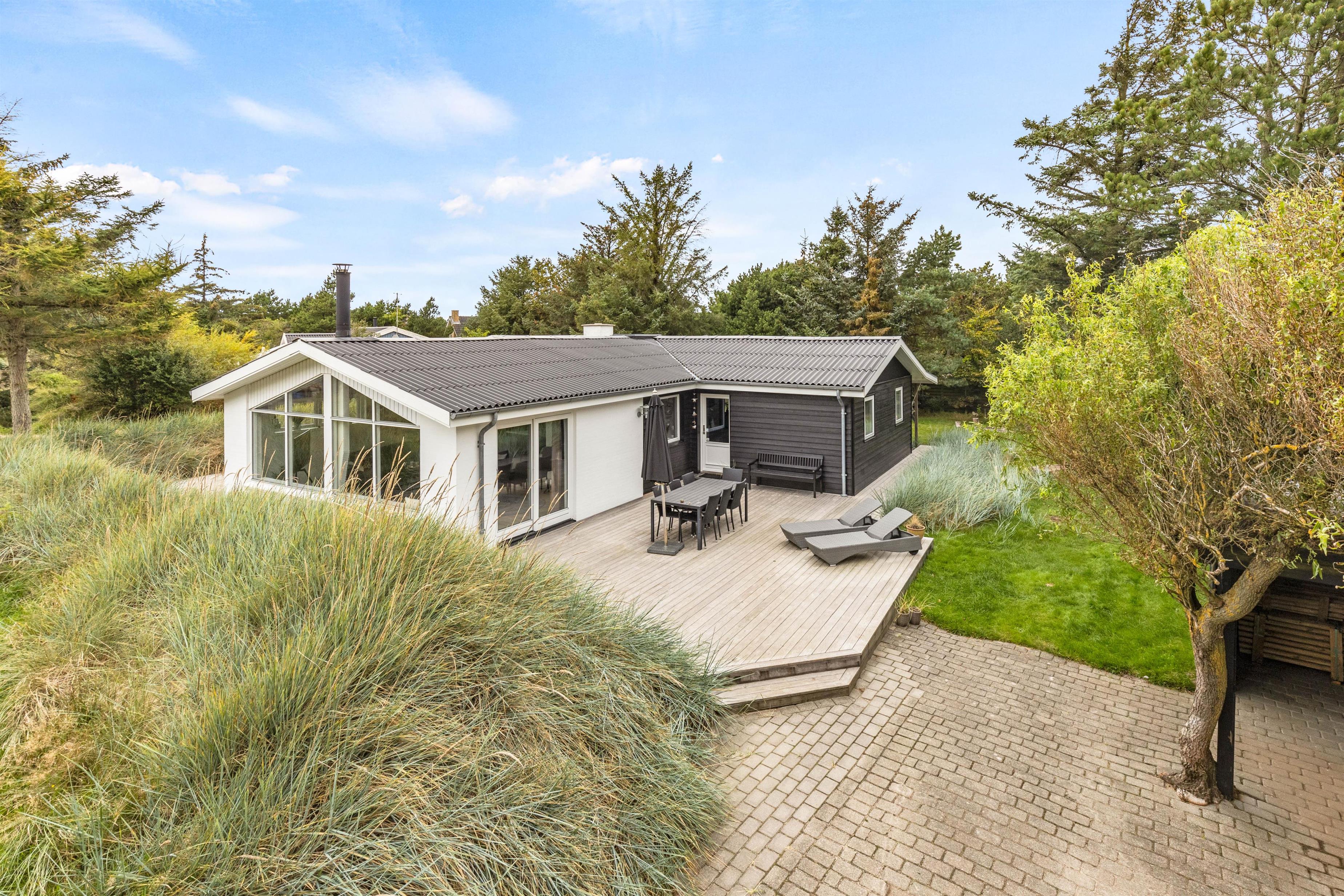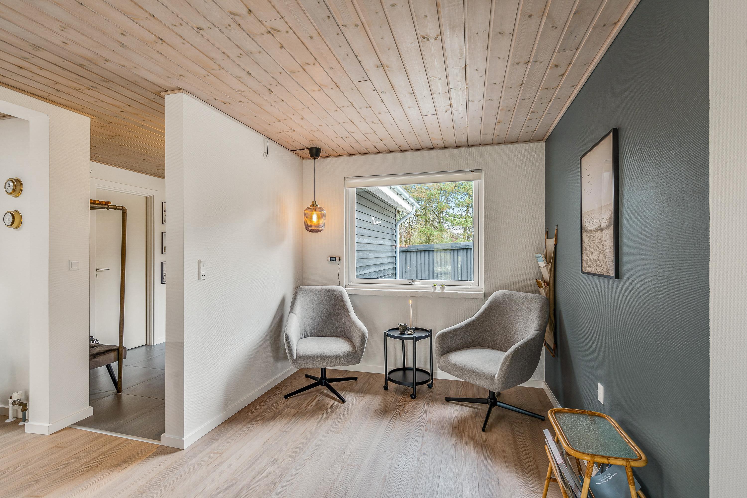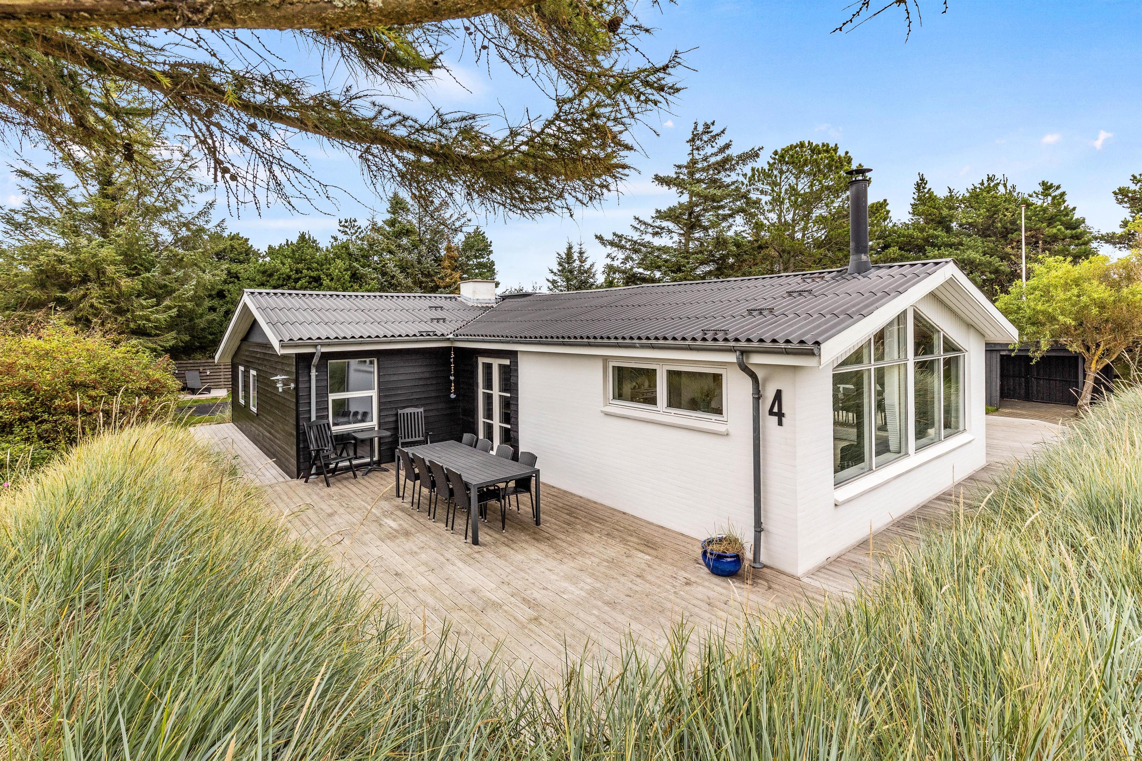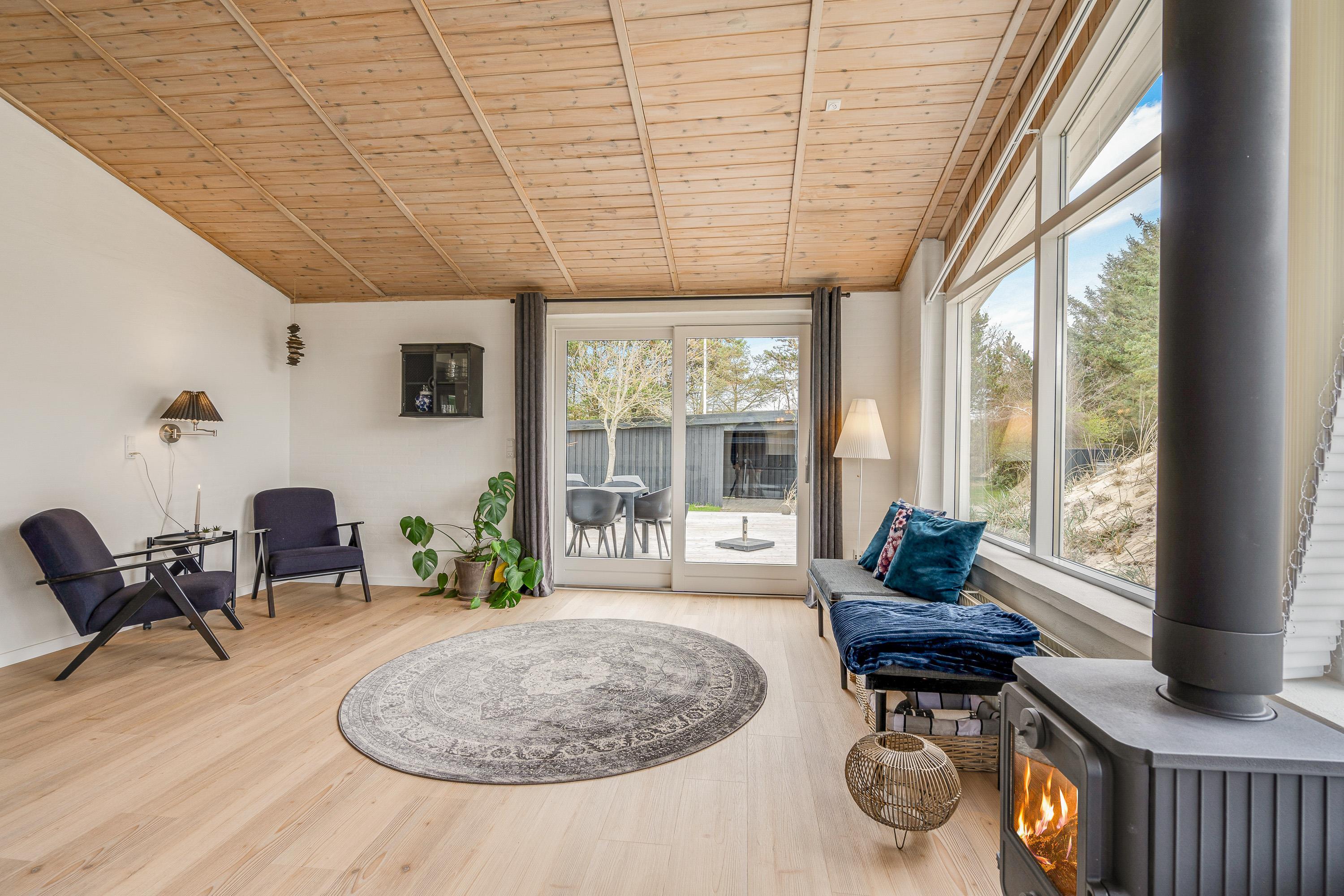 I det firestjernede sommerhus på Mosevej 4 i Vejers, der er renoveret i 2021, vil I opleve en lys og moderne indretning, der sammen med det skønne lysindfald skaber en helt fantastisk ferieatmosfære i sommerhuset.