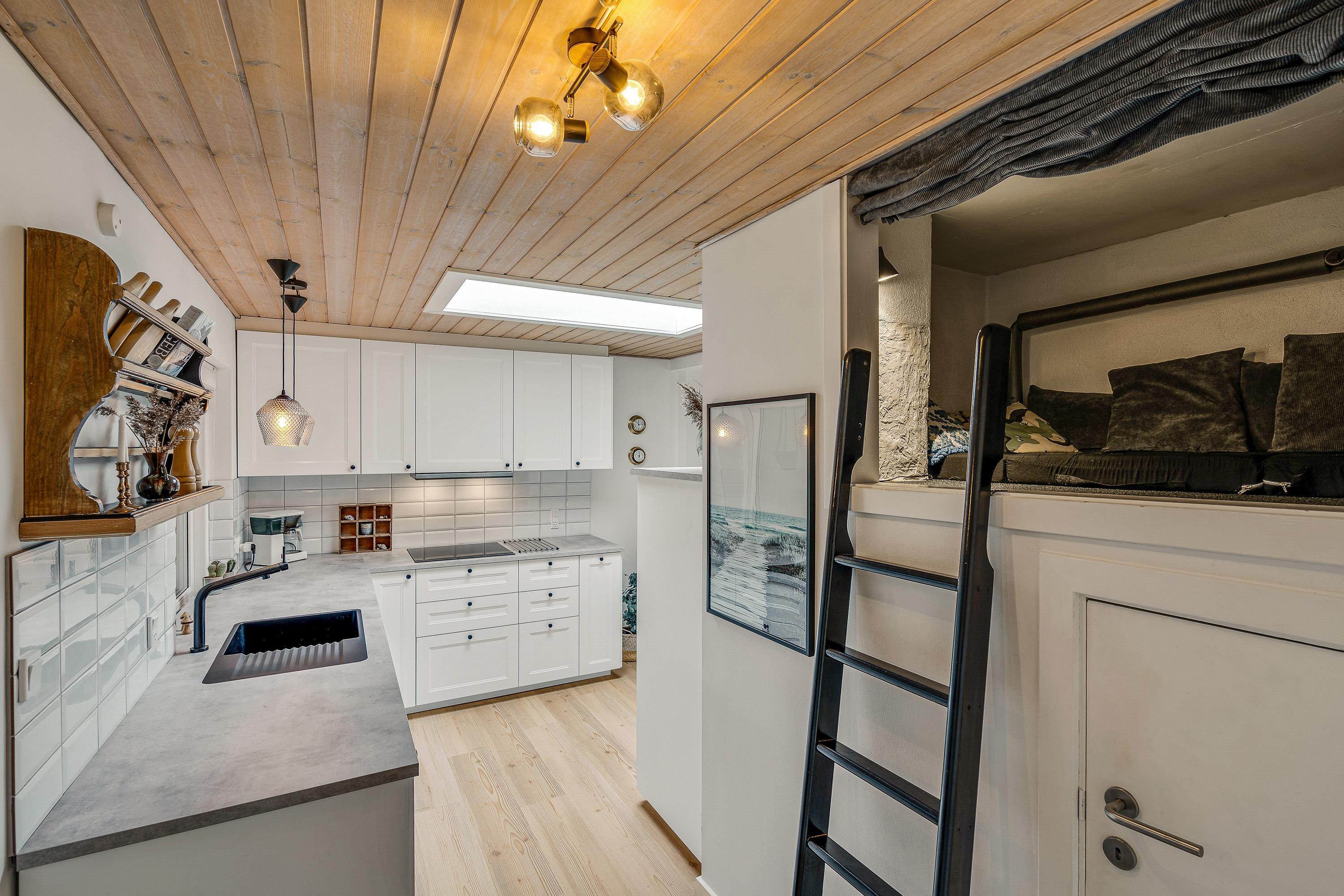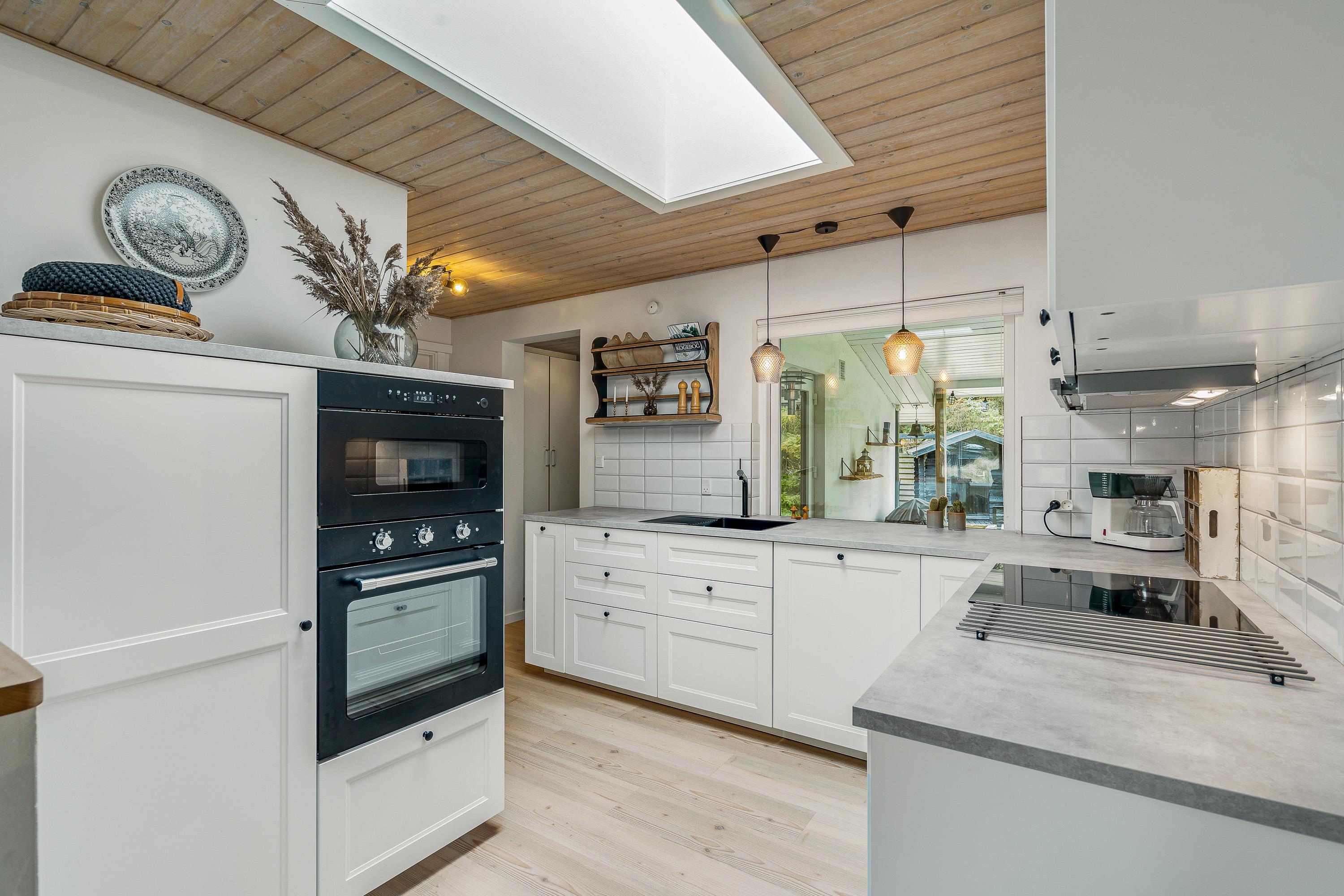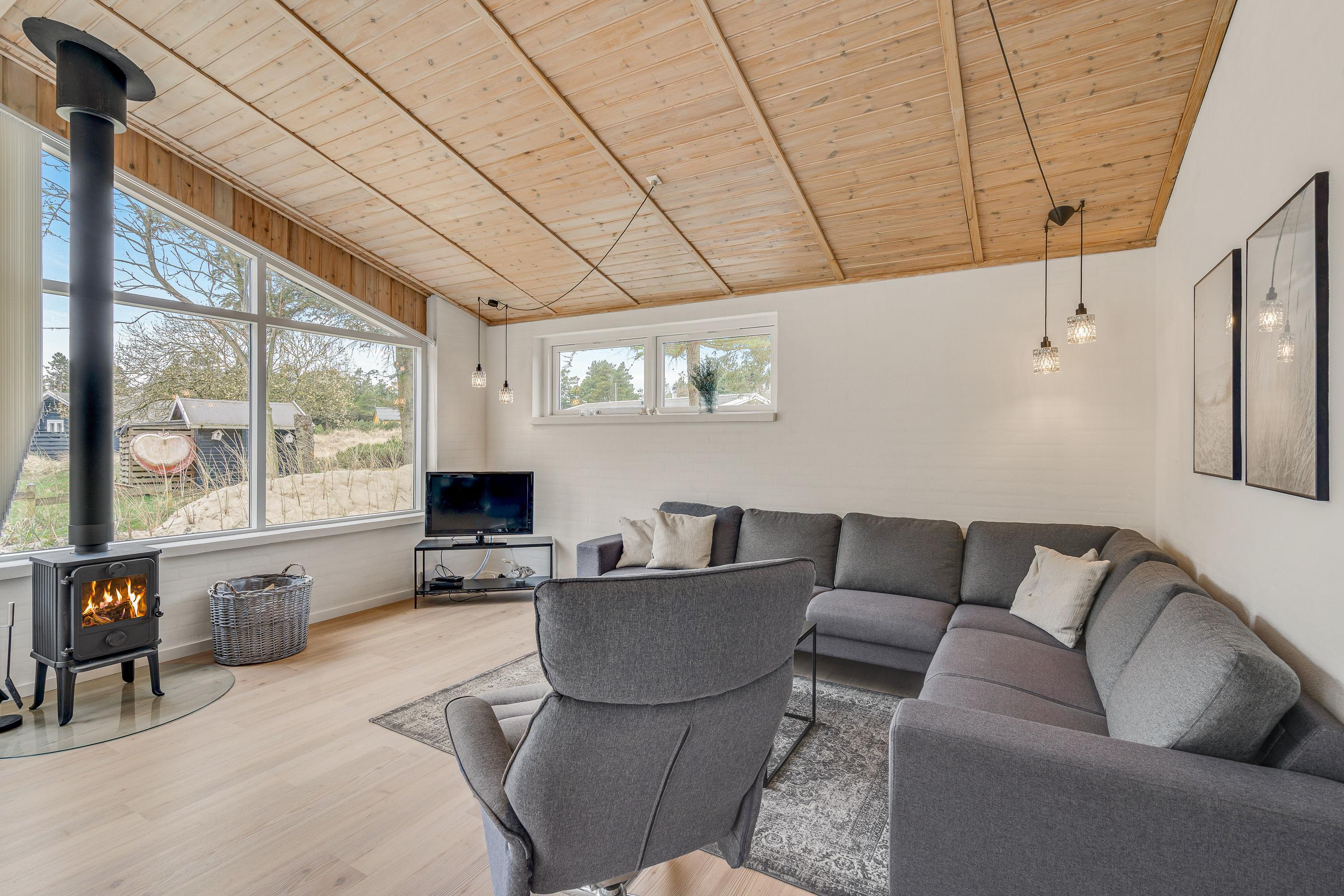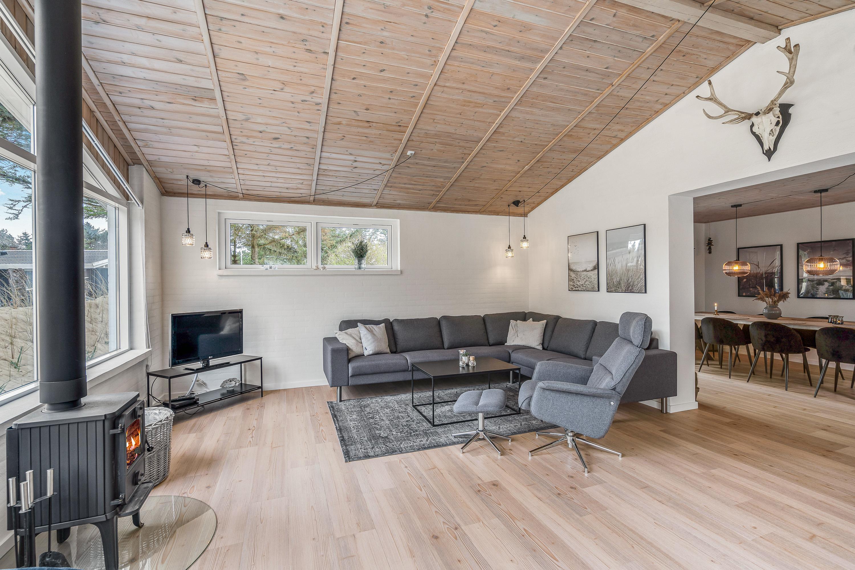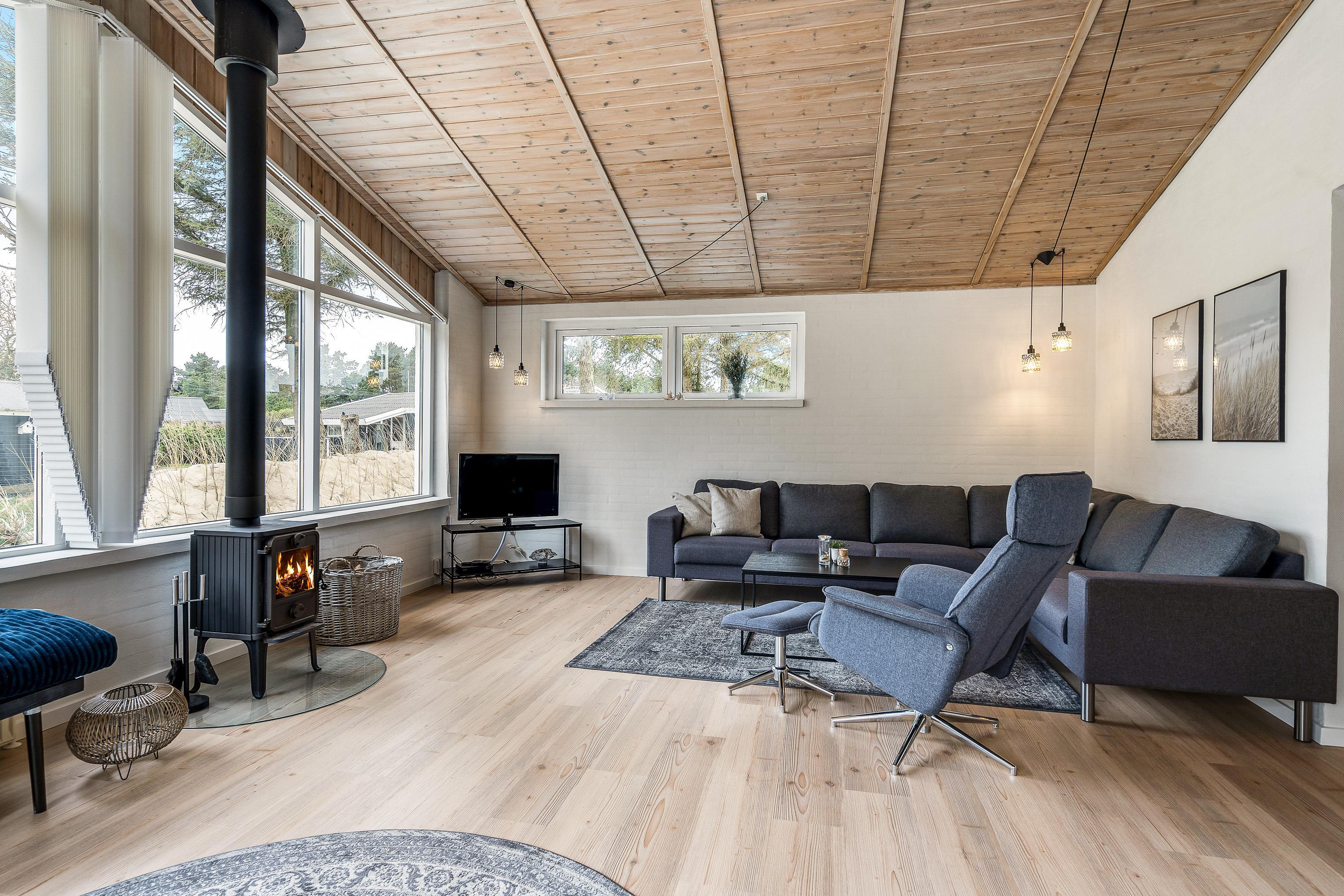 Hjertet i feriehuset er alrummet, hvor I har åben forbindelse mellem køkken, stue og spisestue. Dermed har I rig mulighed for at nyde hinandens selskab, selvom nogle ser film i stuen, mens andre laver mad i køkkenet. Mens I tilbringer tid i alrummet, sørger brændeovnen for, at feriestemningen er helt i top.
