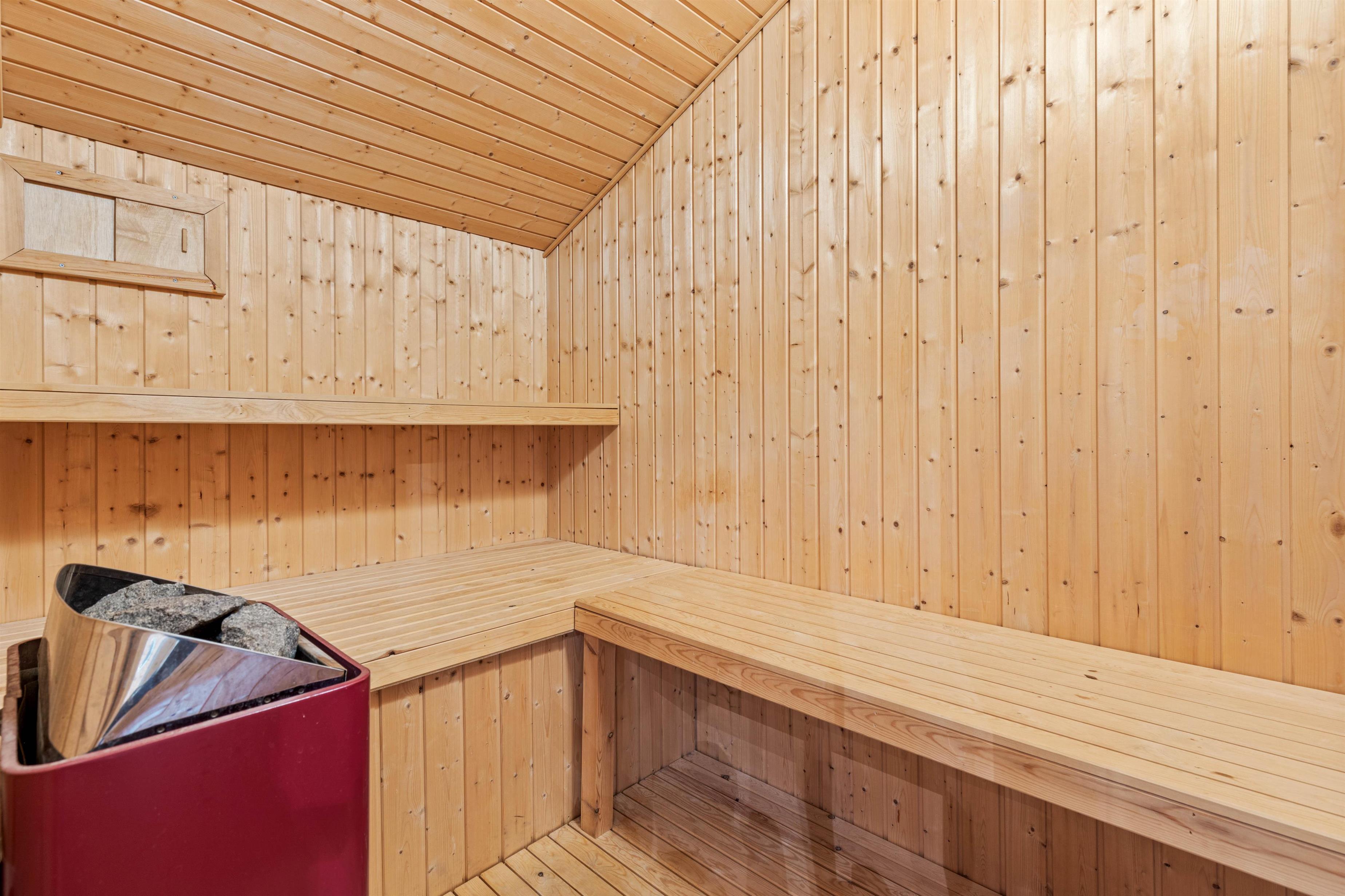 De 2 badeværelser har begge gulvvarme, og i det ene har I en skøn wellnessafdeling. Et afslappende bad i spaen, efterfulgt af en tur i saunaen, er den perfekte måde at blive varmet godt igennem efter en dag i den friske vesterhavsluft, – det er afslapning pur. Efter jeres egen lille wellness-kur, kan I tænde op i brændeovnen og lade dagen klinge ud med den hyggelige varme.
