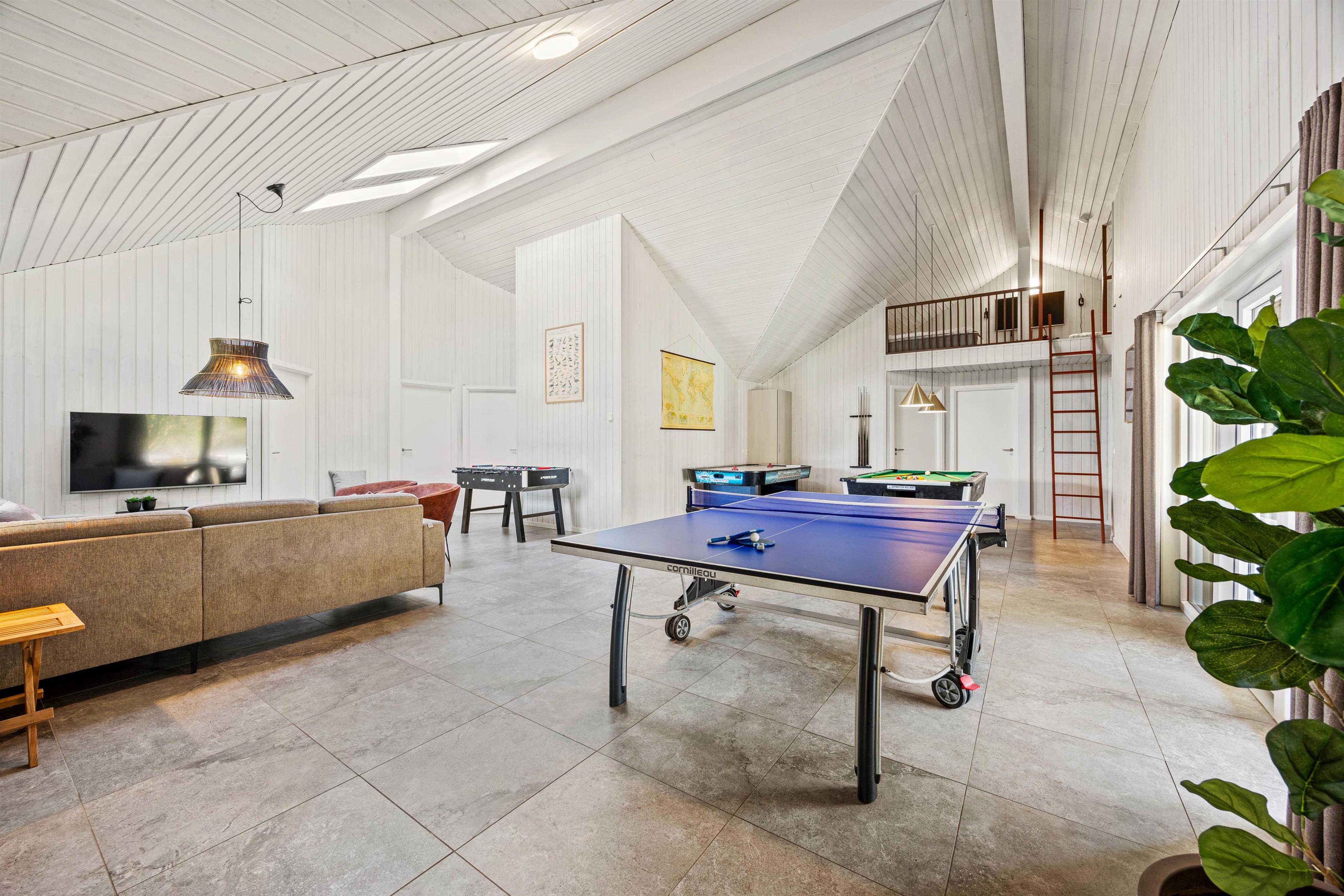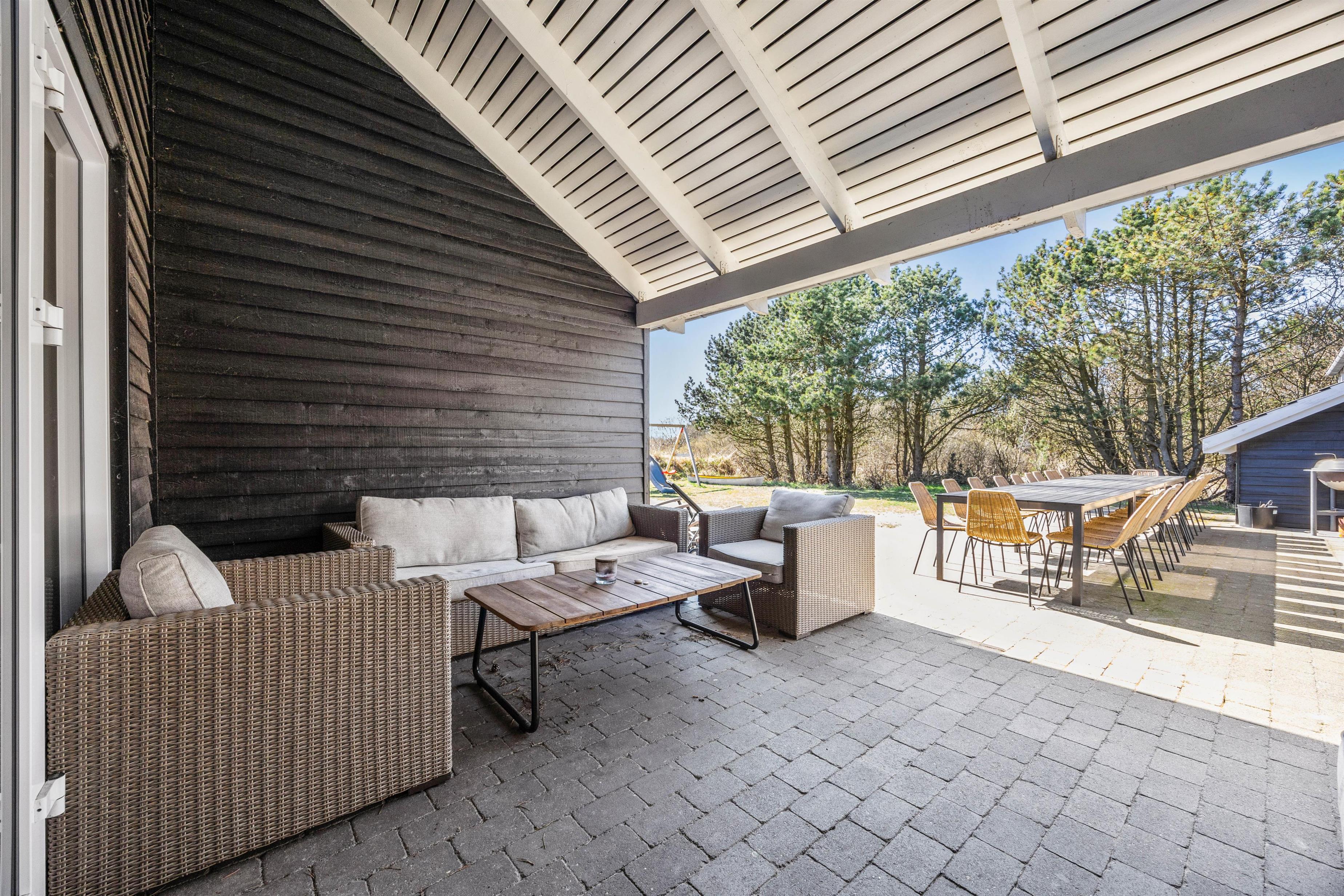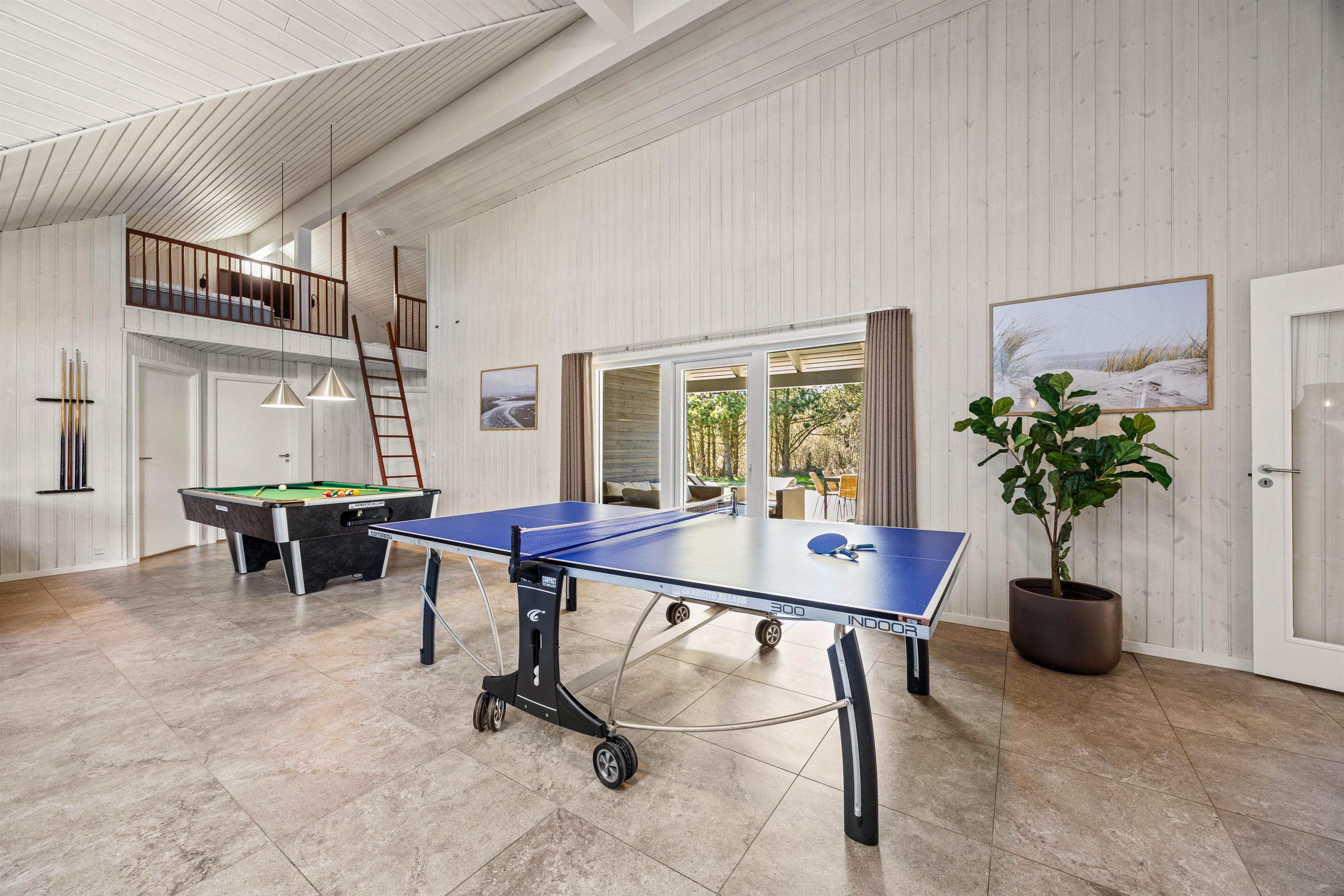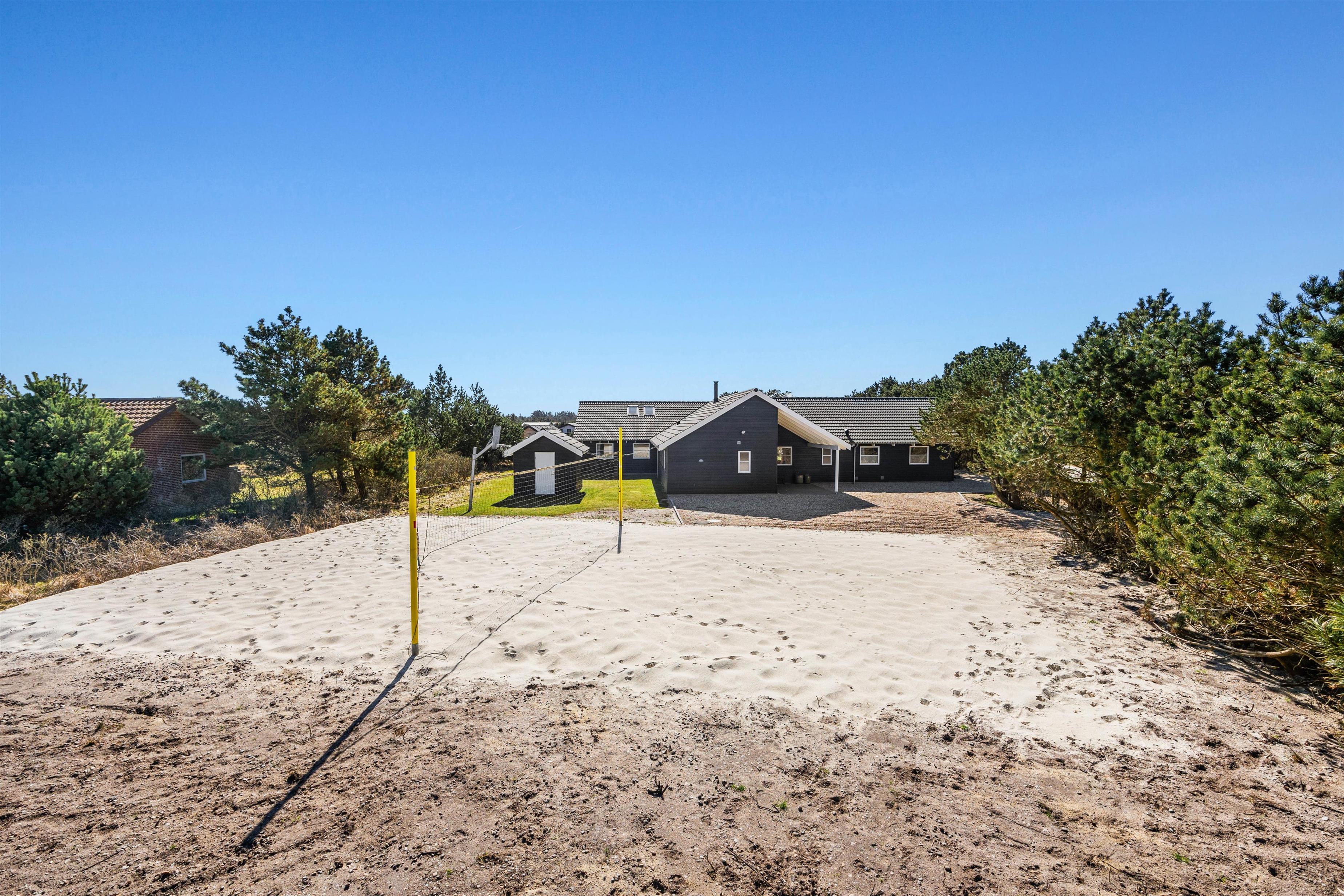 Feriehuset i Vejers er et sandt aktivitetshus, der tilbyder dig og dine medrejsende adskillige muligheder for fritidsaktiviteter. Nyd den fantastiske swimmingpool, eller træk dig tilbage til saunaen eller spabad for at forkæle krop og sjæl. For fysisk aktivitet står billard, bordtennis og bordfodbold til din rådighed. Du kan også være aktiv udendørs på den store grund på 2957 m², hvad enten det er til beachvolleyball eller en afslappet grillaften på den overdækkede terrasse.
