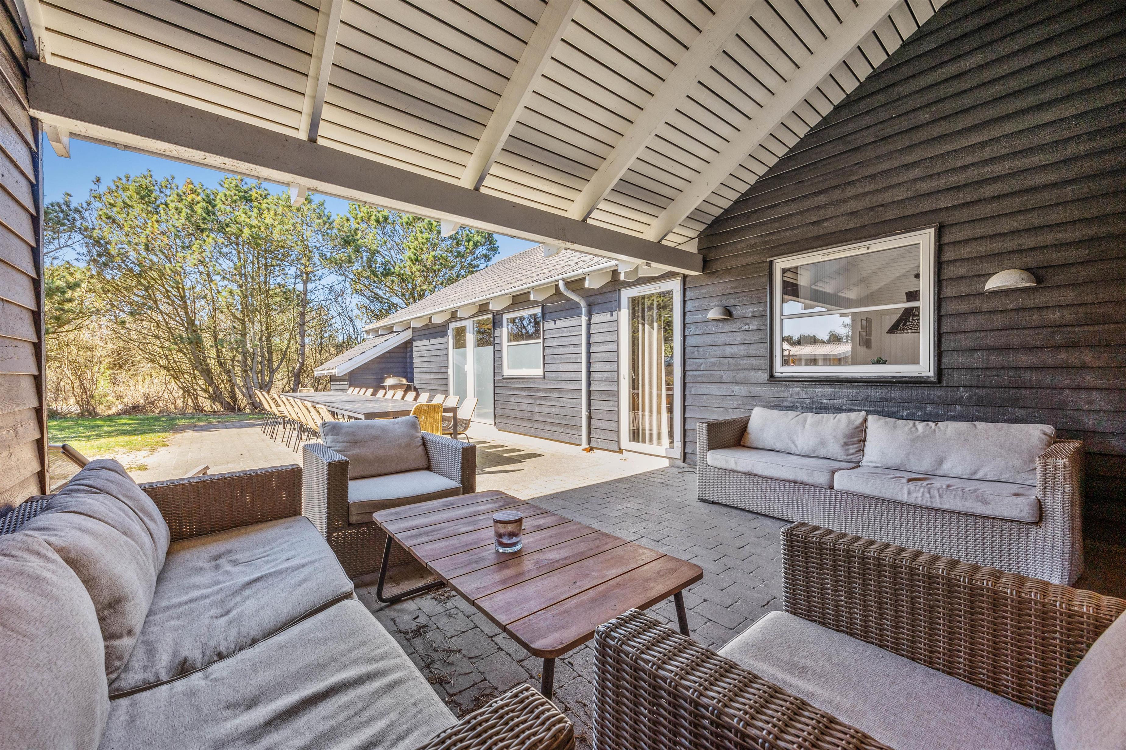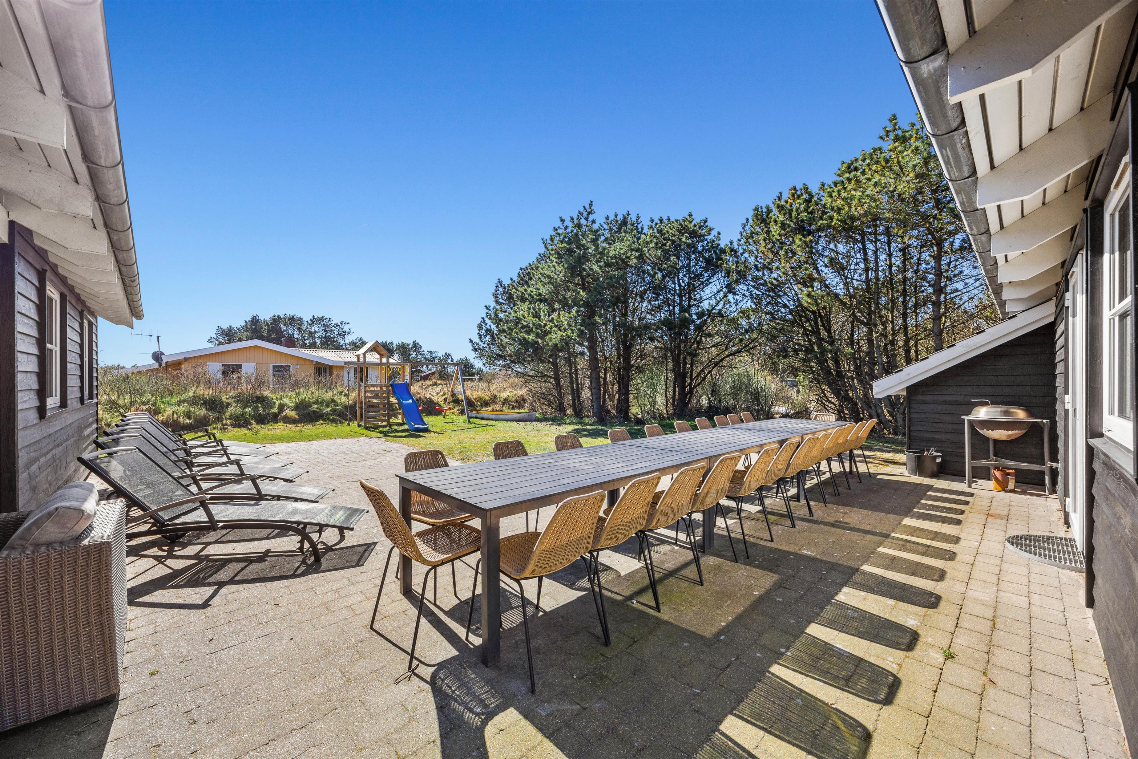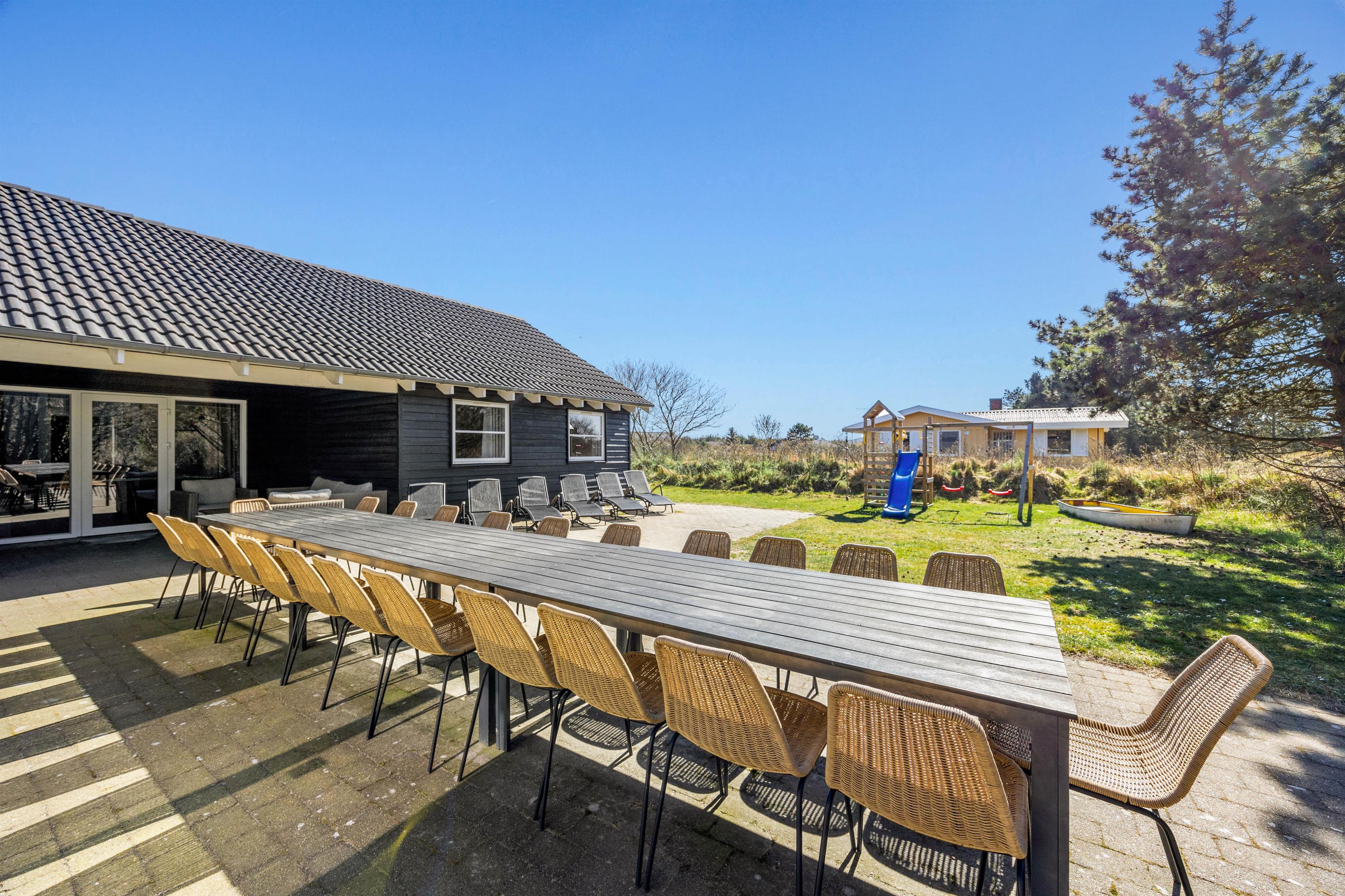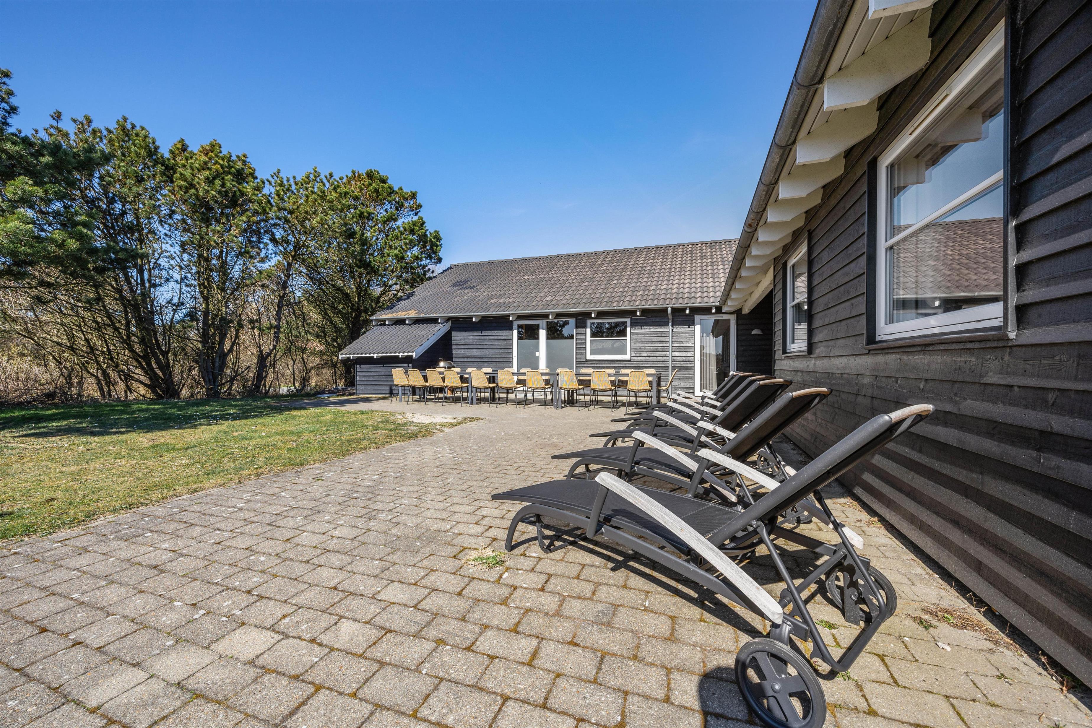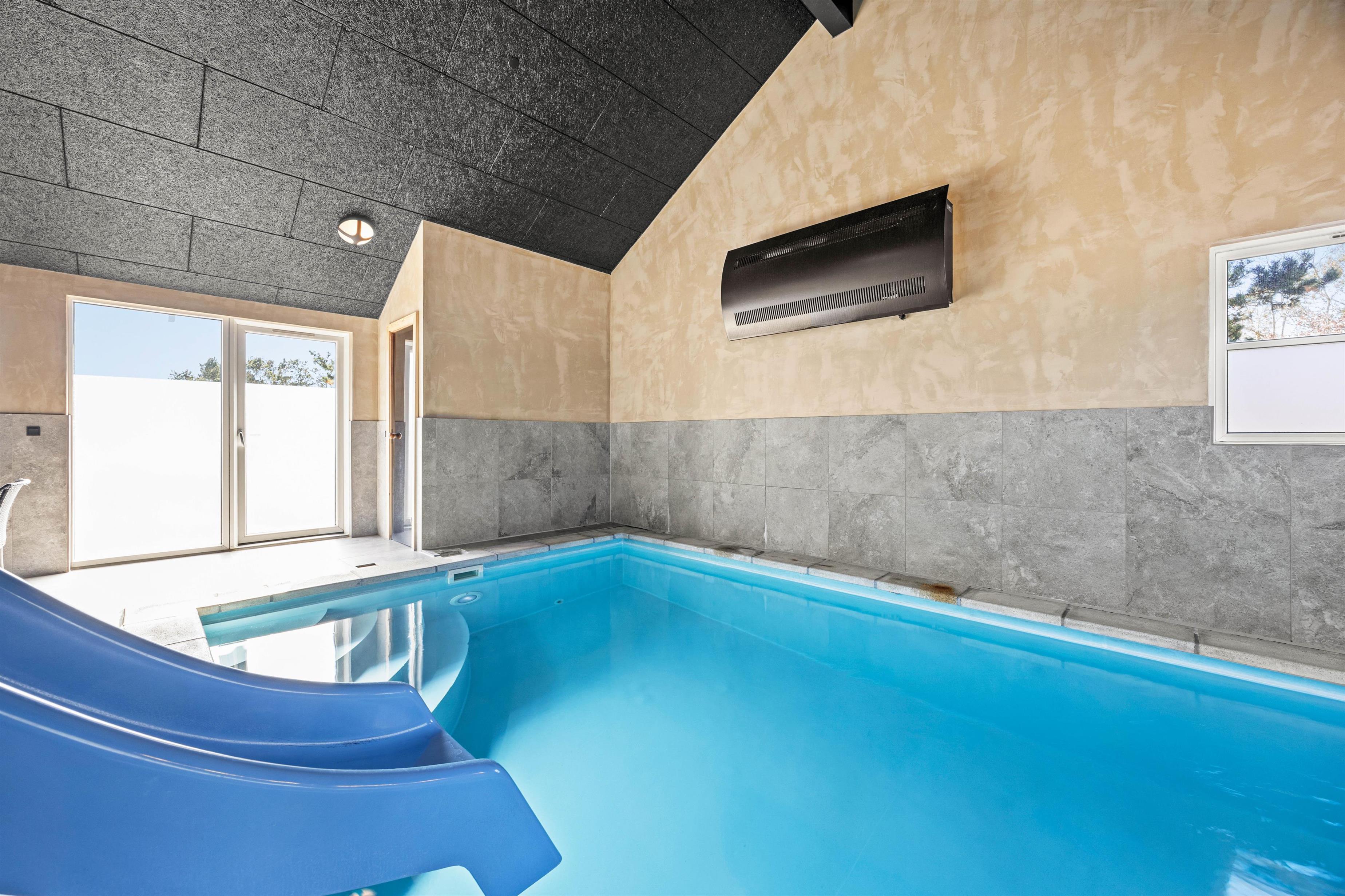 Feriehuset i Vejers er et sandt aktivitetshus, der tilbyder dig og dine medrejsende adskillige muligheder for fritidsaktiviteter. Nyd den fantastiske swimmingpool, eller træk dig tilbage til saunaen eller spabad for at forkæle krop og sjæl. For fysisk aktivitet står billard, bordtennis og bordfodbold til din rådighed. Du kan også være aktiv udendørs på den store grund på 2957 m², hvad enten det er til beachvolleyball eller en afslappet grillaften på den overdækkede terrasse.