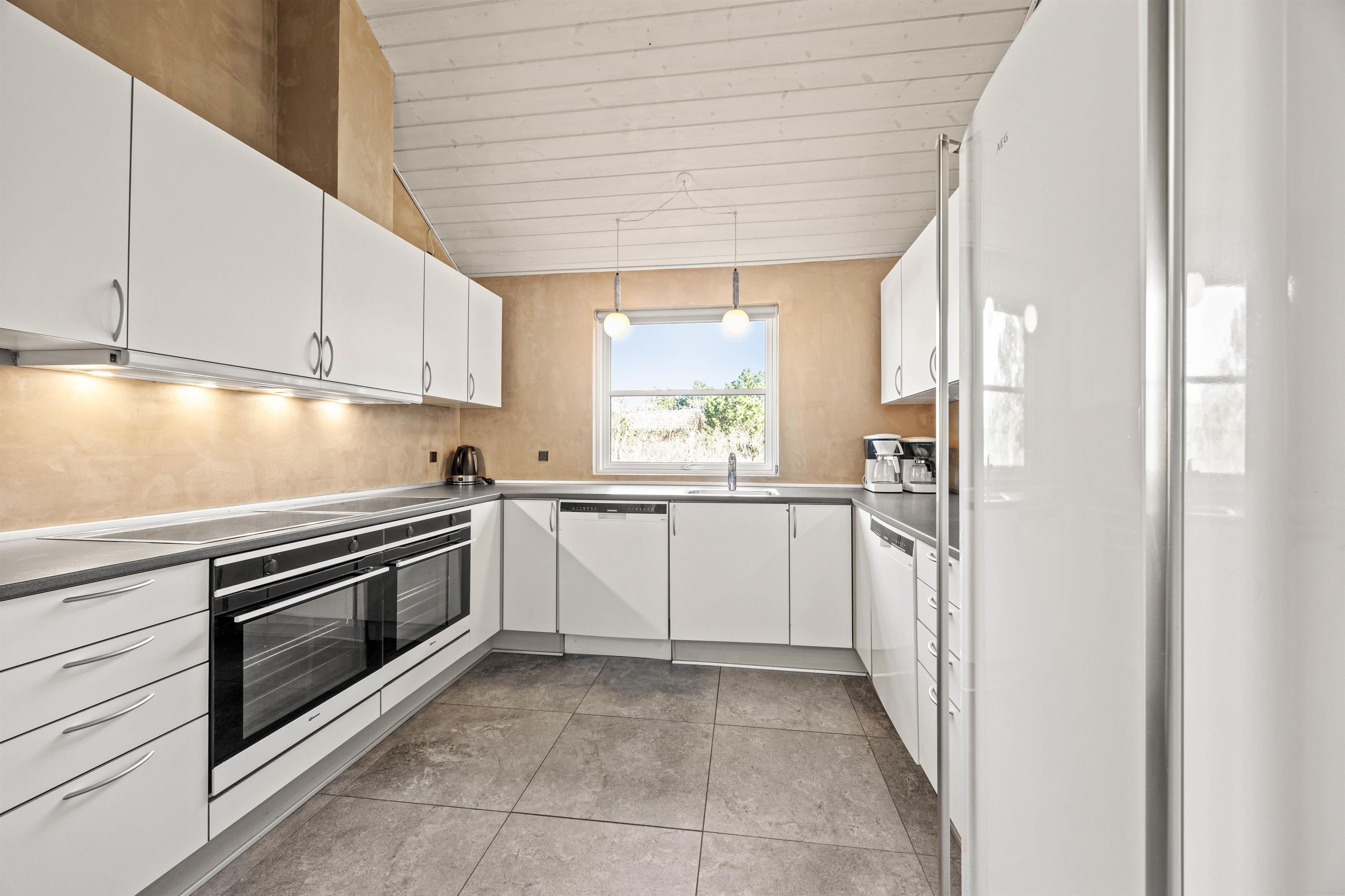Feriehuset i Vejers er godt udstyret til at tilbyde dig al komfort. Køkkenet er forsynet med en opvaskemaskine, og der er både en vaskemaskine og en tørretumbler, der letter hverdagen. Den energibesparende varmepumpe sørger for et behageligt indeklima og bidrager til en miljøvenlig ferie. Til de små står der gyngestativ og sandkasse klar, og hvis du ønsker at medbringe din firbenede ven, er op til tre hunde hjerteligt velkomne.