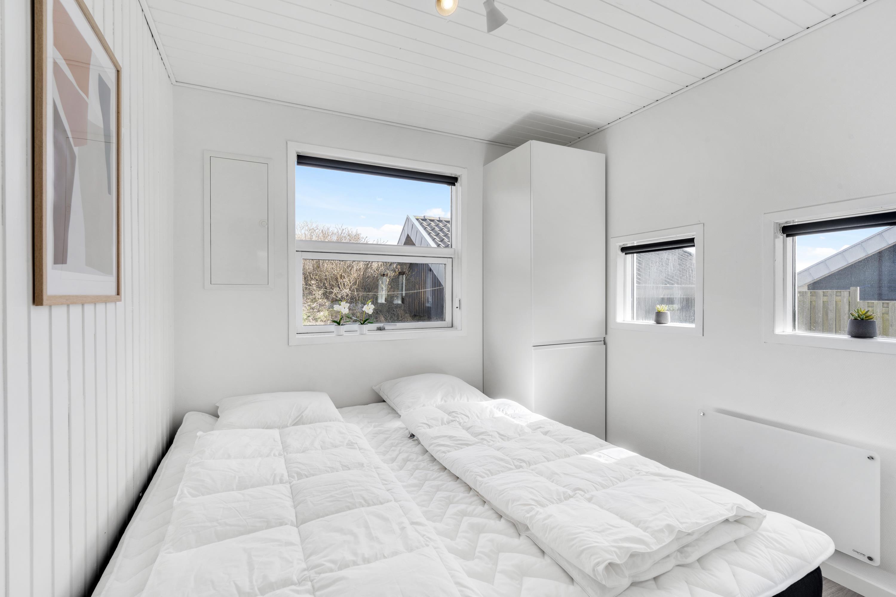 Sommerhuset er hyggeligt indrettet med møbler og interiør i lyse og venlige nuancer. Huset er beregnet til 6 personer, og 2 af husets 6 sovepladser finder I på hemsen.
