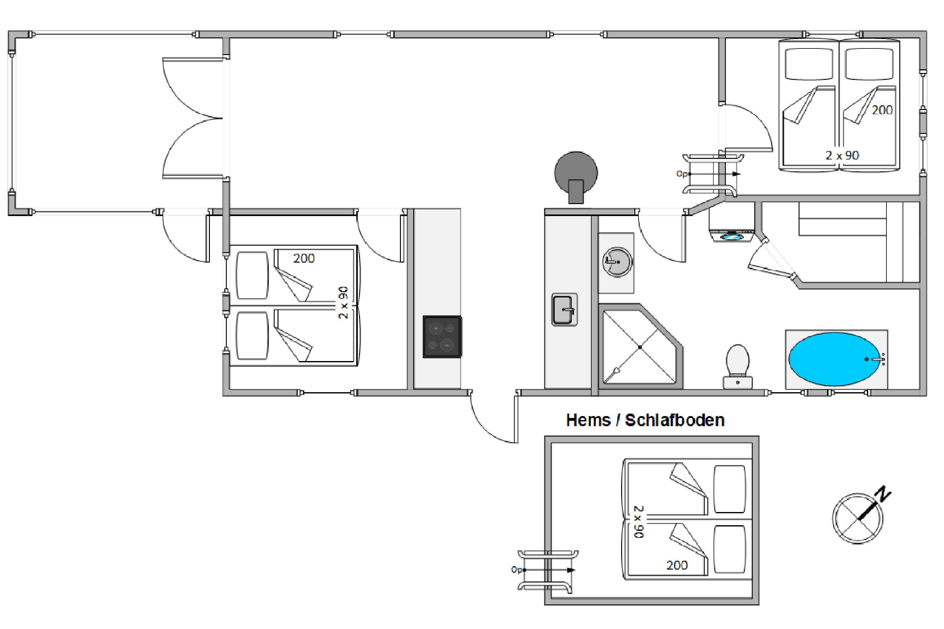 Hemsen er den perfekte hyggeplads til familiens børn. Her kan de trække sig tilbage og hygge med et spil, læse en bog eller streame en god film. Det lyse badeværelse har sin egen lille wellnessoase med både spabad og sauna. Vær opmærksom på, at spabadet skal fyldes med varmt vand, da det ikke varmer vandet op selv.