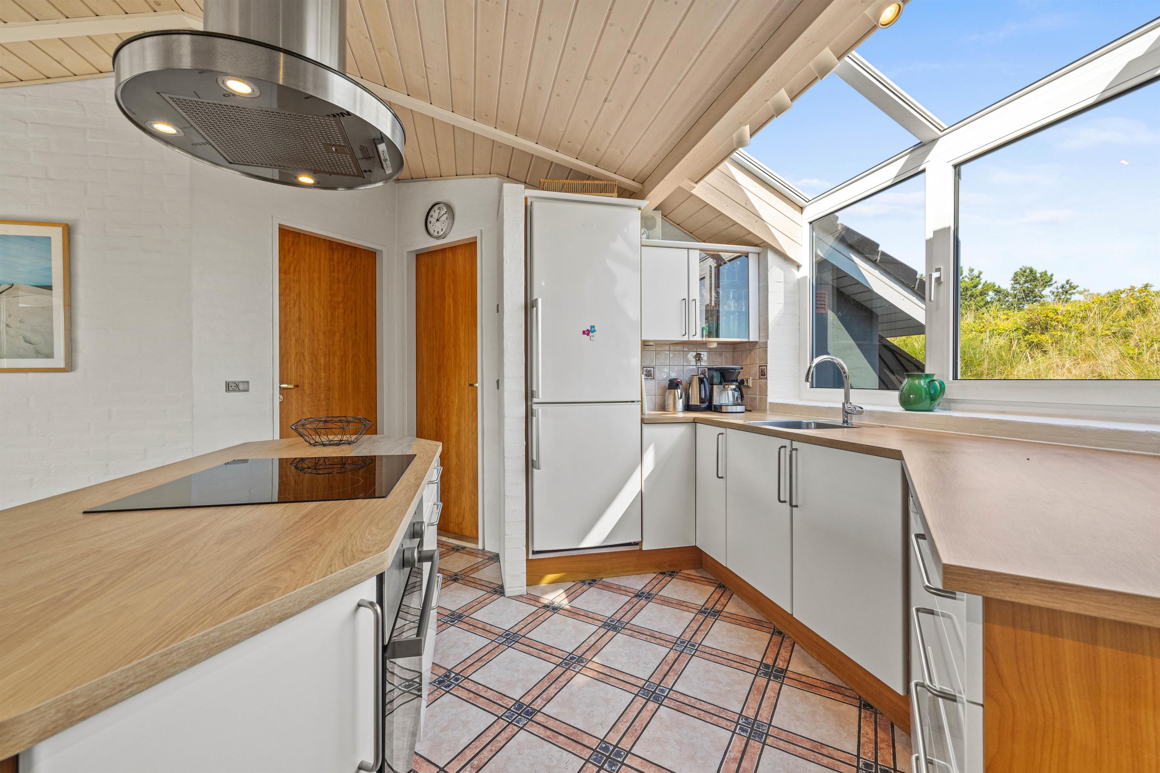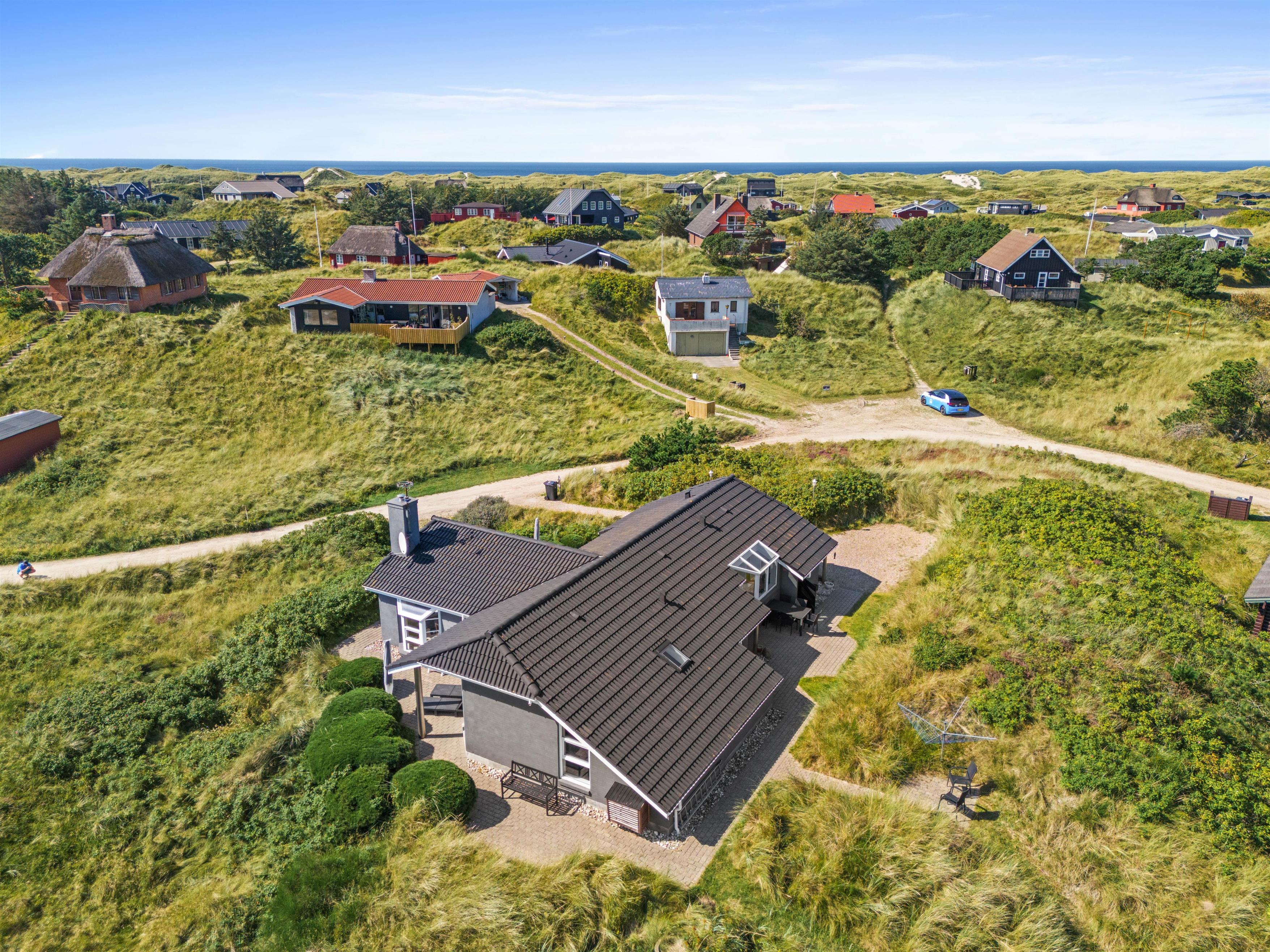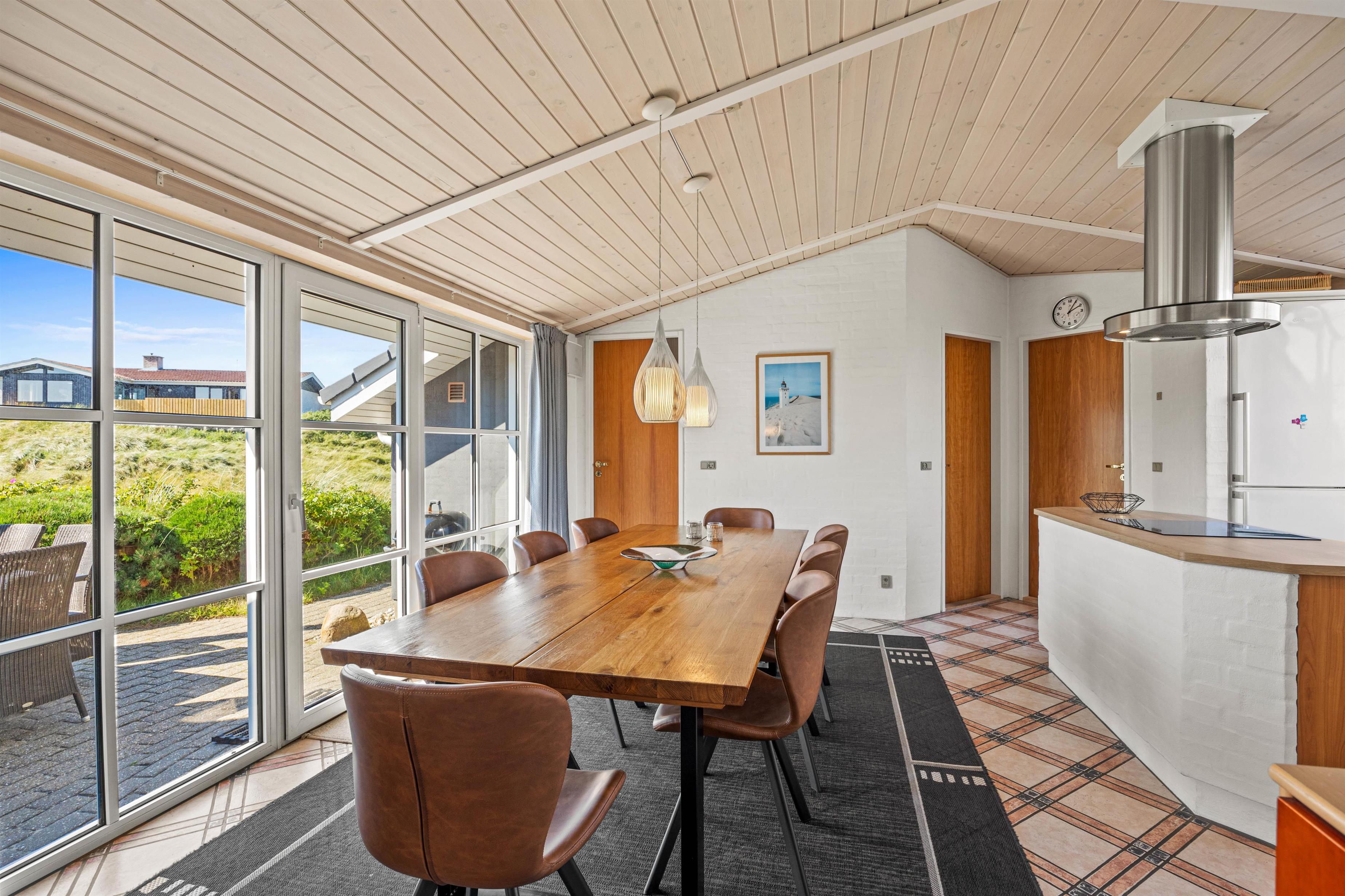 I det hele taget er det et feriehus med masser af lysindfald, så I kan nyde lyset i det lyse forår eller varme jer i solen på en kølig sommerdag. Om efteråret og vinteren kan I sidde ved brændeovnen i den velindrettede stue og se ud på Vesterhavets vilde vejr. Der er flere siddemuligheder, så man også kan trække sig lidt med en god bog eller sidde sammen i sofaen til en god film.